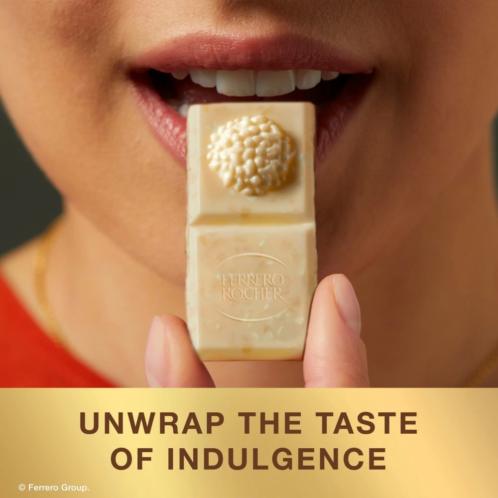 2 pack Ferrero Rocher premium chocolate bar, White Chocolate with Hazelnut Filling, Perfect Self Treat, 3.1 oz Each Item description from the seller: Discover the Ferrero Rocher White Chocolate with Hazelnut Filling bar, created for true chocolate lovers. Inspired by the iconic Ferrero Rocher creations, this bar brings you a new dimension of delicious sensations, rich with textures and flavors. This premium gourmet chocolate bar offers an irresistible combination of crunch and creaminess, a decadent treat worth savoring. Each piece of this Ferrero Rocher bar features smooth white chocolate, crunchy hazelnut pieces and filling, indulging your senses for a truly memorable experience. Take a moment for yourself, whether you need a midday pick-me-up, are unwinding after a long day, setting the tone for a cozy evening, or celebrating someone you cherish. This premium chocolate transforms any moment into something extraordinary, a luxurious creation crafted for you and your loved ones. Ferrero Rocher White Chocolate with Hazelnut Filling bar is more than just chocolate, it's a gesture of care, a celebration of flavor, and a treat from the heart. Celebrate the moment with Ferrero Rocher chocolate bars. Whether you’re thanking a teacher, showing appreciation to a caregiver, or surprising someone special, this indulgent treat makes every gesture more meaningful. It's also a thoughtful gift for Valentine's Day, a premium addition to Easter baskets, a sweet touch for Mother's Day, or an elegant stocking stuffer during the holidays. Unwrap a Ferrero Rocher premium chocolate bar to reveal its distinctive shape and begin a journey of indulgent delight. FERRERO ROCHER BAR: Enjoy a 3.1 oz Ferrero Rocher Premium chocolate bar, crafted with smooth white chocolate, crunchy hazelnut pieces and filling, all wrapped in elegant gold foil CRAFTED WITH PREMIUM INGREDIENTS: Made with carefully selected ingredients like roasted hazelnuts pieces and creamy filling, and silky white chocolate to deliver a unique and indulgent flavor experience in every bite CELEBRATE THE MOMENT: An exquisite choice for making every moments feel more special and unique, savoring personal indulgence during coffee breaks, sharing cherished moments, or gifting it to a dear friend PERFECT FOR SHARING: Whether with friends, family, or colleagues, or enjoyed on your own or paired with coffee or wine, Ferrero Rocher premium chocolate bars are a delightful indulgence to elevate and enrich special moments GOURMET CHOCOLATES FOR ALL SPECIAL OCCASIONS: A Valentine’s Day gift, Easter baskets fillers, premium Mother’s Day chocolates to indulge your mom, or the perfect Holiday gift.