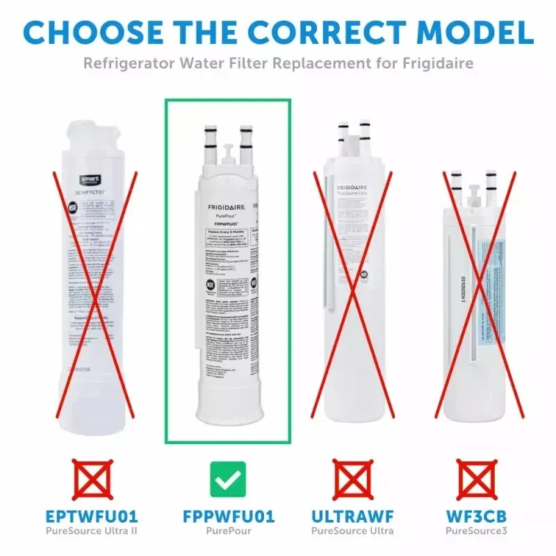 Mfmnicestore DESCRIPTION PAYMENT SHIPPING RETURN POLICY CONTACT US Shop Category Store Home Hot Item Delivery New List Item Help & Info Payment Policy Shipping Policy Return Policy FAQ About Us 2 pack Frigidaire FPPWFU01 PWF-1 Refrige PurePour Water &Ice Refrigerater Filter Please note this listing is for Frigidaire FPPWFU01, NOT Frigidaire EPTWFU01 Specifications: Used in Brands: Frigidaire Model: Frigidaire FPPWFU01(PWF-1) (Please note this filter is FPPWFU01, Not EPTWFU01) Package Quantity: 2 Piece Weight: 0.5 pounds. Dimensions: 9.5 inches (length) x 2.3 inches (outside diameter) Filter Life (Gallons): 200 gallons or 6 months, whichever comes first. Flow Rate(GPM): 0.65 gallons per minute. Temperature range( °F): 33-100 Pressure Range (psi): 30-100 Micron Rating (Nominal): 0.5 Water Quality Requirements: Municipal Water/Well Water. Power (W): No Voltage (V): No Media: Carbon Block. Primary Filter Media: Activated Carbon Block. Manufacturer's Id: FPPWFU01 Certification: NSF/ANSI Standard 42, 53 and 401, WQA PurePour PWF-1 FPPWFU01 Compatible with the following part numbers: FPRU19F8WF, FRFG232LAF, FRFC2323AS, FRSC2333AS, FRSC23L3AF, FRFN2823AS, FRFS2823AD, FRFS2823AS Product Information: 1. The Frigidaire PurePour PWF-1 water filter (FPPWFU01) produces cleaner, better tasting drinking and cooking water, including all dispensed drinking water, as well as the water used to produce ice. 2. Make sure this fits by entering your model number. 3. Make safe water second nature: Certified to reduce contaminants and keep great tasting water flowing for you and your family 4. Keeps great tasting water flowing up to 6-months - replace your water filter every 6-months or 200-gal., whichever comes first. 5. Filters Out up to 99% of Contaminants: Reduces chlorine taste & odor, particulates Class I, cysts, lead, mercury, pesticides, insecticides, BPA, asbestos, pharmaceuticals and more. Product Installation: Push to lock and release: Easy install always review your use and care guide before installation, to install slide new filter into housing and push until it locks into place (Need to exert force) Item Specifics Brand : Frigidaire Compatible Brand : For Frigidaire Type : Water Filter Capacity : 300gal Number in Pack : 2 Color : White Model : FPPWFU01 PWF-1 Compatible Model : For Frigidaire Material : Plastic Filtration Method : Carbon/Charcoal Contaminant Removal : Chlorine Taste & Odor Suitable For : Household UPC : 760472535997 Payment Returns All right reserved.