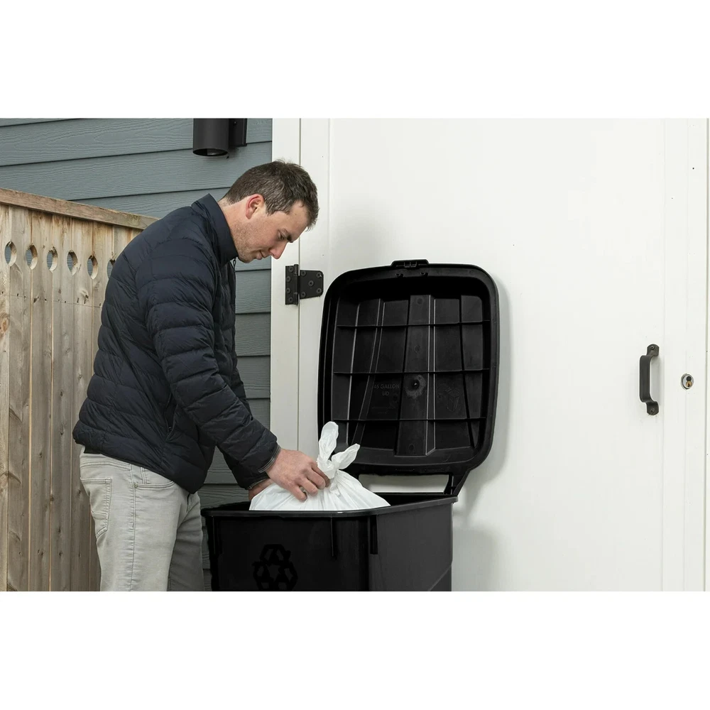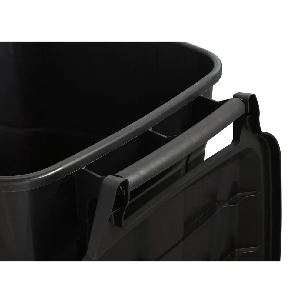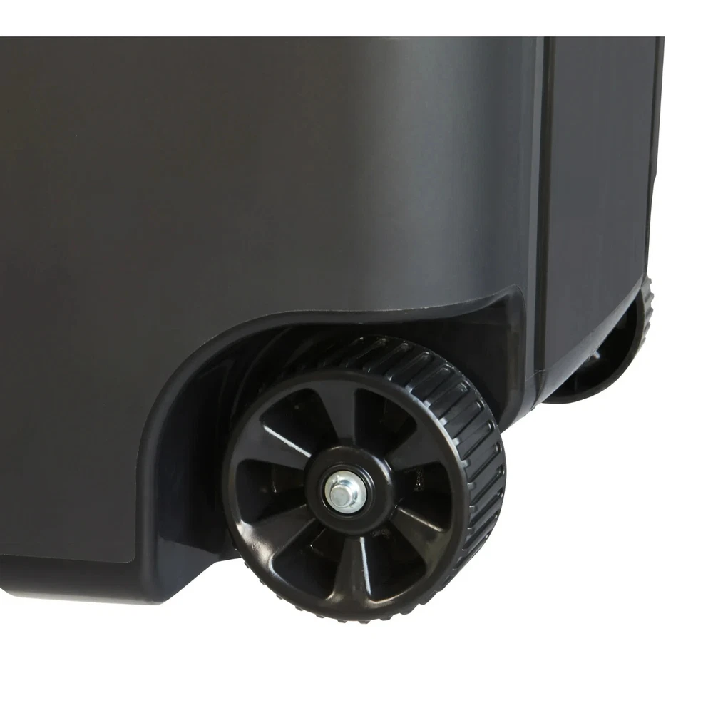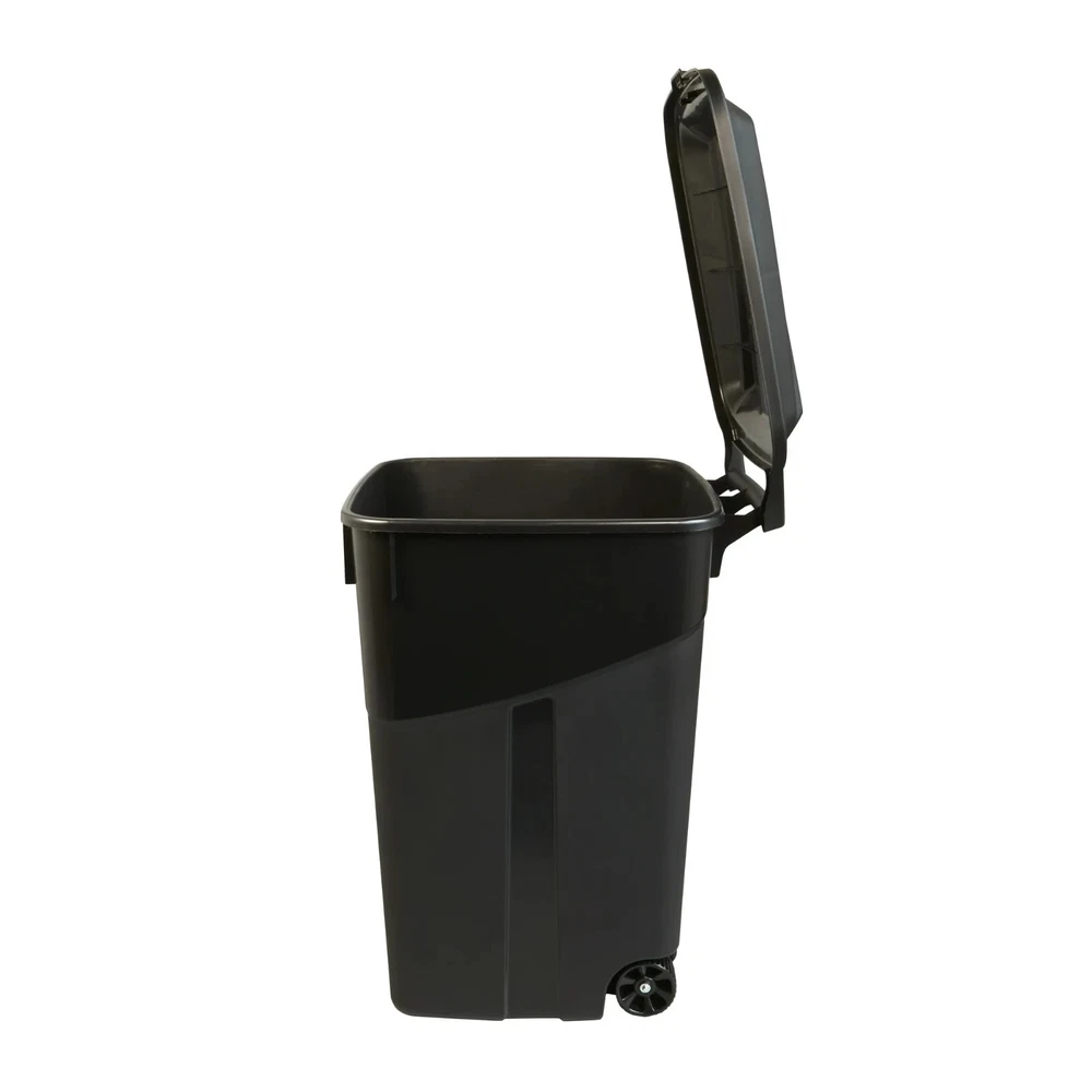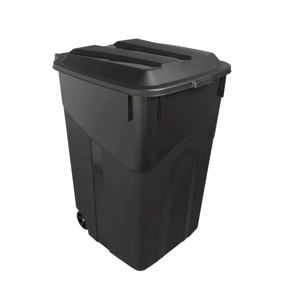 (2 pack) Hyper Tough 45 Gallon Wheeled Heavy Duty Plastic Garbage Can, Attached Lid, Black About this item RUGGED WHEELS: Built tough, these wheels make for smooth transport while the container is in use. Perfect for outside use on your patio, deck or in your garage. Product Dimensions: 26.090 in. L X 21.690 in. W X 33.700 in. H Large molded pass through the handle Easy to clean plastic design NO BREAK: Made of polypropylene, this can is able to withstand the rough use. Click lock lid BOTTOM HAND GROVE: For easier lifting and pouring. Whether used for your weekly trash or cleaning the yard, the handle grove gives you peace of mind knowing this trash can will do its job. Specifications Brand Hyper Tough Garbage Can & Wastebasket Type Garbage Cans Volume Capacity 45 gal Material Polyproplene Color Black Shape Square Number of Compartments 1 Features Wheeled Items Included Lid Assembled Product Weight 10.25 lb Recommended Location Outdoor, Indoor and Outdoor Recommended Use Household Manufacturer United Solutions Manufacturer Part Number TI0108 Model TI0108 Assembled Product Dimensions (L x W x H) 26.09 x 21.69 x 33.70 Inches