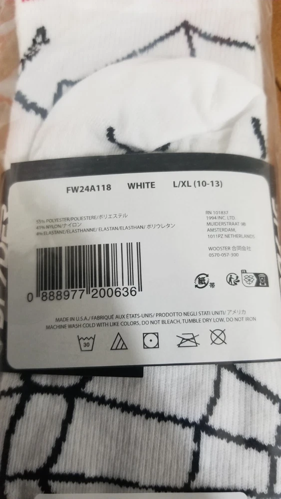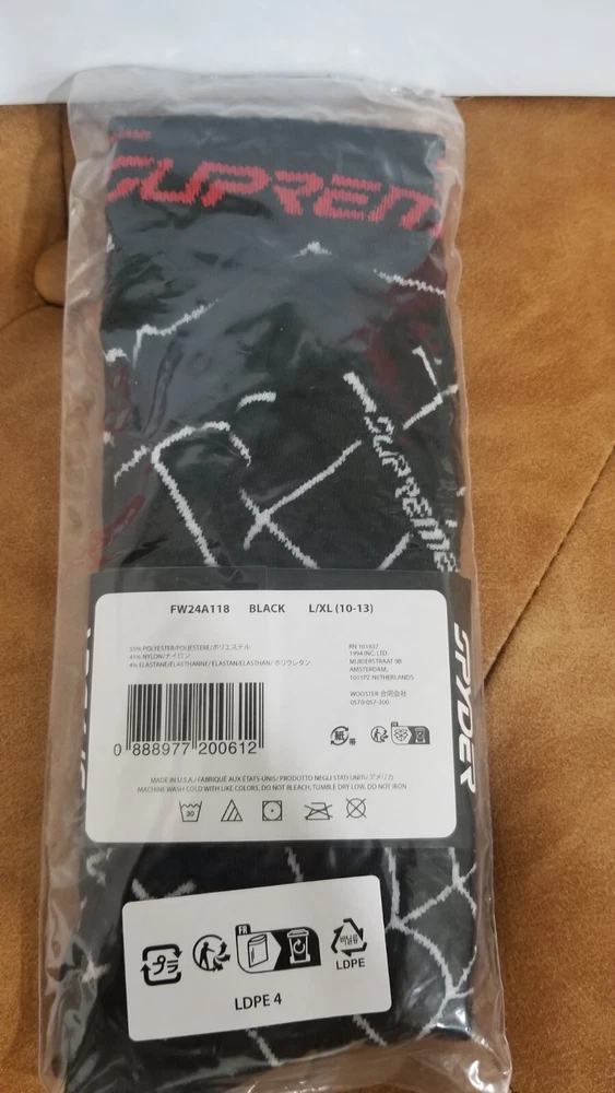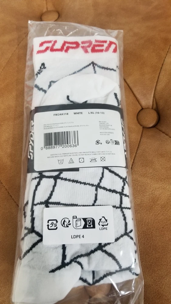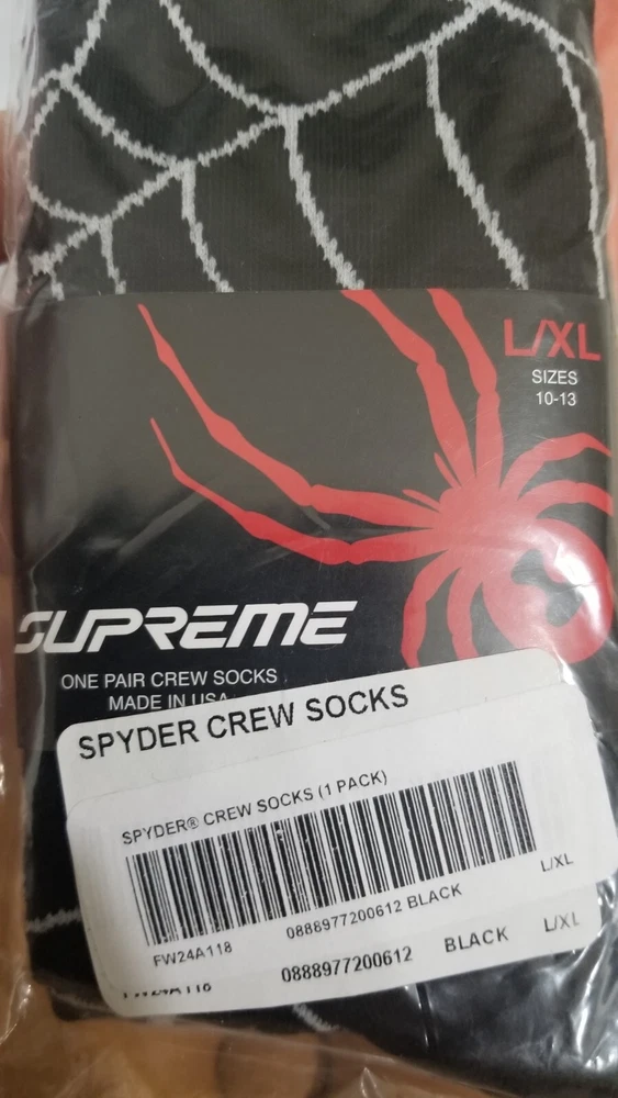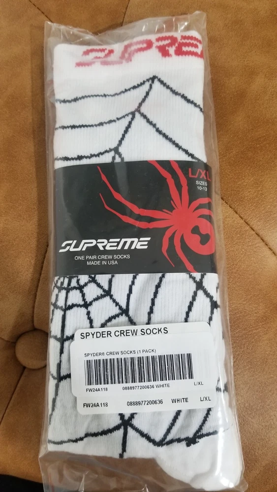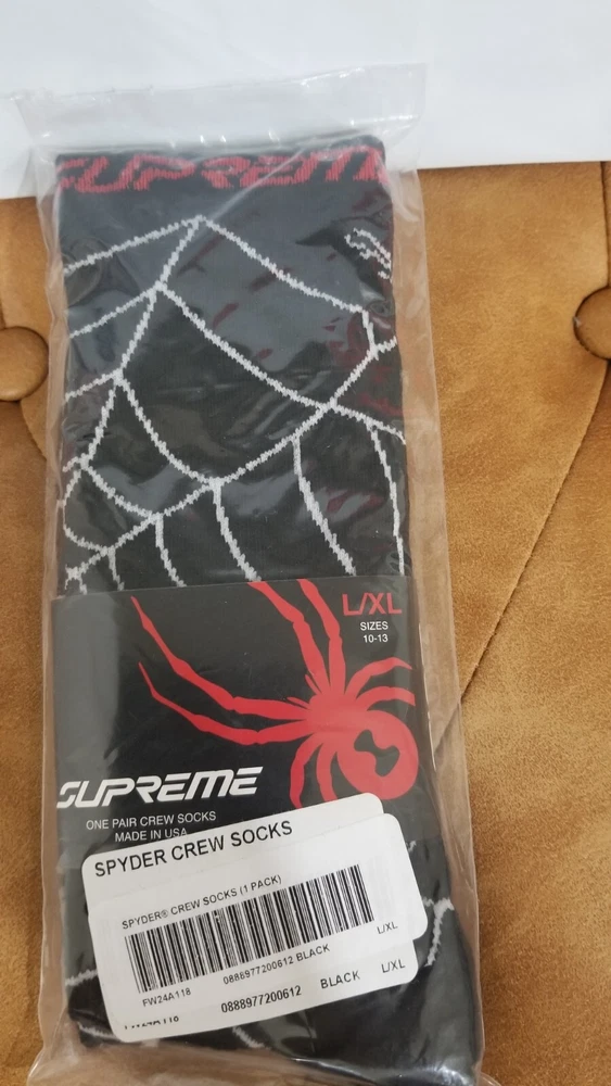 Supreme Spyder crew socks 1 pair white 1 pair black New Size is L/Xl Shoe sizes recommend 10-13 mens
