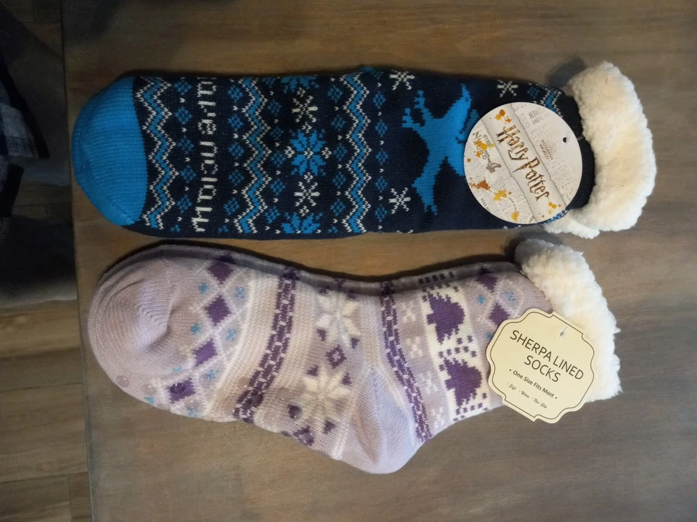 Get into the holiday spirit with these adorable plush sherpa lined Christmas socks. The set of two pairs is perfect for women who love to stay cozy during the festive season. The anti-skid design ensures that these socks will keep your feet safe and secure, while the multicolor pattern adds a fun and festive touch to your outfit. These socks are perfect for anyone who loves unique and comfortable socks that are perfect for any occasion. With a theme of Christmas, these socks are a great addition to your holiday wardrobe. The one size fits all aspect makes them a great gift option or personal purchase. Add these socks to your collection today and enjoy the soft and cozy feel they provide.
