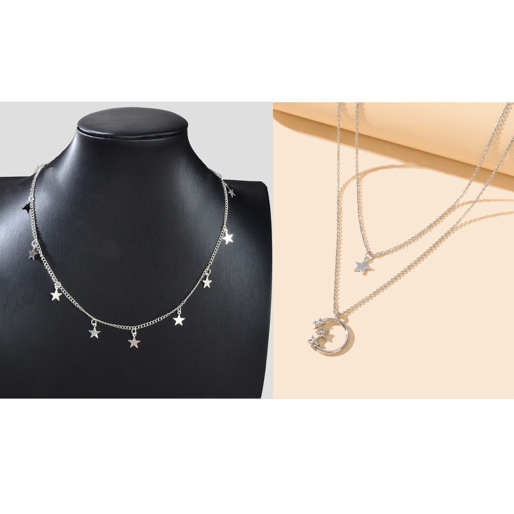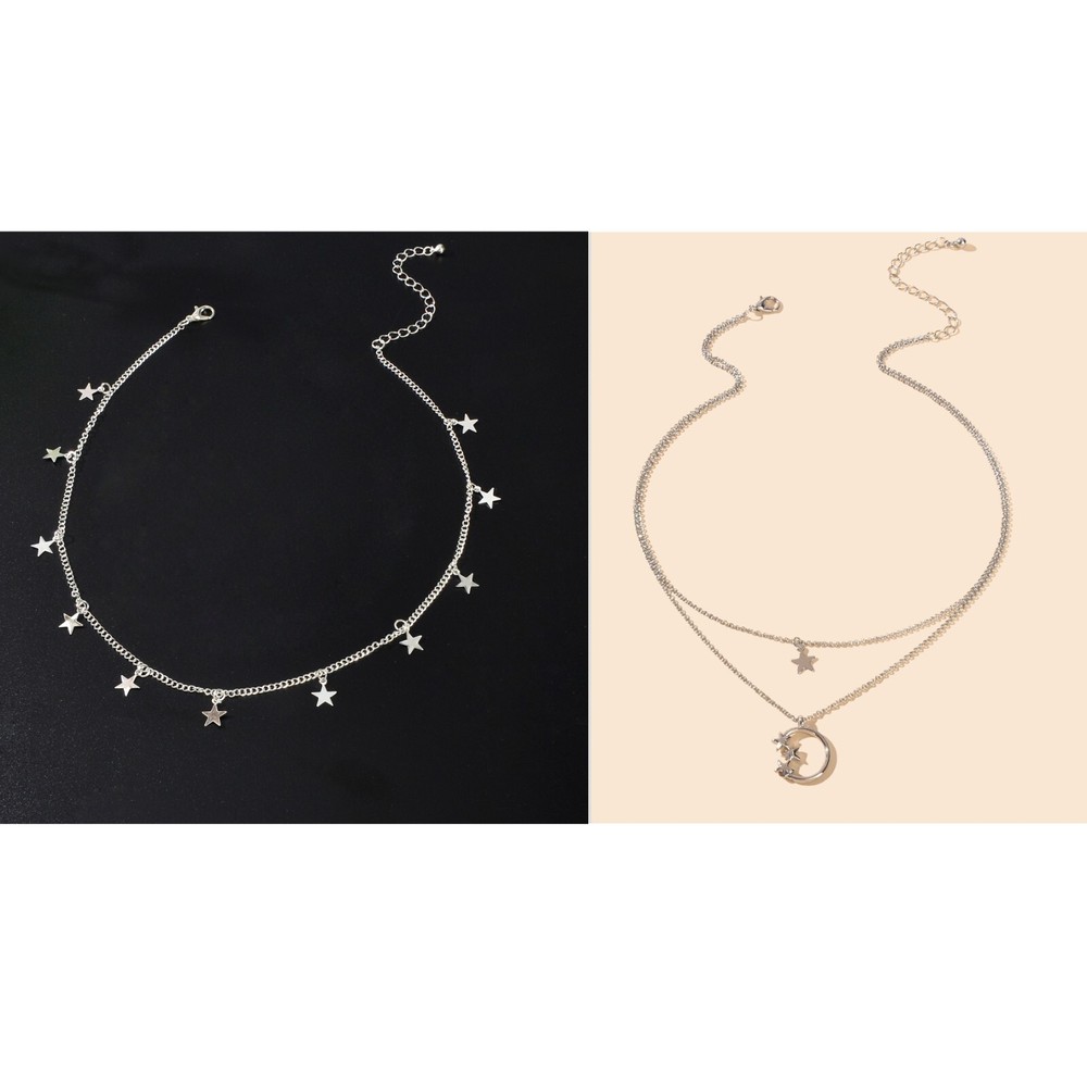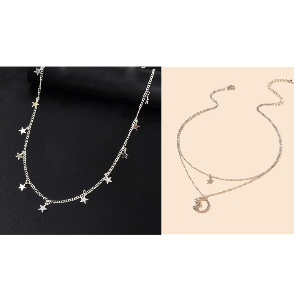 Elevate your accessory game with the Feelontop Trendy Layered Silvery Chain Star Charm Circle Pendant Necklace set. Designed with a chic silver hue and versatile layered style, this piece is a fashion-forward addition to any outfit. Whether you're celebrating a birthday or Mother's Day, this necklace set will add a touch of elegance to your look. Crafted from durable zinc metal, the necklace features a stunning star-shaped pendant that brings a celestial vibe to your attire. The intricate chain design offers a trendy touch to the classic circle pendant, making it an ideal choice for those who appreciate a blend of sophistication and contemporary fashion.