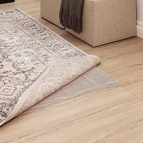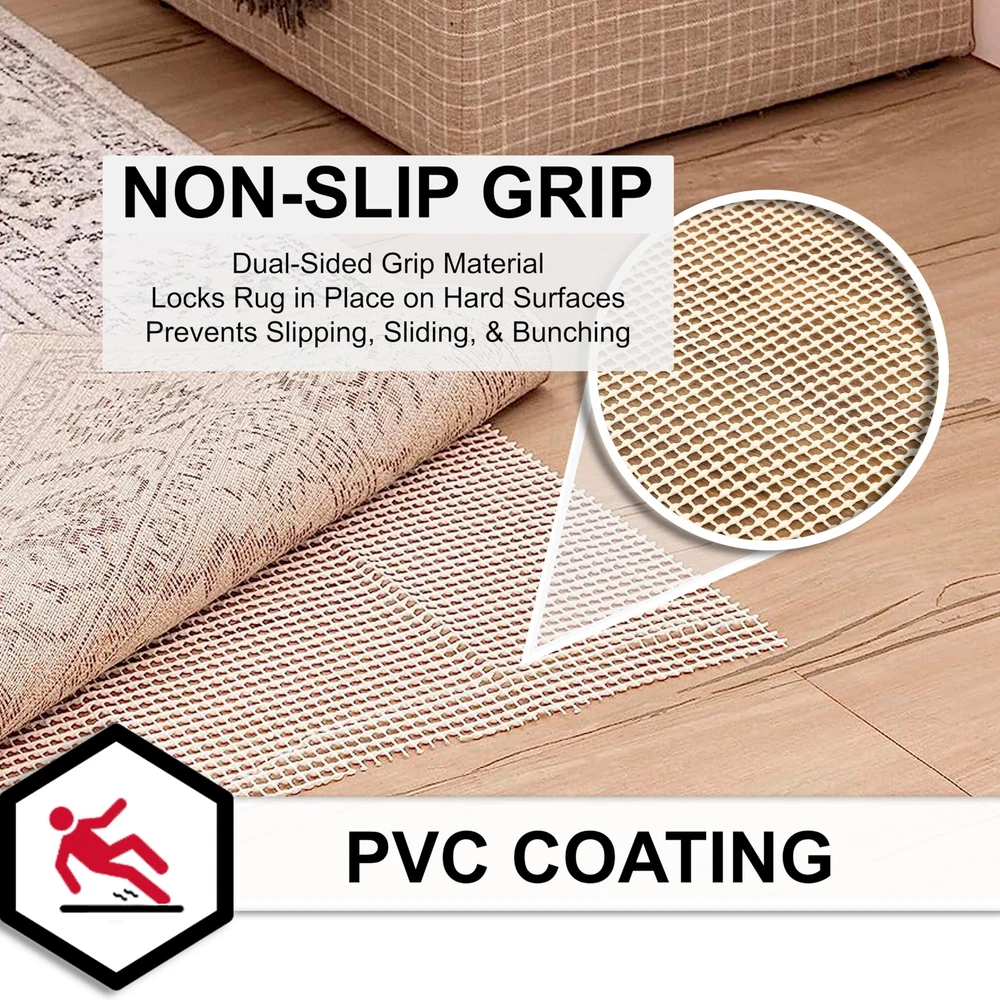 Keep accent and area rugs in place with the Rug Gripper. This non-slip rug gripper is perfect for area rugs in high traffic spaces for precise placement while preventing slippage, bunching, and wrinkles. The open weave design helps hold your area rug in place while providing improved air circulation to minimize moisture, dust collection under rugs, and help vacuums perform better. The ultra low-profile construction offers ideal functionality for a variety of hard surface flooring types as well as other uses in your home such as drawer and shelf lining. Available in a variety of sizes, this gripper also features customizable sizing as it can be easily trimmed with scissors to fit any size rug or for other household uses. NON-SLIP GRIP: This rug gripper features added non-slip functionality to help prevent slippage, bunching, and wrinkles for area rugs on hard surface flooring in high traffic areas where rugs are prone to slipping and sliding. MULTIPURPOSE: This versatile ultra low-profile gripper offers multipurpose use for other areas in your home. It can be used as drawer or shelf lining, as well as keeping other items in place around your home such as placemats, tablecloths, couch cushions, and more. LOW PROFILE: The ultra low-profile design provides a layer of protection to surfaces underneath without adding height in areas where additional cushion may not be necessary. CUSTOMIZABLE: While available in a variety of pre-cut sizes, this versatile gripper also features easy size customization. For rugs, simply trim with scissors to fit your rug by cutting 2 inches smaller than the rug size. (1-2 inch short of the rug perimeter). For multipurpose use, simply trim to fit the area where added grip is needed.