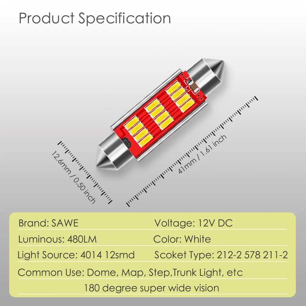Package Contents: 2 x LED Interior Dome Light Bulbs for Chevy Silverado 1500 1999 - 2014 578 211-2 Pry Tool x 1 (90 days Manufacturer's Warranty directly from us!) A Friendly Reminder: Non-Polarity Design & Plug and Play Socket (LED Bulb Works Either Way) The application varies from different vehicles, which means they may not fit all postions on one vehicle. If you don't know if this bulb fits your car, you can check in sylvania-automotive. LED Features: 2 x LED Interior Dome Light Bulbs for Chevy Silverado 1500 1999 - 2014 578 211-2 Package Contents: 2 x LED Interior Dome Light Bulbs for Chevy Silverado 1500 1999 - 2014 578 211-2 Pry Tool x 1 ( 90 days Manufacturer's Warranty directly from us!) A Friendly Reminder: Non-Polarity Design & Plug and Play Socket (LED Bulb Works Either Way) The application varies from different vehicles, which means they may not fit all postions on one vehicle. If you don't know if this bulb fits your car, you can check in sylvania-automotive. LED Features: Voltage:DC 12V Number of Bulbs: 12 pieces 4014 LED Color: Ultra White Socket Type: 41mm 578, 211-2, 212-2 Long life-typically lasting 50,000 hours Color Temperature: 6000~6500K Condition: Brand New Length: 41mm/1.54 inch Diameter: 12.6mm/0.50 inch Fitment: This LED can fit more than one car, please check the “ Compatibility Table ” before check out. (Send us a message for more questions) Cross Reference Bulb Sizes: 41mm 42mm LED 211-2, 212-2, 214-2, 560, 569, 578 Item Specifics Interchange Part Number 211 211-2 212-2 214-2 Bulb Color White Manufacturer Part Number 2S-FT-102-T01 Placement on Vehicle Front Rear Left Right Other Part Number 6413 6429 4410 560 578 Brand SAWE Number of Bulbs 2 Warranty 90 Day Voltage 12V To Fit Map Dome Step Footwell Light Fitment Type Direct Replacement Color Temperature 6000K Lighting Technology LED Suitable For Cargo Step Courtesy Light DESCRIPTION PAYMENT SHIPPING RETURN POLICY CONTACT US Shop Category Store Home Apple iPad Case ◈ iPad Mini 1 / 2 / 3 Case ◈ iPad Mini 4 (4th Gen) Auto LED Lights ◈ T10 168 194 ◈ Resistor ◈ 1156 ◈ 31 mm LED ◈ 41 mm LED ◈ BA9S ◈ Honda Interior LED Package ◈ Acura Interior LED Package ◈ Toyota Interior LED Package ◈ Scion Interior LED Package ◈ Subaru Interior LED Package ◈ Mitsubishi Interior LED Packag ◈ Mazda Interior LED Package ◈ Hyundai Interior LED Package ◈ Lexus Interior LED Package ◈ Nissan Interior LED Package ◈ Infiniti Interior LED Package ◈ Kia Interior LED Package ◈ BMW Interior LED Package ◈ Mercedes Interior LED Package ◈ Audi Interior LED Package ◈ Chevrolet LED Package ◈ Volkswagen LED Package ◈ Cadillac LED Package ◈ Chrysler LED Package ◈ Dodge Interior LED Package ◈ Ford LED Package ◈ Porsche LED Package ◈ GMC LED Package ◈ Mini LED Package ◈ Lincoln LED Package ◈ Jeep LED Package ◈ Hummer LED Package ◈ Sun Visor LED ◈ Rigid Loop LED ◈ 44 mm LED ◈ Strobe Warning Light ▷ Reverse,Signal, Brake LED ♢ T15 921 912 LED ♢ 3156 / 3157 ♢ 7440 / 7443 ♢ 1157 Bags ◈ Zip Lock Bags ◈ Static Bags Other Hot Item 10x 41mm 42mm 6SMD LED Dome Map Interior Light Bulbs 578 211-2 212-2 6000K White USD 10.98 10 x Ultra White 41MM 42MM 3014 36SMD Dome Map LED Light Bulbs 578 211-2 212-2 USD 13.99 8 x Ultra White 41MM 42MM 3014 36SMD Dome Map LED Light Bulbs 578 211-2 212-2 USD 12.99 20 x Ultra White 41MM 42MM 3014 36SMD Dome Map LED Light Bulbs 578 211-2 212-2 USD 18.99 6 x Ultra White 41MM 42MM 3014 36SMD Dome Map LED Light Bulbs 578 211-2 212-2 USD 10.44 New List Item 11 x White LED Interior + Reverse Light Package For 2007 - 2012 Nissan Sentra USD 16.99 20 x SAWE 31MM LED Interior Bulbs for Truck Map Dome Light 24SMD DE3022 DE3175 USD 19.99 10 X Ice Blue 42mm 6SMD 5050 Festoon Dome Map LED Light 578 211-2 212-2 + TOOL USD 9.99 10 x Red 31MM 5050 6SMD Dome Map Interior LED Light Bulbs DE3175 DE3022 + TOOL USD 10.99 4 x Green 31MM 3528 12SMD Dome Map Interior LED Light Bulbs DE3175 DE3022 + TOOL USD 7.99 Help & Info Payment Policy Shipping Policy Return Policy FAQ About Us 2 x LED Interior Dome Light Bulbs for Chevy Silverado 1500 1999 - 2014 578 211-2 Package Contents: 2 x LED Interior Dome Light Bulbs for Chevy Silverado 1500 1999 - 2014 578 211-2 Pry Tool x 1 ( 90 days Manufacturer's Warranty directly from us!) A Friendly Reminder: Non-Polarity Design & Plug and Play Socket (LED Bulb Works Either Way) The application varies from different vehicles, which means they may not fit all postions on one vehicle. If you don't know if this bulb fits your car, you can check in sylvania-automotive. LED Features: Voltage:DC 12V Number of Bulbs: 12 pieces 4014 LED Color: Ultra White Socket Type: 41mm 578, 211-2, 212-2 Long life-typically lasting 50,000 hours Color Temperature: 6000~6500K Condition: Brand New Length: 41mm/1.54 inch Diameter: 12.6mm/0.50 inch Fitment: This LED can fit more than one car, please check the “ Compatibility Table ” before check out. (Send us a message for more questions) Cross Reference Bulb Sizes: 41mm 42mm LED 211-2, 212-2, 214-2, 560, 569, 578 Item Specifics Interchange Part Number : 211 211-2 212-2 214-2 Bulb Color : White Manufacturer Part Number : 2S-FT-102-T01 Placement on Vehicle : Front Rear Left Right Other Part Number : 6413 6429 4410 560 578 Brand : SAWE Number of Bulbs : 2 Warranty : 90 Day Voltage : 12V To Fit : Map Dome Step Footwell Light Fitment Type : Direct Replacement Color Temperature : 6000K Lighting Technology : LED Suitable For : Cargo Step Courtesy Light Payment Shipping Returns Contact Us Pay securely with any major credit card through PayPal! Payment must be received within 7 days after auction closes. Please ensure that the shipping address you provide at checkout is accurate. We are not responsible for undeliverable or wrong shipped addres Pay securely with any major credit card through PayPal! Payment must be received within 7 days after auction closes. Please ensure that the shipping address you prov