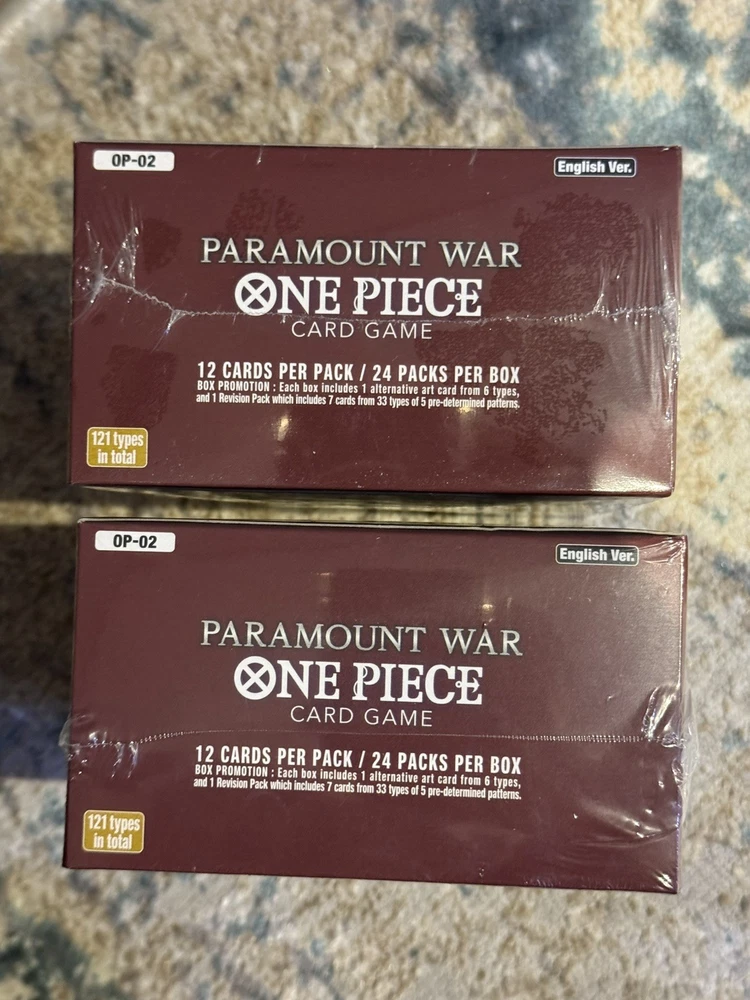 2 x The One Piece Card Game OP-02 Paramount War Booster Box in English is a factory-sealed product from Bandai, featuring standard-sized cards for the One Piece CCG. This booster box contains one set of the Paramount War collection, offering players a chance to enhance their decks with new and exciting cards. With a focus on the year 2024, players can expect a fresh and immersive experience as they navigate through the world of One Piece in this highly sought-after booster box. All orders will be dispatched double boxed to avoid any damage in transit. All orders will be dispatched fully insured and tracked. Any questions please feel free to ask before purchasing. Thank you