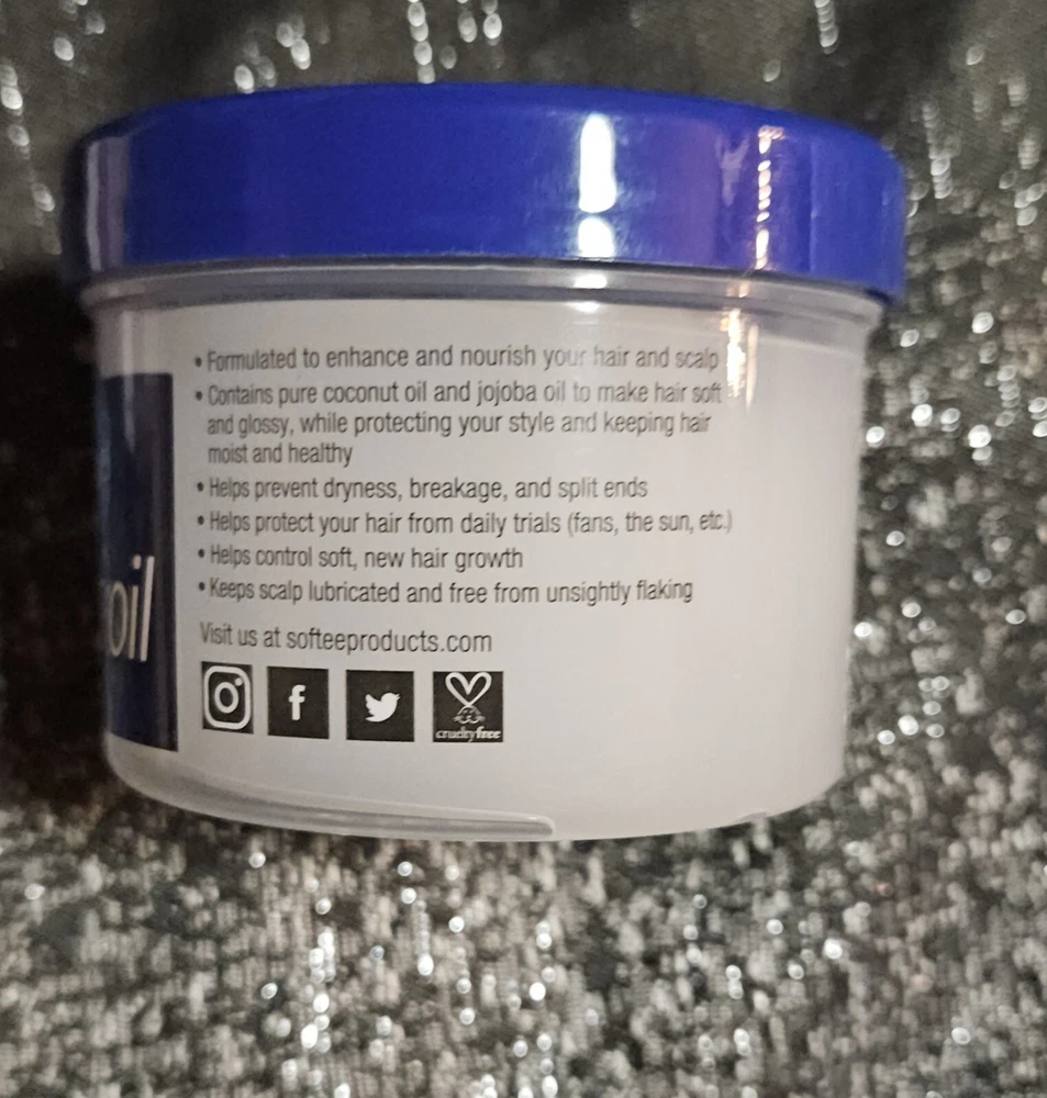 2 x Softee Pure Coconut Oil Formula Hair & Scalp Conditioner 3oz BNIB. •Formulated to enhance & nourish your hair & scalp. •Contains pure coconut oil and jojoba oil to make hair soft &glossy, while protecting your style & keeping hair moist & healthy. •Helps prevent dryness, breakage, and split ends. •Helps protect your hair from daily trials (fans, the Sun, etc) •Helps control soft, new hair growth •Keeps scalp lubricated and free from unsightly flaking. 3 fl oz BNIB #hair #hairrepair #hairproducts #scalpconditioner #coconutoil #jojobaoil #softee #antifrizz #smoothing #healthyhair
