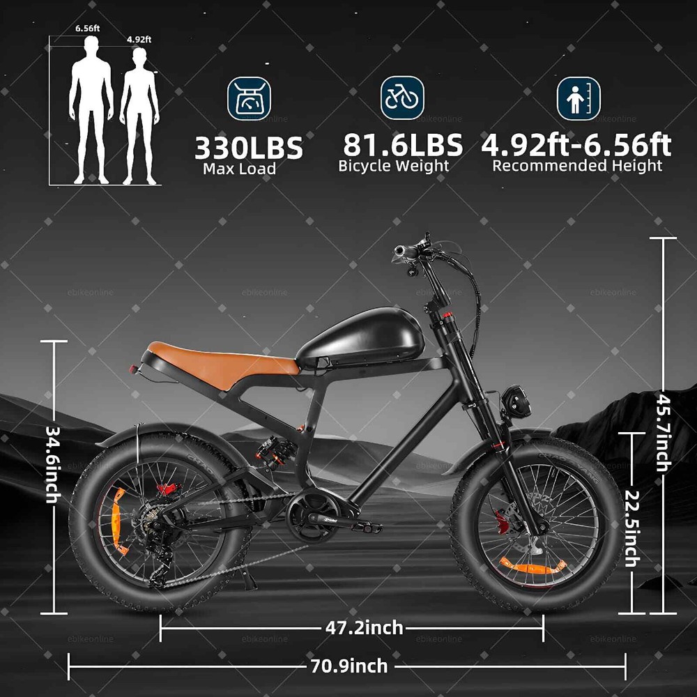 Manufacturer Warranty: 3 Years Department: Unisex Adult Brake Type: Disc Brake - Mechanical Free Gift: Cushion, tail light,Mobile phone holder (attached) Model Year: 2025 Color: Black Number of Speeds: 7 Speed Gear Change Mechanism: Derailleur Gears Suspension Type: Full Suspension (Front & Rear) Country/Region of Manufacture: United States Frame Number: No Brand: Aaiwa Custom Bundle: No Charger: 110V 2.0A, UL/CE certified, black, US standard Motor Type: Rear Hub Motor EAN: Does not apply Bike Type: Cyclocross Bike Model: Electric Bike Tire Type: Fat Tires Item Weight: 104 lb Maximum Range: Up to 80 mi Features: Lights, Adjustable Seat, Display, Fenders, Front Light Charging Time: 4-6 hours Voltage: 48 V Shifter Style: Grip Shifter Safe standard: passed UL 2849 detection Maximum Speed: 40 mph Frame Size: XX-Large Motor Power: 1000 W gtin13: Does not apply Max load: 330lbs Wheel Size: 20 in Material: Aluminum waterproof line: 9-core main waterproof line UPC: Does not apply MPN: B01 Custom-Built: Yes