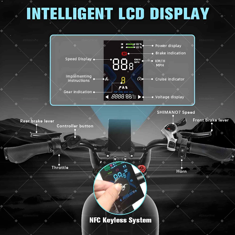Store Categories Store Categories LED Work Light LED Light Bar LED Headlight LED Whip Light Led Fog Light Front&rear Bumpers Mount Bracket Home & Garden Children Toy discount items Business & Industrial E-bike UTV Accessories Other Features: Frame: Aluminum alloy frame Tire size: Zhengxin 20 * 4.0 fat tire Speed requirement: maximum speed=34.5MPH (instrument display shows 38MPH) 1st gear speed control 10 miles per hour; 2-speed control at 15 miles per hour; 3-speed control at 20 miles per hour; 4-speed control at 25 miles per hour; 5-speed speed control with maximum output Battery: Samsung battery 52V 19.2AH (actual parameters) Labeling parameters 30AH Motor: Rear mounted motor [1500W (actual parameter)] Labeling 1500W Instrument: [Mid mounted color screen large instrument] with NFC system and USB charging port Shock absorption: [Front fork double shoulder with self-locking shock absorber (black), rear simulated hydraulic shock absorber * 1] Brake: Hydraulic disc brake caliper with black color Headlights: 5.75-inch motorcycle light+tail light (without steering) Wheel hub: spoke wheel Pedal: Aluminum alloy pedal Transmission: [Ximano 7-speed] Package: 1 X Electric Bicycle with Battery 1x battery charger The item is UL 2849 certified Payment Shipping Returns Contact us Feedback Payment We only accept payment via eBay by PAYPAL . Item will be shipped out within 24-48 hours after payment completed. Please make sure your eBay address is correct before you pay. All the unpaid case will automatically opened after 4 days because the ebay final value charge of the transaction. Shipping United States Shipped by USPS/UPS/Fedex , usually takes 3-7 working days to complete delivery. Package will be sent out within 24-48 hours after the pament is cleared. Pick-up is unsupported service. We will not be responsible for any delivery failure due to unclear address. Delivery is not available on weekends, public holidays or after business hours. Returns We will accept returns or refund or exchange if they are unused and unmarked within 60 days . If you received wrong of defective products, please take photos and contact us to confirm. We must protect your interest as promsied. Remember to contact us via eBay message firstly. Please don't open the return request. Thanks in advance! Contact us Office Opening Times: Monday to Friday-9:00AM-18:00PM Beijing Time. We do our best to respond within 12-24 hrs. If no response within 24 hrs, please check the spam in your mail box. Ask us about bulk discounts if you want to buy 3 or more. Our store is good ebay seller and we are renowned auto suppliers seller in China who had earned the highest feedback on high quality we have factory in HongKong. Our Company is a Branch company that of a manufacturer which producing the lighting equipment and accessories for vehicles. We move and in charge our main business in E-commerce on eBay nowadays. Feedback We apprecaite your business and strived to improve our customer service and our commitment to quality. We will leave a postive feedback immediately after payment is received. We appreciate a positive feedback as much as you do. Please do NOT leave negative or neutral feedback. If for some reason there is any issue with the purchase, please contact us prior to leaving feedback, and we will be glad to work with you to have it resolved.