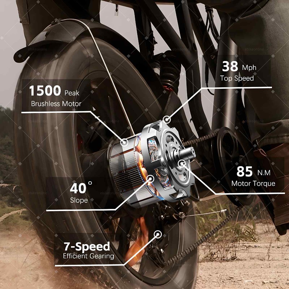 20" 1500W 48V Fat Tire Electric Mountain Bike for Adults