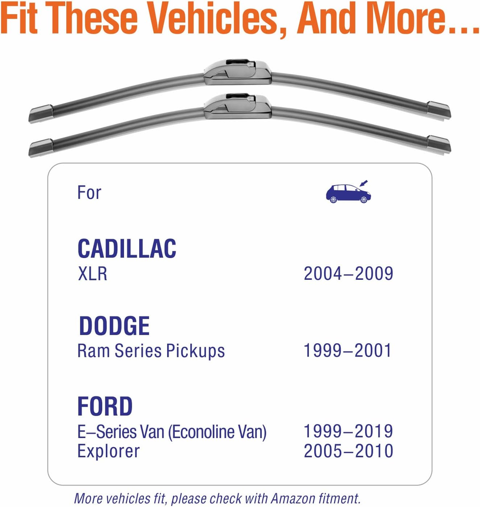 Store New Arrivals Add to Favorite View Feedback Contact Wiper Blades 20" + 20" Automotive Windshield Wiper Blades for My Car Premium All-Seasons OE Quality Wipers for Front Windshield(Set of 2) Description Item model number 20"+20" Style Front(U/J-Hook) Fit Type Vehicle Specific Fit Seasons Autumn, Winter, Spring Mounting Type Hook OEM Part Number function(f) {var _np=(window.P._namespace("DetailPageProductOverviewTemplatesJava"));if(_np.guardFatal){_np.guardFatal(f)(_np);}else{f(_np);}}(function(P) { P.when('A').execute(function(A){ A.on('a:truncate:po-attribute-truncate-4:updated', function(data) { var isTruncated = !data.truncateInstance.getIfTextFits(); var seeMoreElement = document.getElementById('po-attribute-see-more-id-4'); if(seeMoreElement) { seeMoreElement.style.display = isTruncated ? '' : 'none'; } }) }); })); Bosch ICON 20A 20A, Goodyear Assurance WeatherReady 20 Inch & 20 Inch, K&N EDGE 20" + 20", Rain-X 5079277-2 Latitude, TRICO Gold 18-2020 See more Auto Part Position Front Material Natural Rubber, Alloy Steel, Plastic, Metal, Acrylonitrile Butadiene Styrene (ABS) See more Country of Origin China Manufacturer Part Number 542020 Vehicle Service Type Bus, Van, SUV, Pickup, Car, Truck Item Weight 9.1 ounces Item Length 20 Inches Exterior Polished Model Beam Basic - B01 Special Features Metal Base Size 20"+20" 【METAL BASE FOR SUPER SOLID】With the unique metal base, WOWIPER front wiper blades will Never be broken, Never fall off, Never be disjointed. 【NO WATER REPELLENCY】Many streak, jitter, blur, noise are caused by Water Repellency treatment. Please wash off such treatment on your windshield before using new wiper blades. 【OE QUALITY MATERIALS】The rubber, spring, adapters, clips, spoiler of WOWIPER windshield wiper blades are same as OE, 50% better than OEM level. 【DOUBLE CHECK THE SPECIFICATION】Wiper Arm type: ½" & ¾" J Hook; Length: 20" +20" (Set of 2pcs) 【1 YEAR QUALITY WARAANTY】We offer unconditional warranty for 60 days, 30 days more extended from official, together with 1 year quality warranty. Enjoy! Product Description Reliable Quality! Long Life Our Windshield Wipers passed the test of 1,500,000 times wiping test, equals about 1 year life. For quality issue, you can claim for in 1 year. Metal Base Our Beam Blades use Metal Base, not plastic, which are stable in all conditions, no need to worry about to be broken or to be disjointed. Many other wipers are easy to broken, because they use plastic base. Stable End Clips The end clips are using high quality POM plastic, can hold the springs / wiper body firmly. Don't worry about to be fallen off. Silence Performance After more than 30 years R&D, our rubber are improved to be working smooth on windshields quietly. Don't wiper without any water/rain. It's better to clear Water Repellency treatment before use. Snow Weather Please use the washer fluid before wiping the snow directly, to avoid the sharp ice broken the rubber, or scratch the windshield. Heavy Rain We will be your reliable friend in heavy rain, to keep you seeing well. High Speed The wiper is designed to wiping perfectly even in 120 MPH. Very Hot Weather The rubber keeps performance up to 150 °F. Snow Weather Heavy Rain High Speed Very Hot Weather High Technology Spring, Fits Different Windshields Flat Windshield The spring is designed to fit different curve of windshield. Curved Windshield The material is different from OE wipers, because OE wipers only need to fit 1 kind of windshield. Very Curved Windshield On some special cars, they have a straight curve near the windshield frame, in this case, it is better to use 1 inch shorter than original. ABOUT US We offer the best prices around on high quality products. Our E-store includes media such as books, movies, music and games while offering electronics, toys, sporting apparel, clothing, tools, general home, garden items and more. SHIPPING We are always working hard to ensure your package arrives as soon as possible. Please understand that some factors like weather, high postal traffic, and the performance of shipping companies are outside of our control. We offer free shipping to the lower 48 states and ship within 2 business days of payment, usually sooner. We do not accept P.O. Boxes. Please provide a physical address. For shipping outside of the continental USA, we only use eBay's Global Shipping Program.The item is shipped to KY and then sent to the rest of the world. International customers are responsible for all duties and taxes. Continue to check out in order to calculate costs for shipping the item to your country. Messages regarding eBay's Global Shipping Program MUST be directed at eBay EXCLUSIVELY. RETURNS We offer a 30-Day Return Policy on items which you are not completely satisfied with. You have the option for a full-refund or an exchange of the item. No returns are available on items shipped outside of the USA. PAYMENT We accept PayPal. CONTACT US This page content is yet to come Please ad us to your favorite seller and visit again later Thank You CUSTOMER SATISFACTION We try our very best to make sure every customer is completely satisfied. If there's a problem, message us! We're happy to help. WE ACCEPT Copyright © 2021 AutoDS. | All Rights Reserved