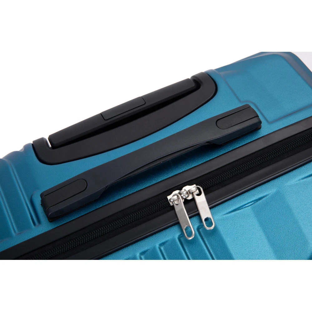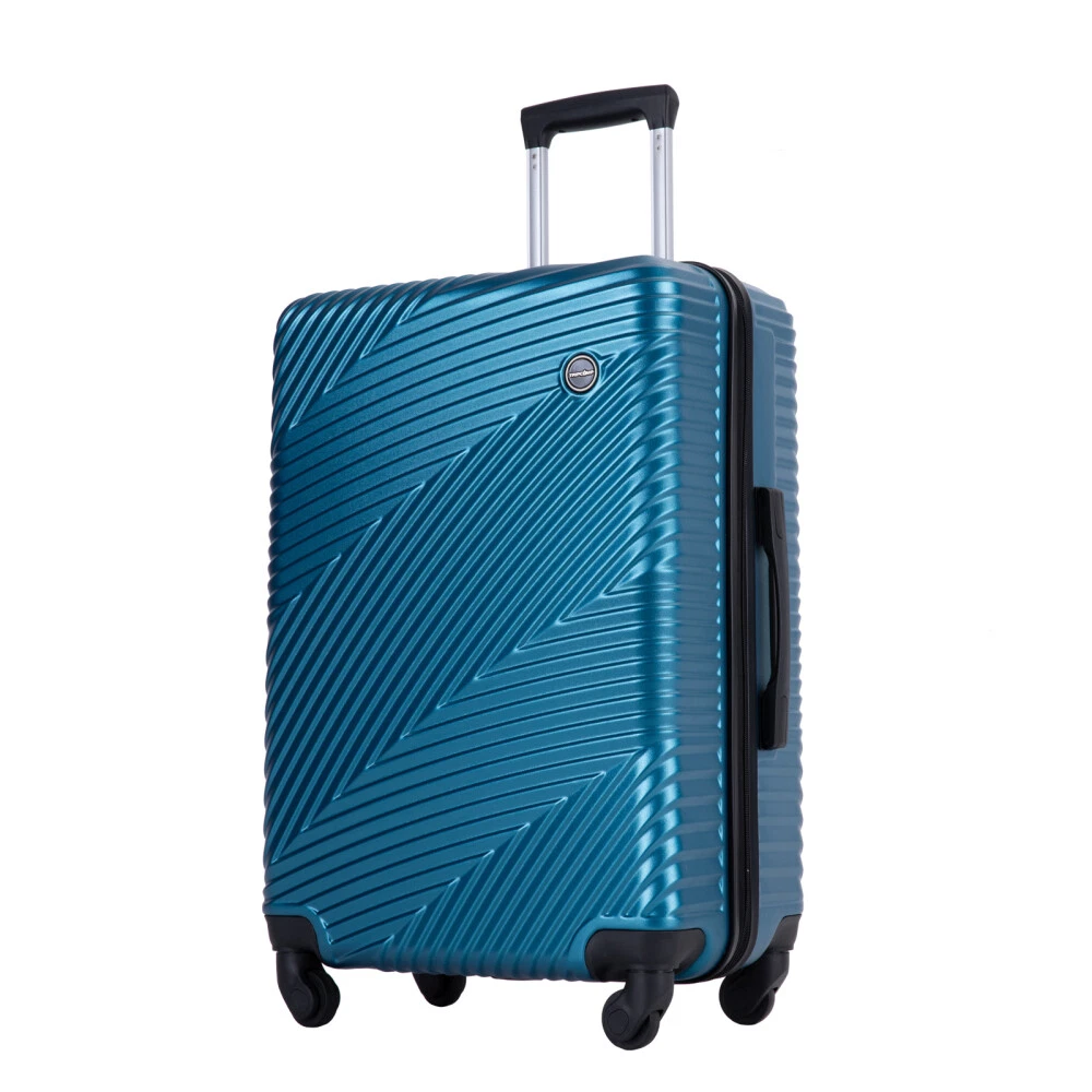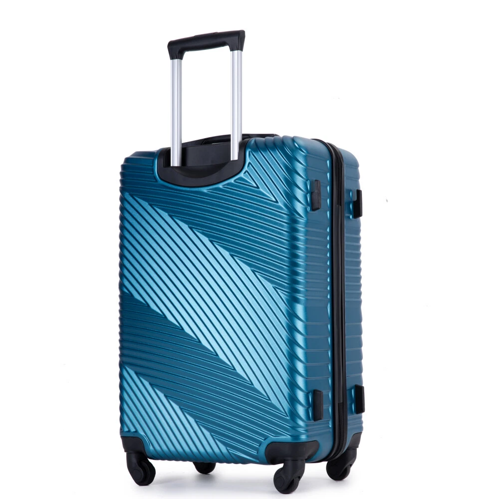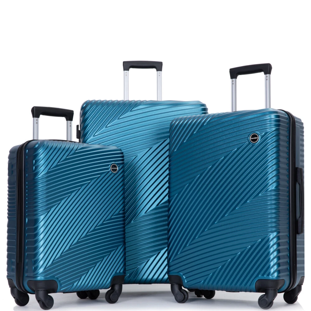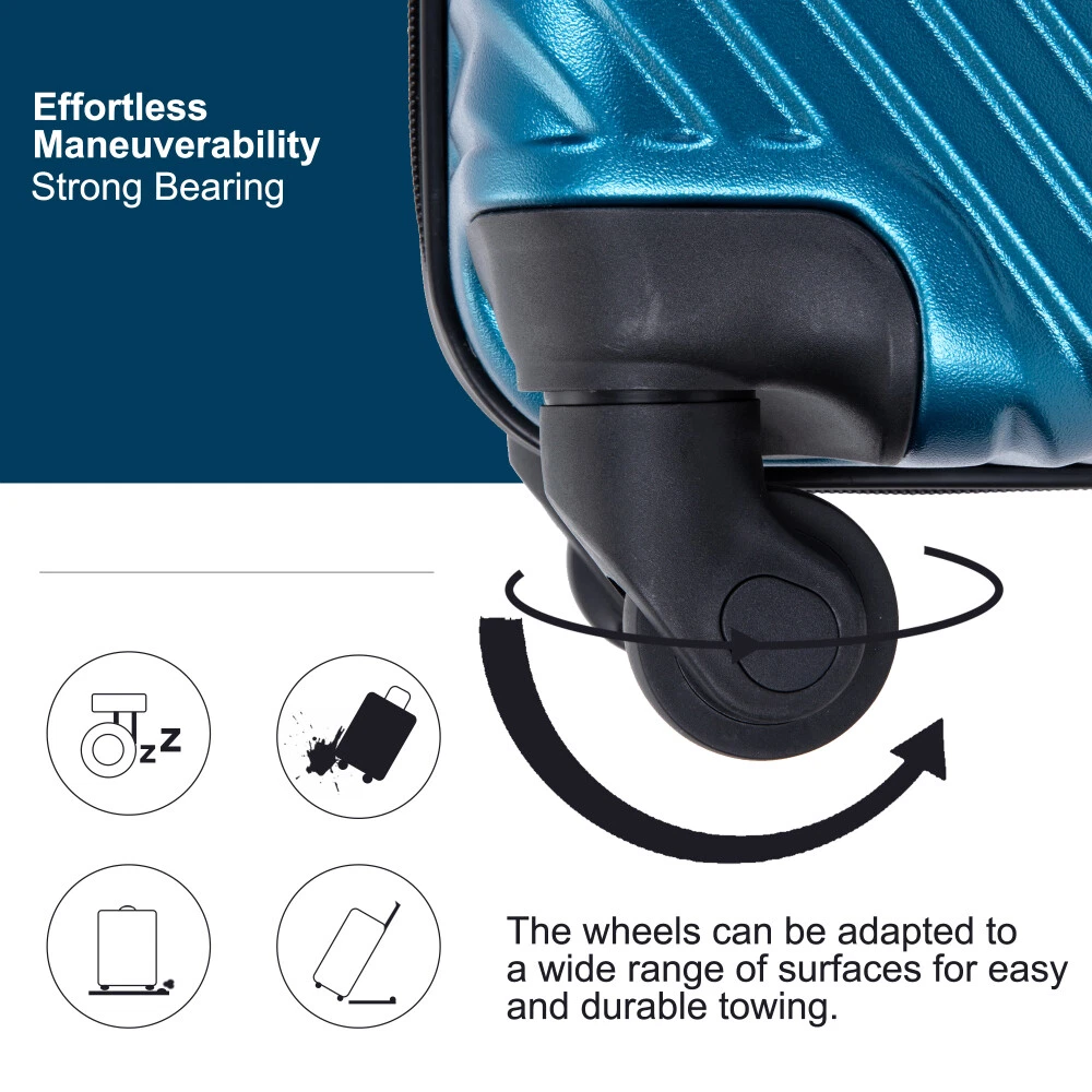 3 Piece Luggage Sets PC+ABS Lightweight Suitcase with Two Hooks, Spinner Wheels, (20/24/28) Product Features Appearance and Material: PC+ABS material makes the luggage more durable, lighter and impact-resistant. Electronic pattern with bright color makes the luggage metallic and textured, which can show off your individuality. Adjustable Ergonomic Pull Rod: The adjustable pull rod accommodates different heights. Smooth ups and downs for more comfortable carrying. Comfortable Telescoping Handles: Top and side handles. 24" and 28" have 2 side soakers with hooks on top for hanging items and 2 regular side soakers on the bottom. They can prevent the sides of the luggage from rubbing on the ground. Organized and Spacious Interior: The fully lined luggage includes a handy divider and an interior organizer with zippered pocket for smaller items. The internal tightening fixing straps can be adjusted to fix items according to the amount of items. Smooth Wheels: They can be adapted to a wide range of surfaces for easy and durable towing. Description Appearance and material PC+ABS material makes the luggage more durable, lighter and impact-resistant. Electronic pattern with bright color makes the luggage metallic and textured, which can show off your individuality. Pull Rod Adjustable ergonomic 3-step pull rod for more comfortable carrying. Handle Top and side handles. Interior Organized and spacious interior. Wheel Effortless maneuverability and strong bearing.