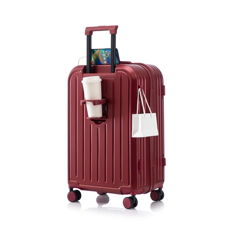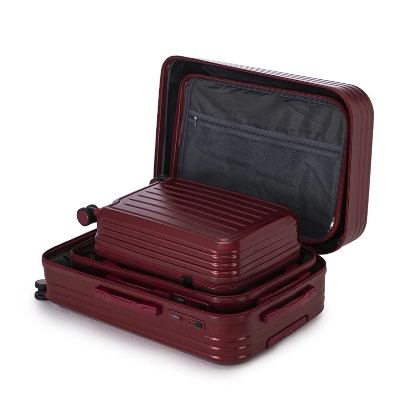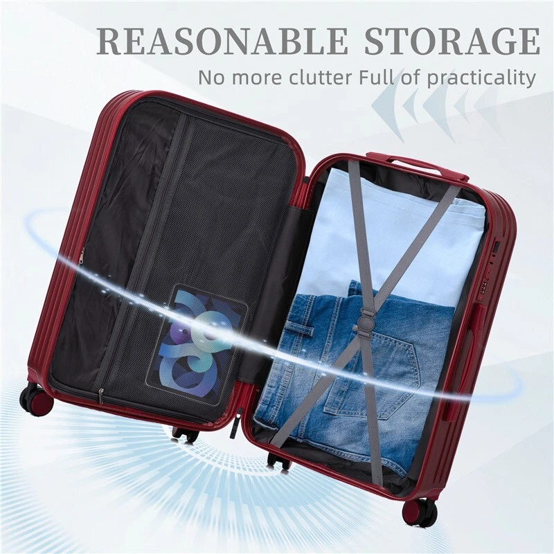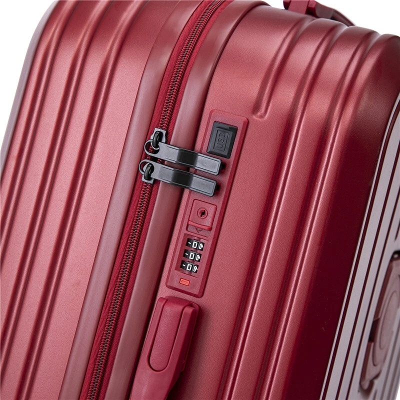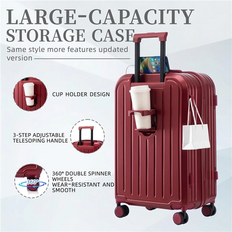Features and Details: Durable & Waterproof: Our family suitcase set features sturdy watertight ABS external, which is easy to clean and long-term use. It can carry a large weight while having four swivel wheels that can move effortlessly in any direction. Built-in USB Port: The Carry-On features a built-in USB port, Type C port, provide quick connection to your portable electronic device for a quick charge.Not worried about the phone is out of power any more. Multifunctional Holder Design: Especially designed water cup holder, and the handle hook, all is to provide a comfortable and convenient travel experience. Retractable Handle: The ergonomically designed push-button 3-step adjustable telescopic handle makes opening and closing a breeze. What's more, it fits any size hand and reduces stress when climbing stairs. Modern Appearance: The stylish and smooth vertical stripe design of the rolling luggage makes it more resistant to pressure and wear and brings a good mood to your journey. It includes four molded side feet, they allow the luggage to remain upright even when standing on its side. Specification: Color: BroWINE RED Material: ABS Product Dimensions: 19.3"L × 11.4"W ×29.5"H Weight (lbs.): 22.96