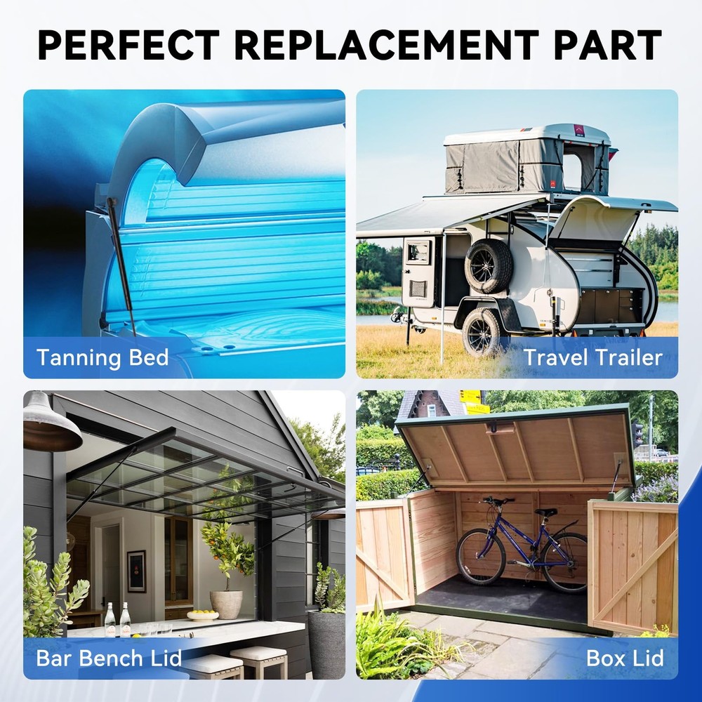 C16-08053 20 inch 80 lb Gas Strut Spring Shocks, 71794 20" 80 Pounds for Tanning Bed RV Bed Tonneau Cover Boat Hatch Engine Cover RV Basement Door Bed Cover Trap Door Jukebox Pistons, Pack of 2 Multi-scenario Usage: 20 inch 80 lb struts are widely used on rv queen size bed cover, motorhome bay door storage compartment door, tonneau cover, boat engine hood cover, large outdoor cabinet storage box lid, fiberglass topper, etc Interchange Number: attwood sl34-80-1, 71794, C1608053, C16-08053,4293,4293S10,SG359015, ML34-80 Direct Replacement: Extended length A (Center-to-Center): 19.7 inch, compressed length B (Center-to-Center): 11.8 inch; 80 Pounds per shock, 2 Shocks per Pair Precise Manufacturing: The gas struts sturdy, well-constructed and perform well, offering a controlled, gradual lift rather than a sudden jolt; With a 80lb capacity per strut, they provide enough support for heavy-duty lids Application Range: 20 inch spring will be suitable for heavy lids, with lid weight between 64-88 lbs, side length ≥ 32 inch, ensuring smooth lifting and secure hold; Note: do measure the lid weight or check the oem number to buy correct items Easy to Install: Installation was straightforward, requiring minimal tools, replaced just by loosening the clip, pop the new one into place, and click it on 18-Month Support: Every gas strut comes with 18 months replacement support, if any quality issues, buy wrong items or missing parts, please get in touch with team for in-time solution(No ball studs or mounting brackets included) [Function] -- This Set of 2pcs 20inch Gas Lift Spring Shocks could be used for rv queen size bed cover, motorhome bay door storage compartment door, tonneau cover, boat engine hood cover, large outdoor cabinet storage box lid, etc; Shipping We offer FREE shipping on all orders! We ship within Three business days of payment, usually sooner. We use a selection of shipping services such as UPS, FedEx, USPS etc. We only ship to the lower 48 states, no APO/FPO addresses or PO Boxes allowed. Local pickups and combined shipping options are not provided at this time. Return You can return a product for up to 30 days from the date you purchased it. Any product you return must be in the same condition you received it and in the original packaging. Please keep the receipt. Payment We accept payment by any of the following methods: PayPal Please pay as soon as possible after winning an auction, as that will allow us to post your item to you sooner! Feedback Customer satisfaction is very important to us. If you have any problem with your order, please contact us and we will do our best to make you satisfied. Contact Us If you have any queries, please contact us via ebay. We usually respond within 24 hours on weekdays. Please visit our eBay store to check out other items for sale! Thank you for shopping at our store.