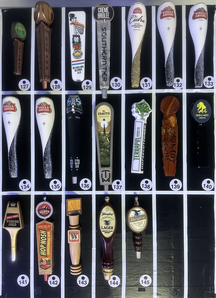 Elevate your bar or kitchen with these unique and customizable beer tap handles. Made for collectors and enthusiasts alike, these handles come in a variety of designs and colors to suit any food and beverage theme. Perfect for advertising your favorite brands, these handles are a must-have for any bar or kitchen. With volume discounts, you can pick and mix your own selection of beer tap handles from multiple brands. Get yours today and add some personality to your space! Thank you for checking out our page! Most of our handles are used and acquired in bulk. They range in condition from pristine/new out of the box to minor imperfections. Imperfections include but are not limited to: fading, scratches, cracks, missing ferrules/toppers. We do some light reconditioning/cleaning but if an item is complete junk, it won't make its way to our listing. That being said, we have a large collection of imperfect handles that you may be interested in doing some DIY. If these strike your interest, feel free to ask any questions you may have. We will gladly send more photos/descriptions of any items listed here or any items you discover we have that are not listed. The process is easy. Simply scroll to our #’d drop-down menu, select ONE handle only at a time and ‘add to cart'. You can then return to the drop-down for more selections. Once all items are in your cart, simply go to check out and the volume discounting will be automatically applied at that time. We are always adding more inventory so check back often. Any items not seen in the photos may still be in stock but not listed online - just ask and we'll let you know if we have it.