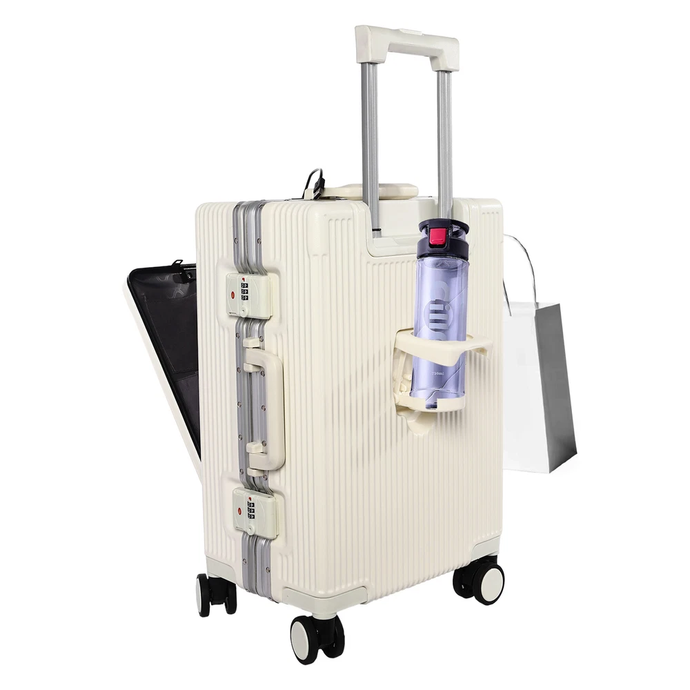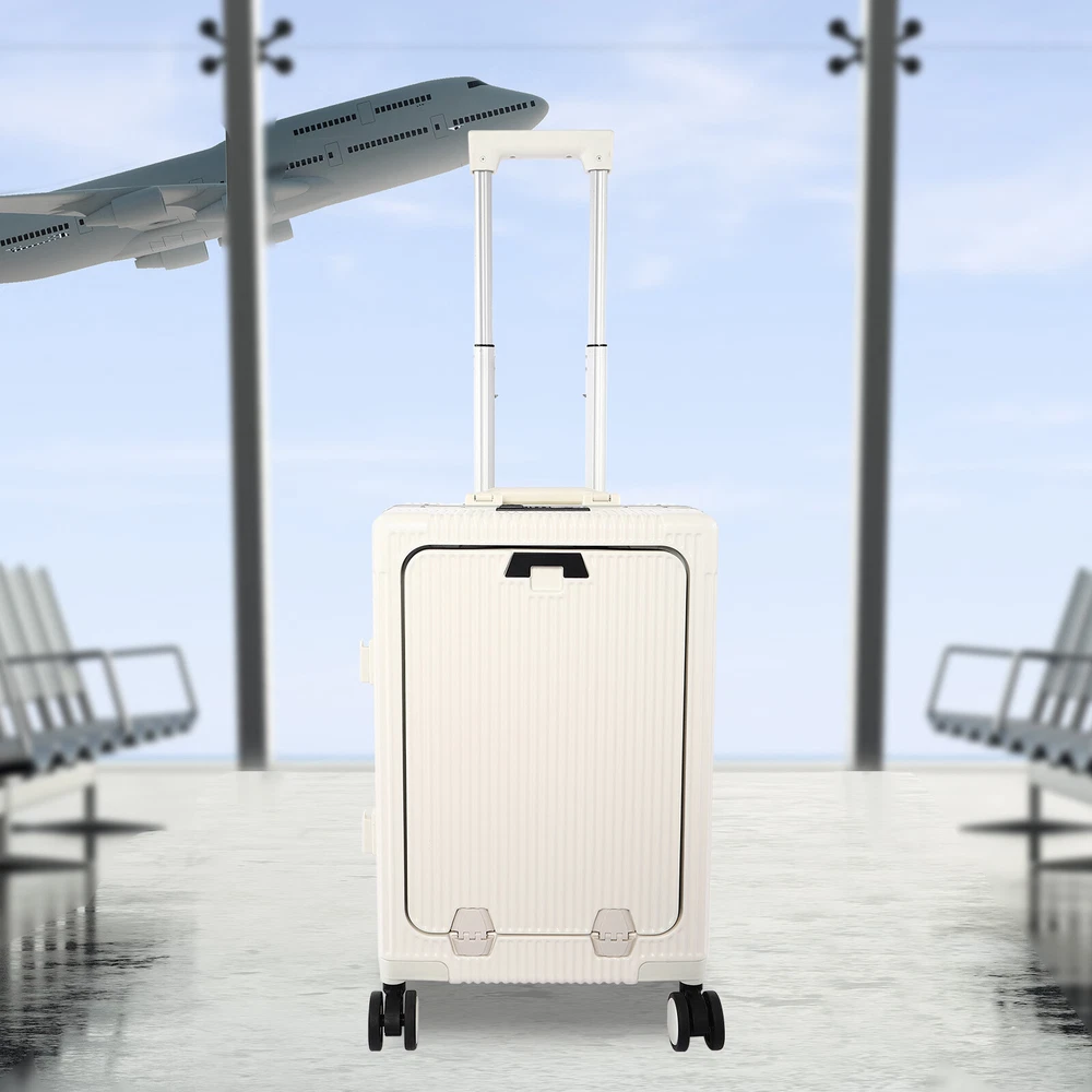 Specification Material: Aluminum, PC, ABS, PU, Rubber Color: White Shape: Rectangular Style: Modern Assembly Required: No Mount Type: Freestanding Wheel Type: 4 * Universal Wheels Pull Rod Gears: 2 Front Compartment Opening Range: 45°-120° Internal Load Capacity: 15kg/33.07lbs External Load Capacity:100kg/220.46lbs Suitable Laptop Size: 35.56-38.1cm/14"-15" Pull Rod Height: 90cm/35.43in Capacity: Approx. 30L/7.93gal Product Size: 36*24*56cm/14.17*9.45*22.05in Package Size: 60*40*28cm/23.62*15.75*11.02in Gross Weight: 4.7kg/10.36lbs Net Weight: 3.8kg/8.38lbs Package Included 1 * 20" Boarding Case 20" Boarding Case Handle Suitcase Boarding Cabin Suitcase W/ USB interface Description Our 20" boarding suitcase is designed specifically for modern travelers, with a groundbreaking front lid design, USB interface, cup holder, and password locks that combine convenience, security, and technological elements, making it the ideal companion for your short-term business or leisure trip. Have it now, make every trip a joyful exploration journey! Key Features High-quality Material: This product is made of high-quality aluminum, PC, ABS, PU, and rubber, which combines impact and wear resistance to ensure that the product is strong, sturdy, and has a long service life. Suitable Size: The size of 4.17 * 9.45 * 22.05 inches meets the maximum boarding luggage size specified by the International Air Transport Association and various airlines. You can rest assured to bring it on the plane without going through check-in procedures. Large Capacity: There is a dedicated compartment inside the independent front compartment that can accommodate 14-15 inch laptops. Multiple storage areas can store small pad devices such as power banks, phones, and tablets. With an internal capacity of approximately 7.93 gallons and well-designed zoning, you can pack approximately 33.07 lbs of luggage in an orderly manner, making it more than enough for 5-7 days of solo travel. High Security: The main warehouse uses two three-digit password locks, which have good anti-theft capabilities, allowing you to safely put valuable items inside. The filled shock-absorbing cotton and safety straps can prevent damage to electronic devices, providing thoughtful protection for your important devices. Convenient & Fast : The front compartment uses a TSA lock and vertical opening design that can be opened with just one click, combined with a 45°-120° opening range, allowing you to quickly complete the program without having to open the case horizontally during security checks. Powerful Load-Bearing: The reinforced aluminum frame and three-layer PC material with good elasticity have a strong load-bearing capacity (220.46 lbs), allowing you to sit on it and rest for a while during the tiring journey. Comprehensive Protection: There are sealing strips between the aluminum frames of the main compartment and a rubber cap on the USB port to prevent water from entering , allowing for safe use even on rainy days. Flexible & Portable: With a maximum pull rod length of 35.43 inches, two handles, four PU universal wheels, and a weight of 8.38lbs, you can easily and quietly take this product to where you want to go with low noise. Details Independent Waterproof Bag: You can use it to store toiletries and keep other items dry. Pull Rod: You can use it as a phone stand to enjoy some entertainment on the go. Cup Holder & Hook: They are convenient for you to place drinks or other items while waiting or resting, keeping your hands free and facilitating easy access . USB Port: It is designed with a USB charging port and provided with a USB charging cable ( power bank is not included ), convenient for charging electronic devices at any time. Application This product can be widely used in short-distance domestic and international tourism, business trips, vacations, exchange visits, academic conferences, and other occasions, which is suitable for most people such as students, business people, tourists, etc. Specification Material: Aluminum, PC, ABS, PU, Rubber Color: White Shape: Rectangular Style: Modern Assembly Required: No Mount Type: Freestanding Wheel Type: 4 * Universal Wheels Pull Rod Gears: 2 Front Compartment Opening Range: 45°-120° Internal Load Capacity: 15kg/33.07lbs External Load Capacity: 100kg/220.46lbs Suitable Laptop Size: 35.56-38.1cm/14"-15" Pull Rod Height: 90cm/35.43in Capacity: Approx. 30L/7.93gal Product Size: 36*24*56cm/14.17*9.45*22.05in Package Size: 60*40*28cm/23.62*15.75*11.02in Gross Weight: 4.7kg/10.36lbs Net Weight: 3.8kg/8.38lbs Package Included 1 * 20" Boarding Case Notes The USB port does not charge on its own, you need to supply a power bank(not included). Please allow the slight color difference caused by the shooting light and 1-3cm error due to manual measurement, and make sure you do not mind before ordering. Payment Delivery details Terms of sales About us Contact us Payment We accept ebay payment 。 Fees such as import duties, taxes are not included in the item price or shipping costs. These charges are the buyer's responsibility. Delivery details Shipping: 2-9 working days to: USA Terms of sales We maintain high standards of excellence and strive for hundred percent customer satisfaction. Feedback is very important to us. We hope that you contact us immediately before you give neutral or negative feedback, so that we can address your concerns. It is impossible to address issues if we do not know about them! About us Your satis faction is our ultimate goal. We work hard to earn your trust and future business. Our certified technicians have tested each item before shipping. The unit comes with 1 year limited warranty on all manufacturing defects. a) If you receive a defective item, you may return it or ask for a discount. Please contact us within 14 days after you receive the package. b) What you returned must be intact and in its original packaging as re? u. Customer is responsible for shipping costs of the returned ite