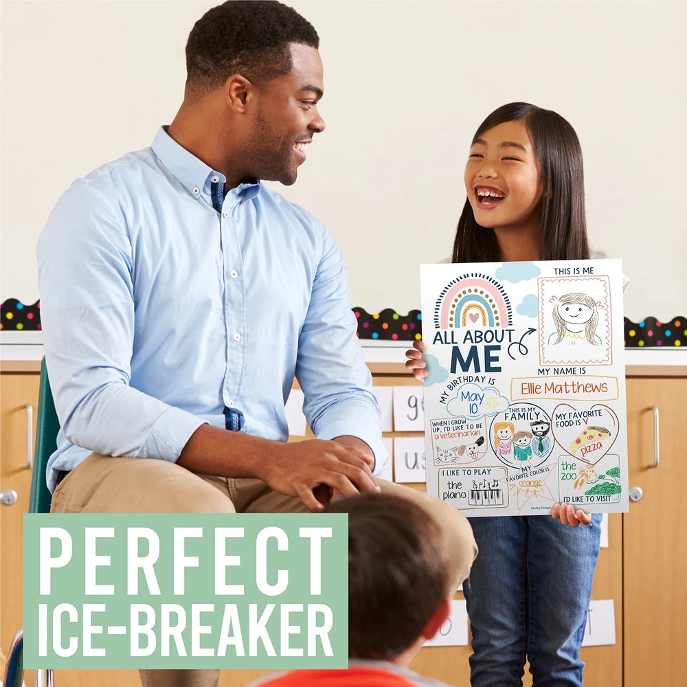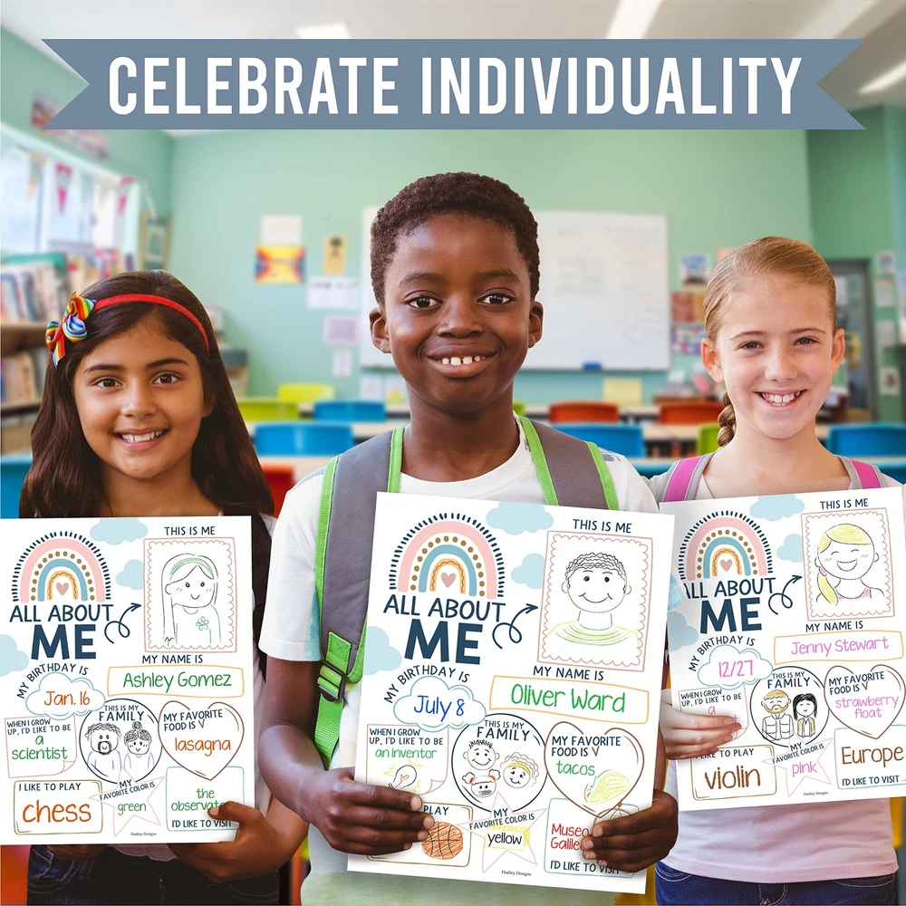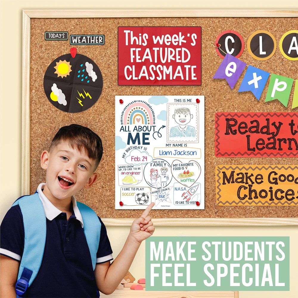 Looking to get to know your students better? Then you need this all about me poster set! Whether you're looking for preschool teacher supplies / preschool supplies for classroom, kindergarten teacher supplies, or elementary school teacher supplies; these posters are a fun way to help students of all ages and grade levels learn more about each other. 11x14 Inches—20 Posters Included! Thick And Easy To Write On Made In The USA Each star student poster includes large spaces that prompt students to write about their likes and interests, along with extra spacious areas for students to draw portraits (great for developing self-identity!). And unlike other teaching supplies for the classroom, elementary posters, and back to school teacher supplies that are made overseas; our bright colored elementary school posters are USA made with sturdy cardstock—which makes them a long-lasting keepsake parents can cherish forever! Make your students feel special by using these as pastel rainbow and sun pre school supplies, preschool art supplies and teacher school supplies for classroom, preschool classroom supplies, pre school supplies 3 year old, prek school supplies / pre k school supplies, back to school supplies kindergarten classroom supplies, first grade school supplies, classroom supplies for teachers elementary, about me chalkboard sign teacher supplies for classroom elementary, cloud heart teacher bulletin board supplies must haves, sunny yellow sunshine teacher classroom supplies, or blush pink / light pink teacher supplies for classroom bulletin board. Our family-owned business wants to provide the best teachers supplies for classroom to help encourage your students to talk about themselves. If you have questions about our rustic preschool school supplies, toddler classroom supplies, preschool learning activities, or back to school supplies for teachers, please don't hesitate to reach out. We're always here to help If You’re Looking For A Fun Way To Get To Know Your Students; Then you need this read all about me poster set; While other instant personal poster sets are made overseas, our colorful all about me boho posters are USA made with thick cardstock Make Students Feel Special; You'll receive 20 total 11x14" posters—the perfect number for classrooms; Write, draw, and color your own all about me posters and use them as a star of the week poster, student of the week poster, or student of the month poster A Cherished Keepsake For Parents; These student and teacher posters for classroom help parents capture and preserve memories; Imagine how treasured this boho rainbow classroom decor star of the week poster will be for years to come Perfect For Any Age Or Grade Level; You can use these as all about me posters preschool supplies, all about me posters kindergarten signs, all about me posters 2nd grade - 5th grade student of the week posters elementary signs, or scholastic posters elementary decor We are so confident in the quality of our all about me posters that we offer a lifetime manufacturer warranty; If you have any issues with your read all about me posters, we will replace them with a smile; Our family-owned business is here to help you and your students get to know each other better; Why wait, get your read all about me posters today