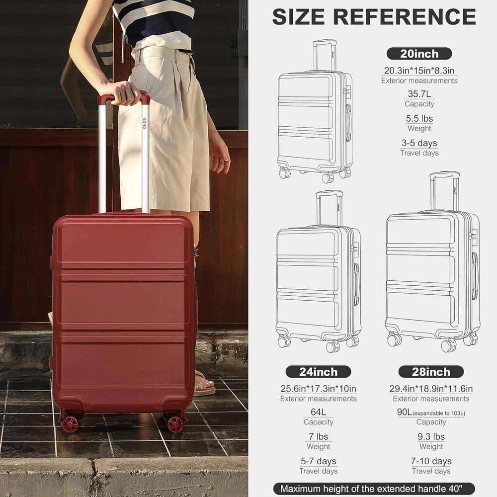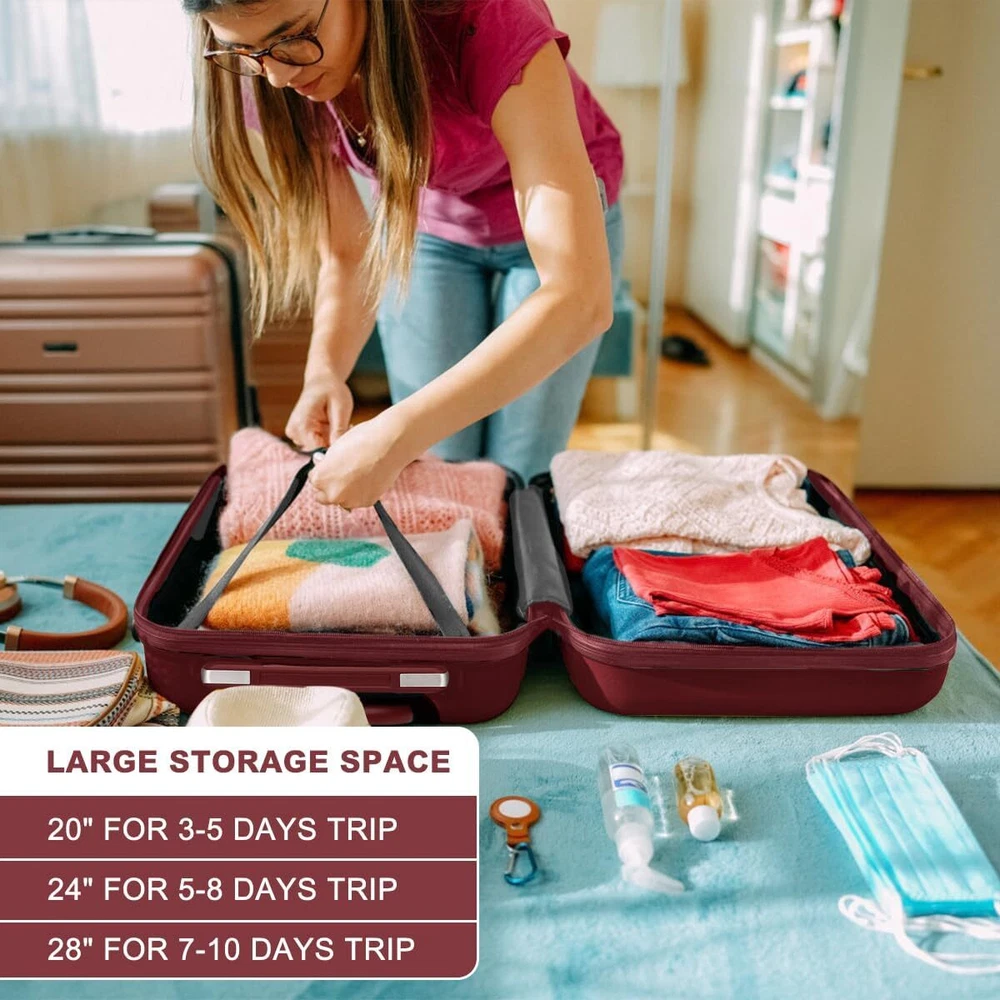 【20 INCH SPINNER LUGGAGE DIMENSIONS】Overall Dimensions: 20.3" x 15" x 8.3" (including wheels and handles). Packing Dimensions: 18.3" x 14.76" x 8". Weight: 5.5 lbs. CAPACITY: 35.7L. This international carry-on luggage maximizes your packing capacity and meets most carry-on size restrictions for both domestic and international travelers aiming to travel light. It's suitable for 3 - 5-day trips! 【TELESCOPIC HANDLE + SHORT HANDLE】The adjustable 3-level aluminum telescoping handle enables you to easily and quickly maneuver in tight spaces. It is sturdier than most telescoping handles on the market. Additionally, there are soft - sided handles. They are convenient for easy carrying when you're in a hurry. Moreover, these soft - sided handles are extremely useful when you need to lift the suitcase, especially when it's heavy. 【CARRY ON LUGGAGE WITH LOCK + WHEELS】The side-mounted TSA lock, combined with a smooth YKK zipper, serves to deter theft. This ensures that only you or a TSA agent can easily access your belongings during travel, providing added security and convenience. The multi-directional spinner wheels offer 360º effortless mobility, reducing the strain on the traveler's wrist. Additionally, the wheels have been re-engineered to be lightweight. 【PRATICAL INTERIOR FOR WELL ORGANISED】hard shell carry on luggage designed with 2 roomy fully-lined compartments. The packing straps keep your clothes in place, a zipper mesh pocket for anything you want to keep separate. Not only a perfect small luggage for yourself, but also a cute gift for your families, friends, or school children. Product Dimensions 15 x 8.3 x 20.3 inches Item Weight 5.5 pounds Department Unisex Adult On Feb 11, 2025 at 19:11:08 PST, seller added the following information: