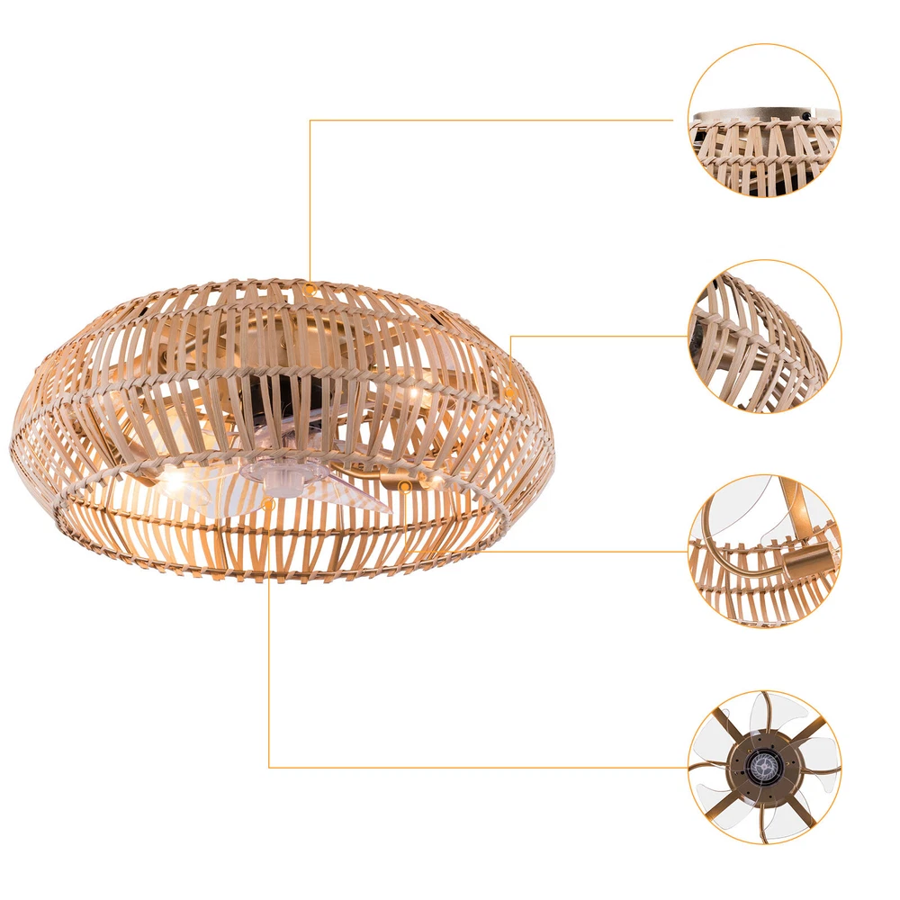 Description This ceiling fan light with rattan-yellow color and cage-shaped design adds retro and rustic elements to your room while balancing room temperature. The equipped remote control allows you to freely adjust the wind speed and time, which is very convenient and practical. Low noise also brings you a comfortable feeling. Application Its lighting area is 107.6-161.5ft² and the applicable height is 7.7ft. It can be used in various scenarios, such as living rooms, dining rooms, study rooms, cafes, bars, libraries, and other places. Package Included 1* Ceiling Fan Light 1* Remote Control 1* Battery 2 Bag* Screws and Nuts 1* English Manual 20" Farmhouse Rattan Woven Ceiling Fan Light 5 Blades Fan Lamp Remote Control US 18.5" Ceiling Fan Light Rattan Caged Flush Mount Ceiling Fans with Remote Control Description This ceiling fan light with rattan-yellow color and cage-shaped design adds retro and rustic elements to your room while balancing room temperature. The equipped remote control allows you to freely adjust the wind speed and time, which is very convenient and practical. Low noise also brings you a comfortable feeling. Key Features Healthy and Energy-saving: The ceiling fan light can reduce the frequency and time of air conditioning use, saving energy, and reducing expenses. When used together with air conditioning, it can avoid direct blowing and reduce the risk of air conditioning diseases. Unique Design: The woven rattan shade in a cage shape gives this product a classic appearance and a unique sense of hazy light that fits industrial, vintage, and rustic. It casts soft light on the ceiling, creating a warm lighting effect. Build to Last: This ceiling fan consists of iron chassis&brackets with a spray-painted process and a hand-woven rattan shade, making it impact& corrosion-resistant, solid, and sturdy. Adjustable Wind: It can be adjusted to turn forward and reverse to bring you refreshing cool air as well as to circulate the air in winter. And the 6-speed wind speed allows you to adjust from gentle to strong winds, feeling the refreshing breeze and strong coolness with just one click. Timing Function: The timer function(1,2,4,8h) accompanies you to sleep, so you don't have to worry about catching a cold caused by long blowing or wasting electricity. Low Noise : Adopting a pure copper motor, this ceiling fan light works with 35dB low noise, so you can enjoy large air volume and a comfortable environment without being disturbed. Easy to Operate: You can control the lamp and fan with the remote control within 9.8ft , which is simple and convenient. Protective Package: To prevent the product from being damaged and bumped during transportation, we packed it with foam to protect your products to the maximum extent possible. After-sales Service: We are a professional manufacturer of lamps and lanterns. If you encounter any problems, please feel free to contact us. We will help you solve the problems within 24 hours. Shop with confidence! Details ABS Blades: The 5 ABS blades are clear, wear-resistant , and high-strength without affecting the whole beauty of this ceiling fan. Stable Chassis: Its 7.08-in-diameter round base can increase the stress area and ensure stability. E26 Lamp Holder: The standard E26 bulb holders allow you to flexibly choose different style bulbs less than 40W such as LED, Edison, and incandescent(not included) to create different lighting effects. Application Its lighting area is 107.6-161.5 ft² and the applicable height is 7.7ft . It can be used in various scenarios, such as living rooms, dining rooms, study rooms, cafes, bars, libraries, and other places. Specification Model: BT290 Material: Iron, Woven Rattan Blades Material: ABS Color: Gold, Rattan Yellow Process: Hand-woven, Spray-painted Style: Farmhouse Shape: Round, Cage Mounting Type: Ceiling Mount Control Type: Remote Control Remote Control Distance: 3m/9.8ft Recommended Uses for Product: Air Circulation Indoor/Outdoor Usage: Indoor Number of Blades: 5 Fan Speed: 6 Gears Timing Function: 1/2/4/8H Noise Level: 35dB Power Source: DC Reversal Function: Yes Battery Type: 1* AAA 1.5V Battery (Included) Light Source: 4* E26 Bulbs (Not Included) Voltage: 110V Max. Bulb Power: 40W Bulbs Length: Less than 125mm/4.92 inches Applicable Height: 2.35m/7.7ft Applicable Area: 10-15m²/107.6-161.4ft² Chassis Diameter: 18cm/7.08inch Ceiling Fan Light Height: 23cm/9.05inch Ceiling Fan Light Diameter: 48cm/18.5inch Package Included 1* Ceiling Fan Light 1* Remote Control 1* Battery 2 Bag* Screws and Nuts 1* English Manual Notes Please check the product size before ordering to make sure it fits your room. Our product does not include bulbs, please purchase 4 E26 bulbs by yourself. An A19 bulb is recommended. ST58 and ST64 are not suitable. Please select a bulb with a length of less than 4.92 inches. To ensure your safety, we recommend that two people install this ceiling fan together. The surface of the product and the electric wire should avoid scratching when mounting, and electric insulation gloves(not included) must be worn when installing. Please install it by someone with an electrical license if necessary. Please use and install it in strict accordance with the instructions, and pay attention to the safety precautions inside. Regular cleaning of the fan light can extend its life and ensure its proper operation. Please make sure the power is cut off before installation and when you clean the light. We recommend that the ceiling fan be used in a dry environment. And it is not suitable for inclined ceilings. Please allow the slight color difference caused by the shooting light and 1-3cm error due to manual measurement, and make sure you do not mind before ordering. Payment Delivery details Terms of sales About us Contact us Payment We accept ebay payment 。 Fees such as import duties, taxes are not included in the item price or shipping costs. These charges are the buyer's responsibility. Delivery details Shippin