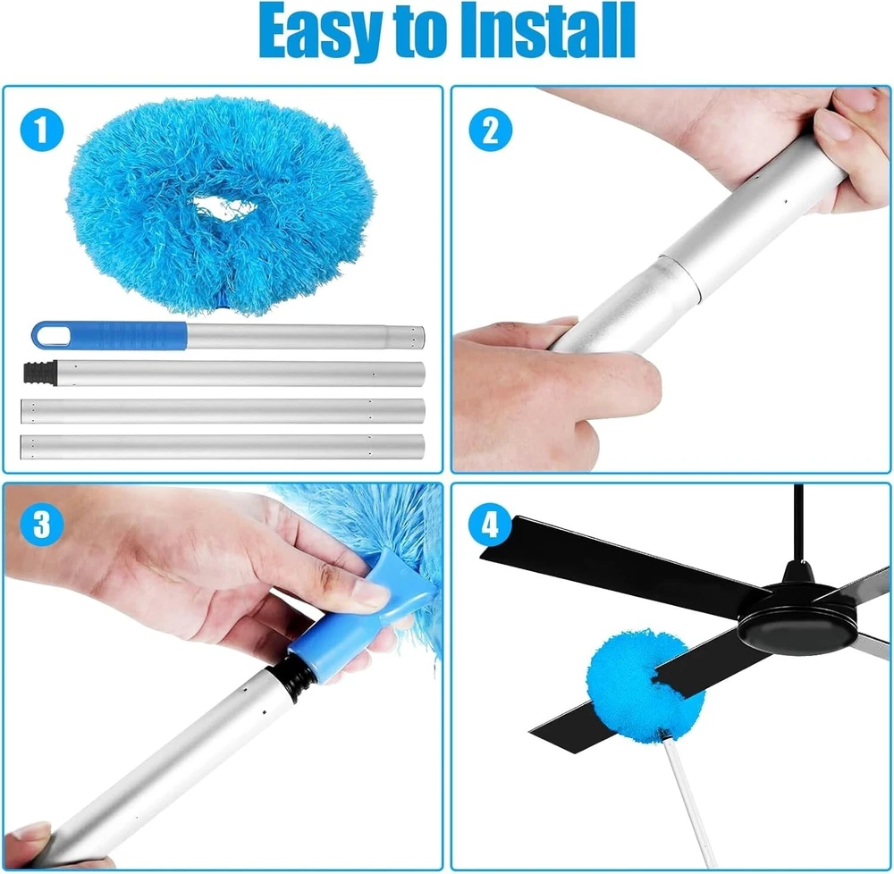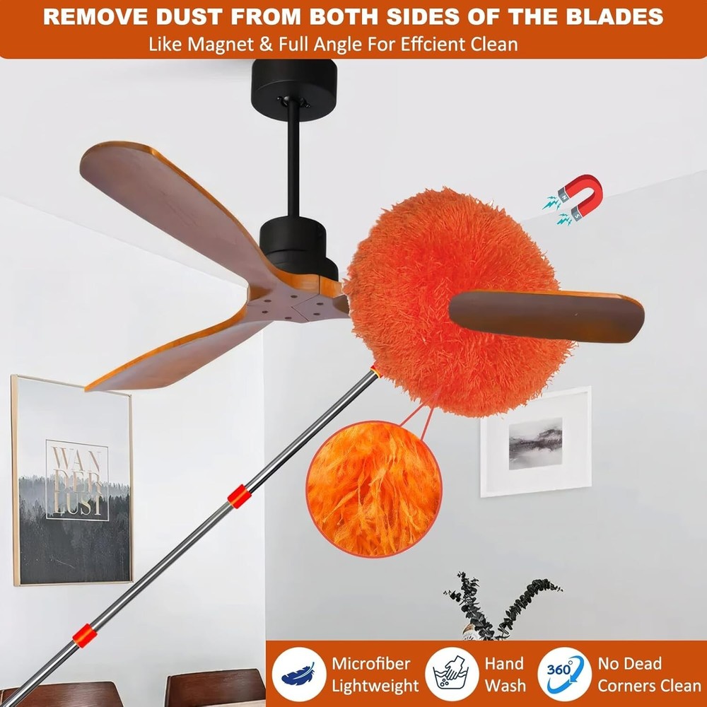 Orange Comprehensive 2 PCS Duster Kit: This set comprises of a 170 inches/14 feet Extension Pole (Stainless steel poles can be installed as per your needs), 1 pcs Microfiber fan Duster Head, and 1 pcs Spider web Duster Head.Be ready to tackle any cleaning scenario and keep your home dust-free with our versatile kit. Versatile Threaded Pole Connection: Our duster's pole extends from 34 inches to an impressive 170 inches/14feet, offering you the ability to clean high and unreachable spots up to 20 feet high.Avoid the dangers and inconveniences of climbing ladders with our extendable cleaning duster. Ergonomically Comfortable Grip: Designed for your comfort, our duster features a non-slip plastic handle end that is not only comfortable but also has a suspensible design for easy storage. Easy-to-Clean, Washable Duster: Disassemble, wash, and reassemble - Our duster is designed for easy maintenance.Simply detach the duster head, rinse, and hang to dry for your next use. Efficient Dust and Spider Web Cleaning: Say goodbye to dust and spider webs in high ceilings/glass, ceiling fans,exterior walls, air conditioning vents, lampshades, appliances, walls, shutters, cars, picture frames, bookshelves, and sofas. Grey High quality: the dusters for cleaning of the ceiling fan blade cleaner is made of ultra-fine polyester fiber, which has the advantages of strong dust-absorbing ability, high efficiency in removing dirt and easy maintenance. Reusable: Soft dense broom head is washable and reusable to maintain long-lasting cleaning efficiency. Economical for everyday use Extension Rods: Ceiling fan cleaner duster features two 13-inch extension rods ranging from 13 to 49.7 inches, allowing for easy length adjustment and effortless cleaning of ceiling fans, high windows and overhead shelves Multi-Purpose: This duster with extension pole high ceiling is versatile and can be used for a variety of purposes in daily life, including cleaning household appliances, fans, cars, blinds, bookshelves and hard-to-reach corners. It effectively removes dirt from crevices, removes cobwebs or airborne dust. Easy Storage: The fan cleaner duster high ceiling has a hole at the end with an extension pole for easy hanging. Its removable design allows it to be easily stored away when cleaning is complete, greatly saving space and not affecting aesthetics