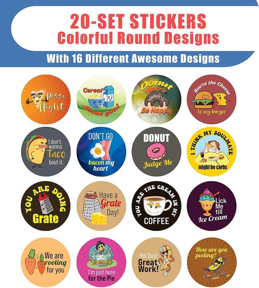 16 UNIQUE DESIGNS INSPIRING STICKERS FOR YOUR DIY PERSONALIZED DECORATIONS - These colorful and uniquely inspiring round shaped stickers are the best tool for DIY decoration and personalization of your belongings. GREAT STOCKING STUFFERS, SCHOOL CORPORATE TEACHING SUPPLEMENTARY MATERIALS, AND INCENTIVE GIFTS - Great rewards giveaways for Boys Girls, Kids, Teens, Children, Adults, Professionals. A perfect design to give during guidance sessions, classroom activities, school giveaways, birthdays, anniversaries, family day, and any other special occasions. MADE WITH DURABLE AND WATERPROOF MATERIALS - There is a lamination or coating to make the stickers high water resistant, and WILL NOT fade from the water. The stickers can stick it anywhere you like, and it sticks there and lasts a long time. A COLORFUL AND DECOR STICKER DECAL - Each sheet with 16 individual round stickers. There are 20 Sheets, with a total of 320 pieces of stickers. STICKER SIZE: 1.5 INCHES IN DIAMETER Funny Meal Sticker (20 Sets X 16 Designs) COLORFUL AND COLLECTION OF TEXT STICKERS • Well designed. • Very encouraging. • Self-adhesive. Funny Meal Sticker (20 Sets X 16 Designs) are super fun to collect; you can't have just one! That's why you will find a selection of stickers right here. Each package comes with different stickers in a variety of designs. Stick them here, stick them there, stick them everywhere! Everyone will love these self-adhesive stickers. These colorful stickers are perfect for any adults and these come with very inspiring messages and bright pictures. A fun, inexpensive way to add a decorative, notes, and stationery. Delight yourself with uplifting messages designs that are very encouraging. Funny Meal Sticker (20 Sets X 16 Designs) perfect for giveaways, behavior incentives, prizes! These stickers are acid-free, nontoxic, and safe for use on photos. This product comes with a 60 days money back guarantee. You can return them to us for a full refund.