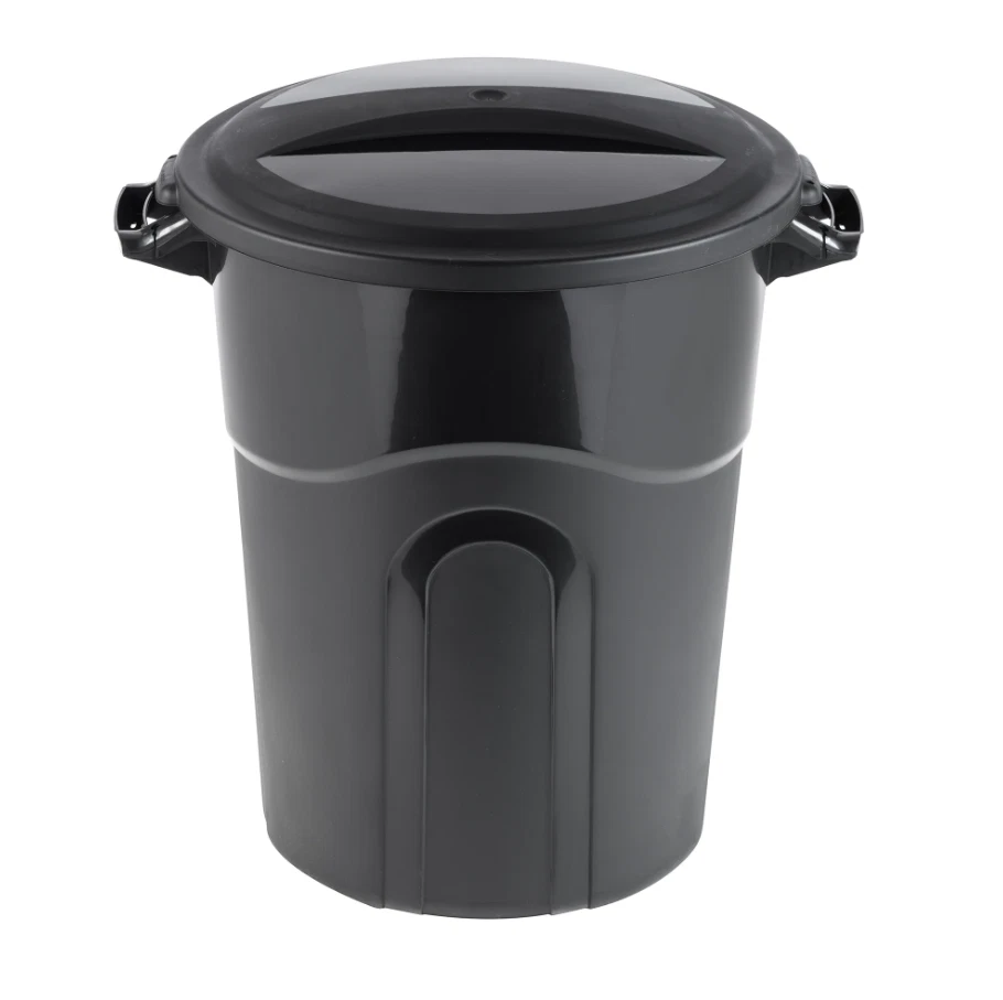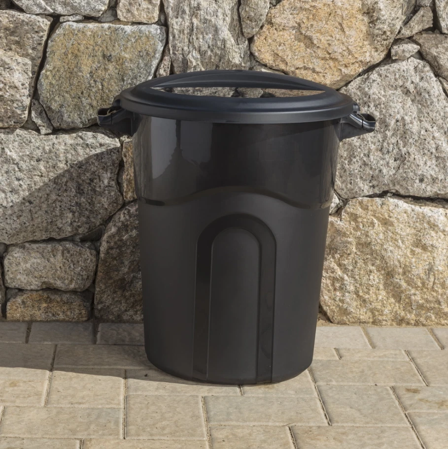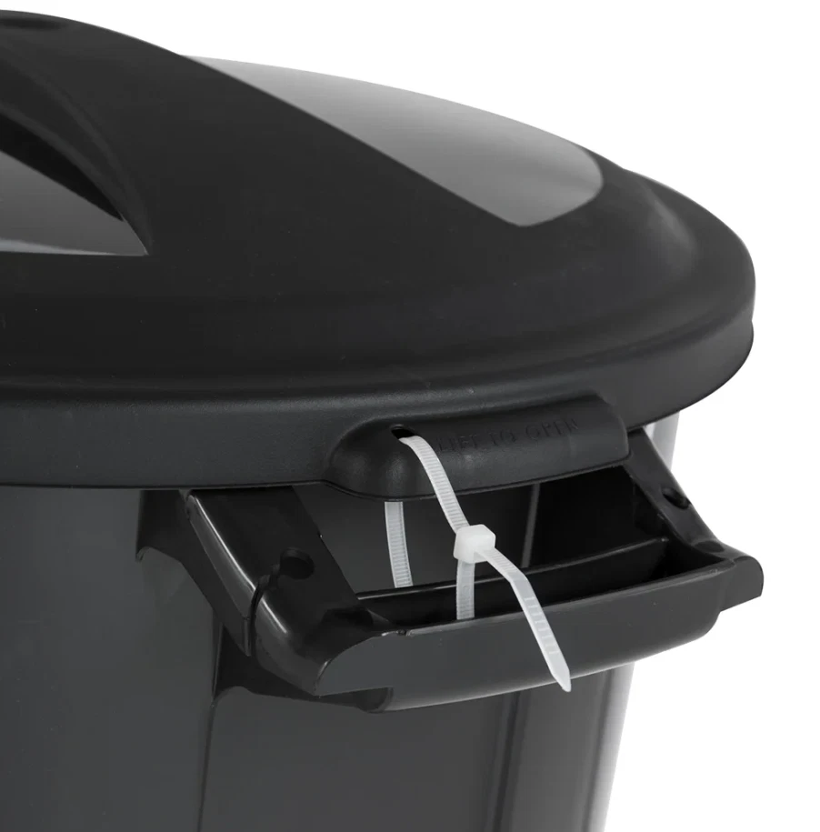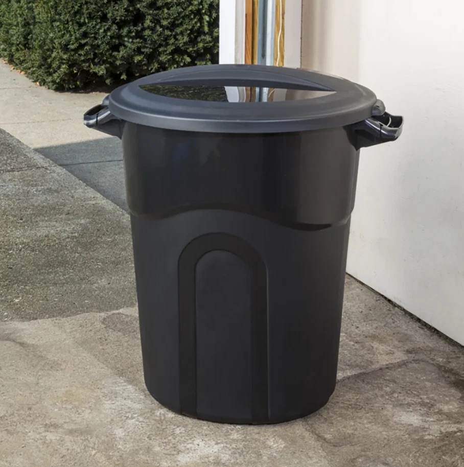 The 20 Gallon Heavy Duty Plastic Garbage Can with included click lock lid keeps your lid securely on the bae . Recommended bag usage size is 30 gallon. This trash can is designed with sturdy pass through handles at the top and a hand groove on the bottom of the container. These features make moving this heavy duty injection molded trash can easier than ever. Attach the included lid with the predrilled holes. The sturdy lid has a click lock, securing it tightly to the container. This waste basket is perfect for the deck, patio, garage, or office. 20 Gallon Heavy Duty Plastic Garbage Can, Included Lid, Black Tether hold for lid Handle groove on bottom Click lock lid Perfect for use Indoor and Outdoor Product Dimensions 22.250 in. L X 20.000 in. W X 25.375 in. H Load capacity 40lbs.