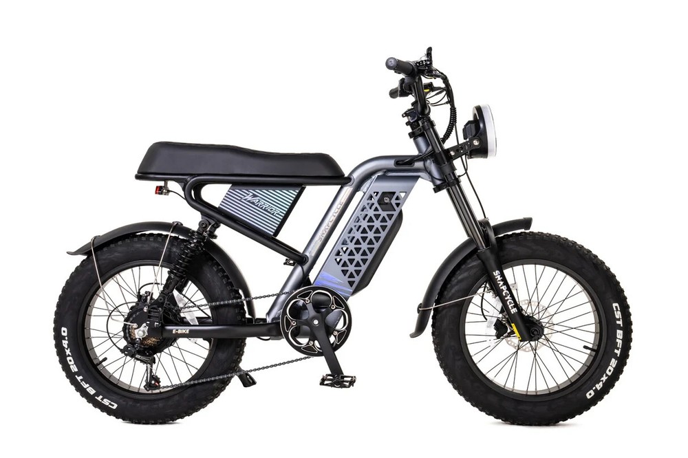 Motor Type: Rear Hub Motor gtin13: Does not apply Color: Gray Wheel Size: 20 in Manufacturer Warranty: 1 Year Maximum Range: Up to 45 mi Maximum Speed: 28 mph Frame Number: ### Features: Front Light, Lithium Ion Battery Battery: 48V 15Ah Voltage: 48 V Number of Speeds: 7 Speed Material: Aluminum Alloy Item Weight: 82 lb UPC: Does not apply Custom-Built: No Brake Type: Disc Brake - Hydraulic Motor Power: 750 W Model: Snapcycle Warrior Frame Size: 20 in Tire Type: Fat Tires Bike Type: E-Mountain Bike Model Year: 2024 Brand: Snapcycle Department: Unisex Adults Suspension Type: Front MPN: Does not apply Charging Time: 5 Hours