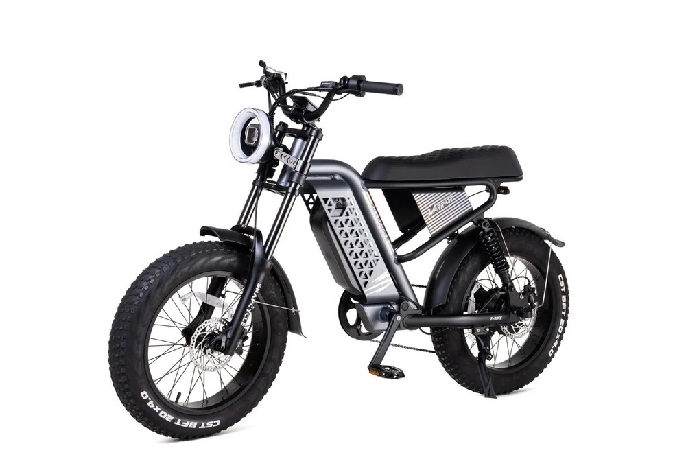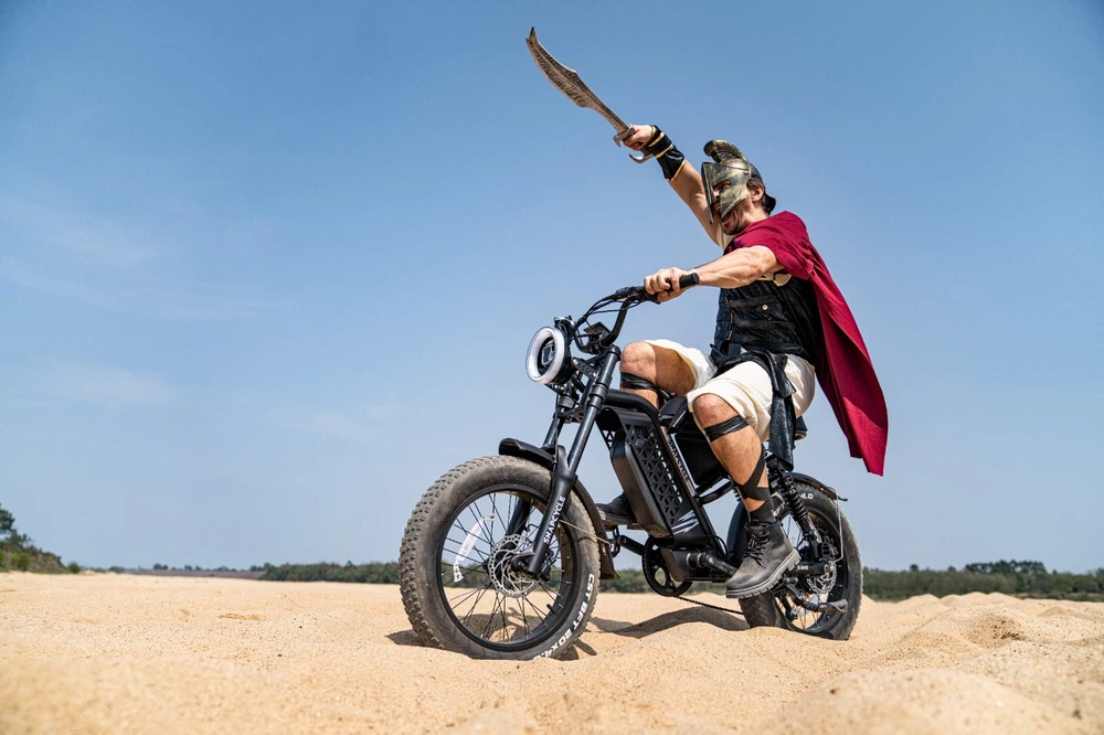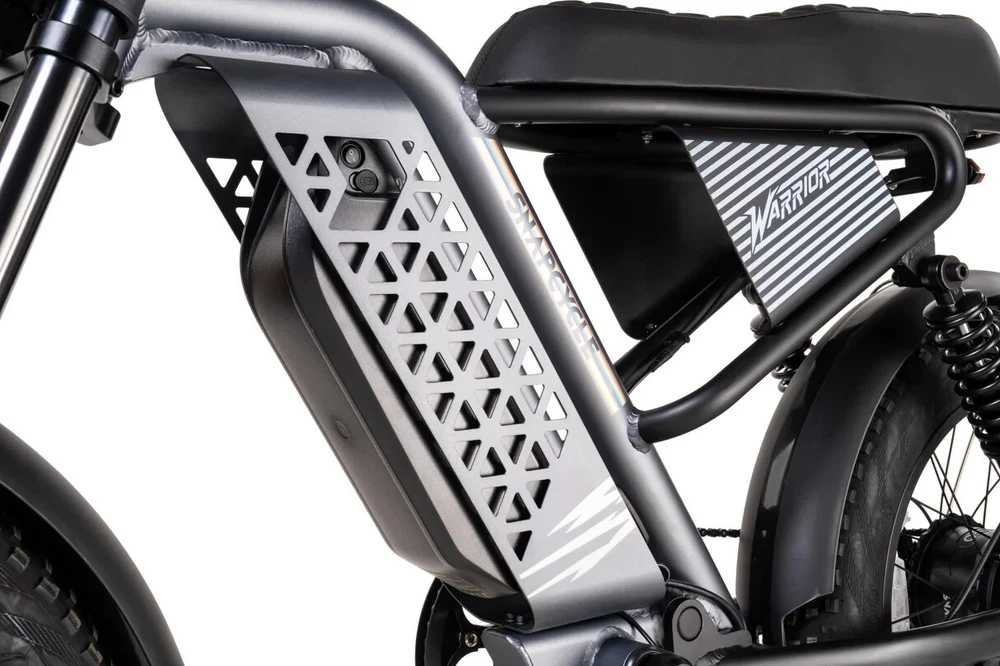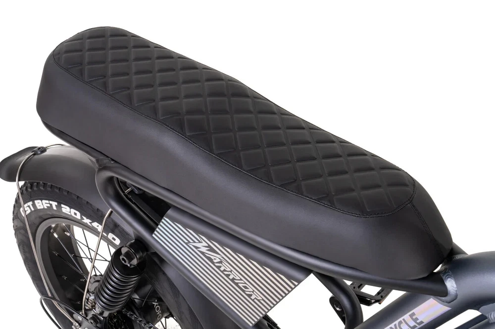 Unique design: Warrior Electric Bicycle boasts a classic motorcycle silhouette enhanced by intricate hollow craftsmanship. · Powerful 750W Motor, Peak 1200W for faster speeds and good range for longer trips. · 48V 15Ah Battery to support long-distance rides up to 45 miles with fewer charges needed. · Front Light with High/Low Beam to enhance night visibility and safety, adapting to different lighting and road conditions. Specification: · Battery - 48V 15Ah EVE lithium battery · Range - 24-45 Miles · Electric Bike Class - Class 2 (configurable to Class 3) · Hub Motor - 48V 750W brushless geared motor · Charging Time - 4-5 Hours · Total Payload Capacity - 330 lbs · Recommended Rider Heights - 4'11''-5'10'' · Charger - US standard 3.0 A smart charger,UL Certified · Controller - 48V/25A 12-Tube · Display - Integrated Color LCD Display · Frame - Aluminum 6061 · Pedal Assist Intelligent - 0-5 level pedal assist (Configurable to 9-level) · Weight - 82 lbs · Speed - Speed is limited to 20 mph/h. Current US Laws define the Class 2 maximum speed at 20 mph using throttle only, and Class 3 maximum speed at 28 mph using pedal assist (not throttle only) What is in the Box: General Info: · Brake Calipers - TEKTRO E-395 · Brake Levers - Aluminum alloy comfort grip levers with motor cutoff switch · Crank Set - 44T, 170mm Aluminum Alloy, Double Sided Plastic Guard · Fender - Full coverage front and rear · Freewheel - Shimano TZ50-7 Freewheel · Grips - Ergonomic, Rubber · Pedals - Aluminum Alloy Platform with Reflector · Saddle - Soft Foam Saddle · Spokes - Stainless Steel, 13 Gauge, Black with Sliver Nipples · Brake Rotors - ZONGLUN 160mm front and rear · Chain - KMC chain with 130 chainlinks · Derailleur - 7-Speed Shimano Tourney · Fork - GTMRK Spring Suspension, 175mm Travel, Lockout and Preload Adjustment · Gearing - 1*7 Speed · Handlebar - PARTNER Spring Suspension, 100mm Travel, Lockout and Preload Adjustment · Kickstand - Heavy-duty aluminum stand · Rims - Aluminum Alloy, 20 inch · Shifter - Shimano SL-TX50-7R · Tire - CST BFT 20''*4.0'' fat tires Discover Design Advantages Explore together the best ebike of the year, suitable for riders of all terrains and all ages. Note: Our products have been certified under UL2849 safety standards. The item is UL 2849 certified with a link to the UL Product iQ