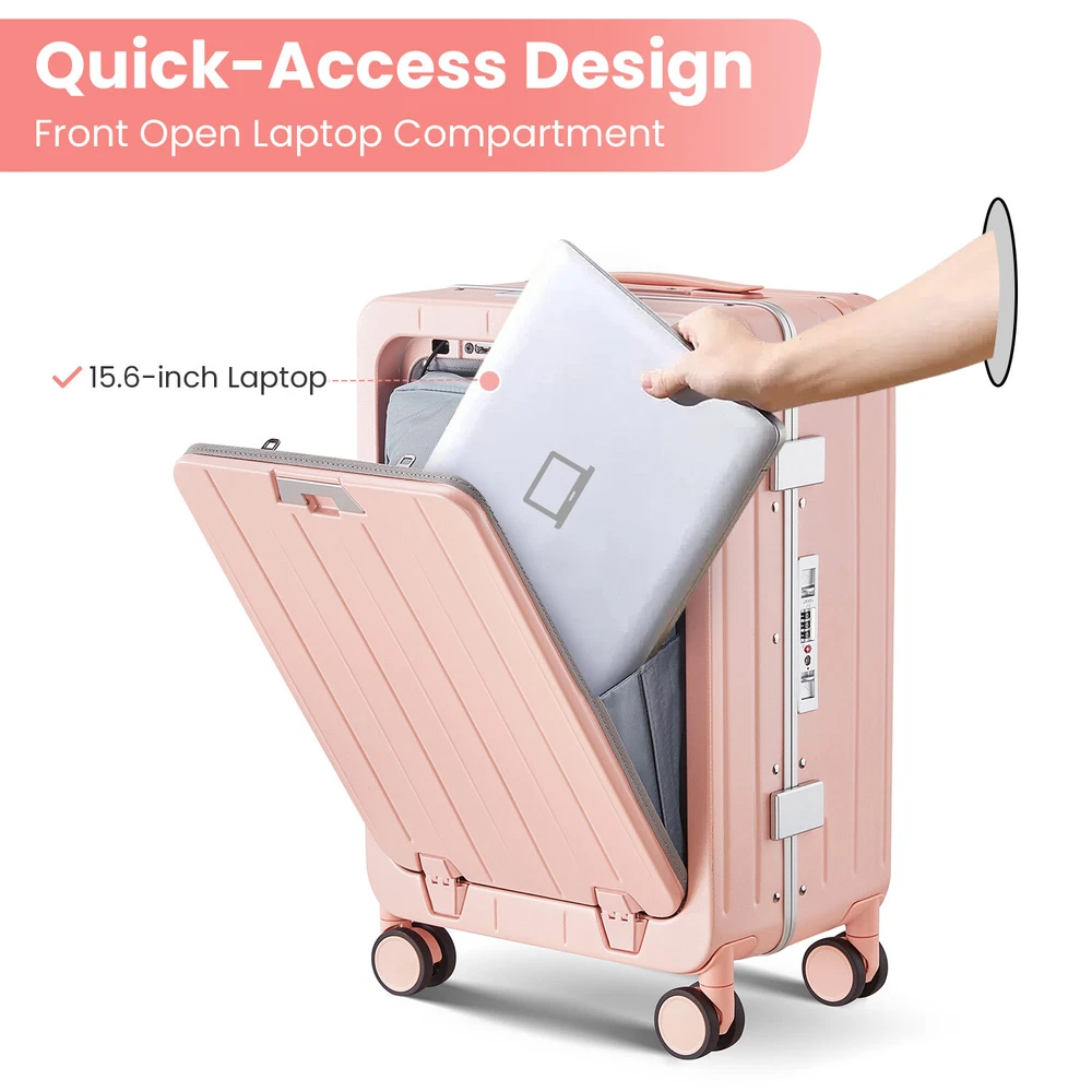 This carry-on luggage set is a game-changer for travel! The sleek aluminum frame and durable PC hard shell make it both stylish and sturdy. The 360° wheels glide effortlessly, and the built-in TSA lock adds peace of mind. The included crossbody and cosmetic bags are super handy—perfect for keeping essentials organized. Love the vibrant pink color—it stands out on the baggage carousel! Highly recommend for business trips or quick getaways.