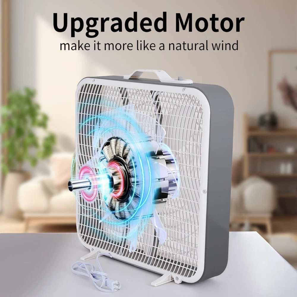 Product Description Built-in Carrying Handle The floor fan comes with a built-in handle, making it easy to carry, and move around. Child-Friendly Design The tiny fence holes avoid children's fingersfrom inserting and getting hurt Wide-angle Air Supply Promotes air circulation, better temperature reduction, and energy savings.