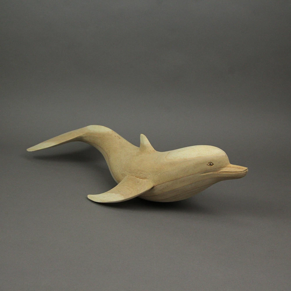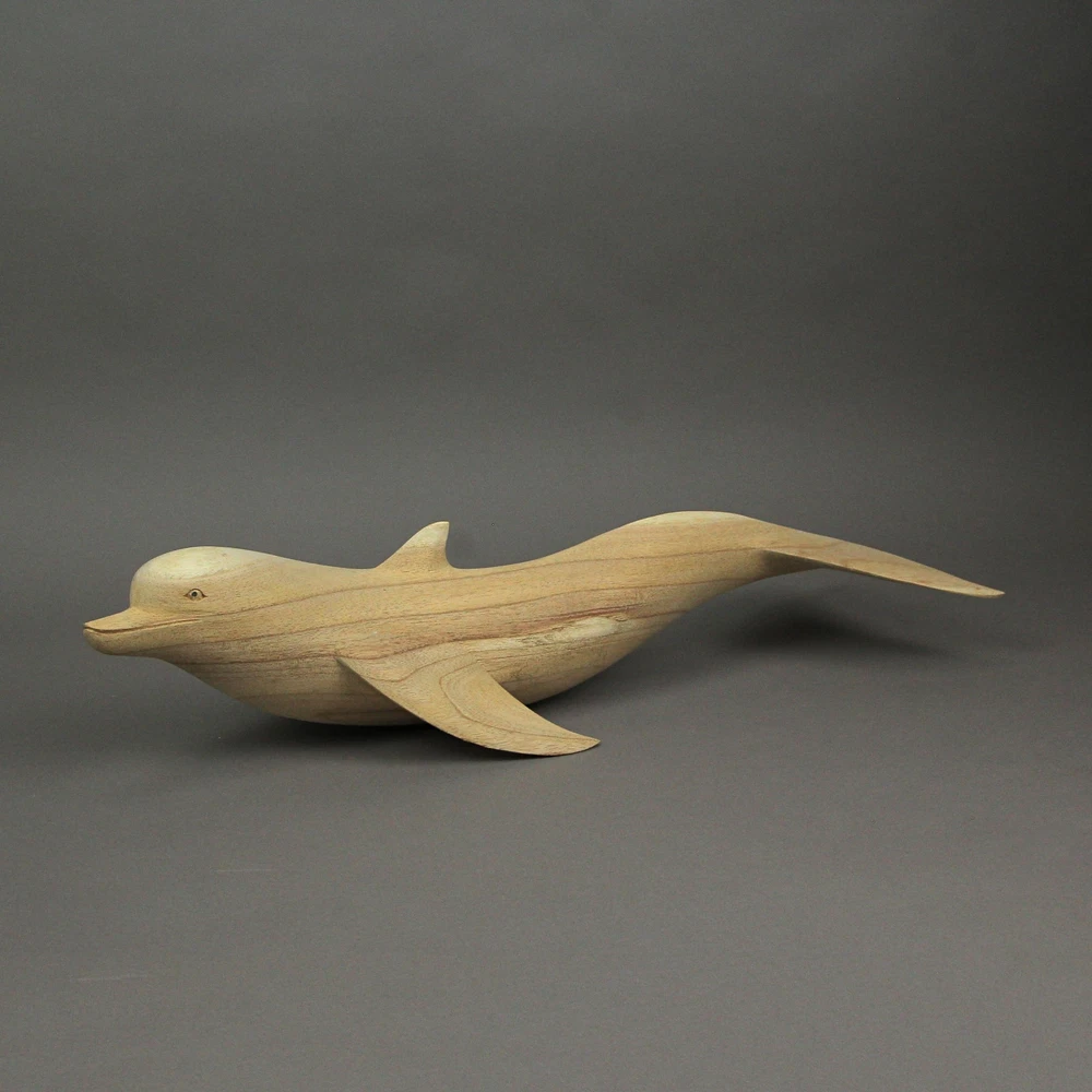 NOTE: DUE TO CHIPPED/BROKEN FINS this item is being sold at a reduced price. Please see last photo for damages/defects. Add some natural nautical charm to your home with this wooden dolphin sculpture. Hand carved from sustainably sourced wood, the natural wood finish compliments almost any decor styles, or can be painted for a DIY personal touch. Measuring 20.25 inch long, 7 inch wide, 4.75 inch high; this makes for a wonderful tabletop accent or centerpiece in your living room, bedroom, bathroom, or patio. A great gift for yourself or ocean loving friends and family. NOTE: Because of their natural wood and hand carved nature, size and color may vary slightly from the example pictured. Our eBay Store About Us Add to Favorite Sellers 20 Inch Hand Carved Dolphin Wood Sculpture Decorative Figurine Beach Home Decor NOTE: DUE TO CHIPPED/BROKEN FINS this item is being sold at a reduced price. Please see last photo for damages/defects. NOTE - DUE TO CHIPPED/BROKEN FINS this item is being sold at a reduced price. Please see last photo for damages/defects. CREATIVELY CRAFTED - Hand Carved From Sustainably Sourced Wood NATURAL FINISH - Natural Wood Finish That Compliments Any Decor Theme NAUTICAL DECOR - Perfect Accent For Coastal And Beach Themed Homes OVERALL SIZE - 20.25 Inch Long, 7 Inch Wide, 4.75 Inch High NOTE: DUE TO CHIPPED/BROKEN FINS this item is being sold at a reduced price. Please see last photo for damages/defects. Add some natural nautical charm to your home with this wooden dolphin sculpture. Hand carved from sustainably sourced wood, the natural wood finish compliments almost any decor styles, or can be painted for a DIY personal touch. Measuring 20.25 inch long, 7 inch wide, 4.75 inch high; this makes for a wonderful tabletop accent or centerpiece in your living room, bedroom, bathroom, or patio. A great gift for yourself or ocean loving friends and family. NOTE: Because of their natural wood and hand carved nature, size and color may vary slightly from the example pictured. Product Details Color Brown Height 4.75 Length 20.25 Weight 1.5 LB