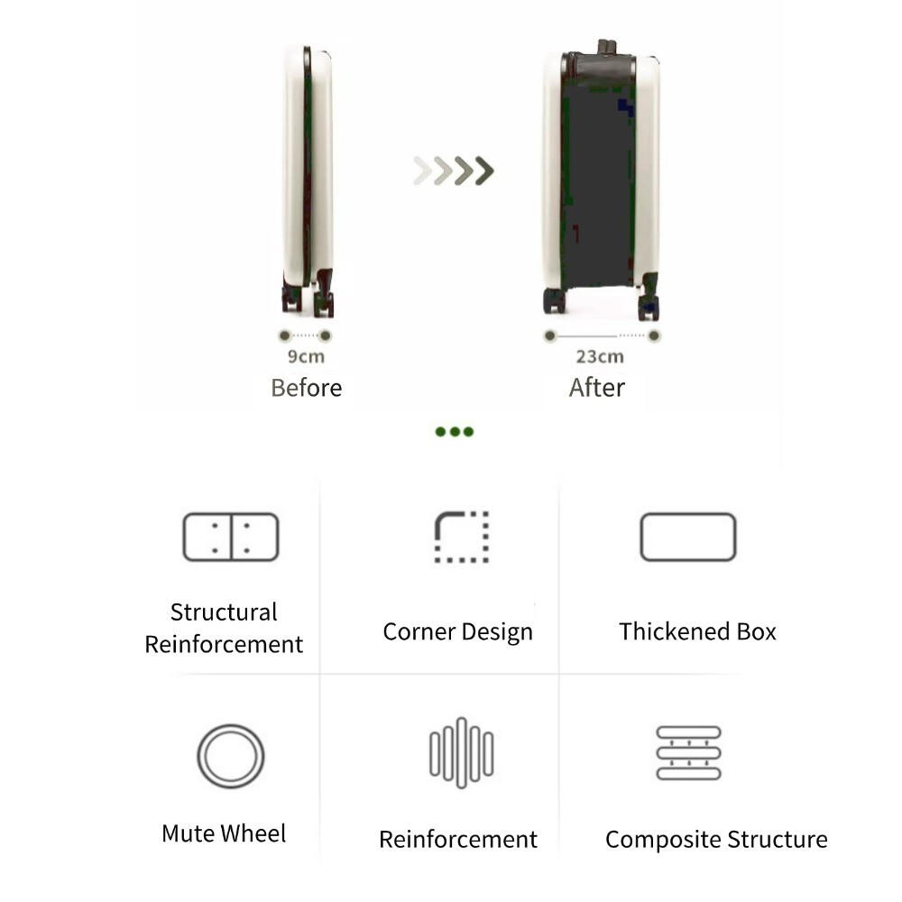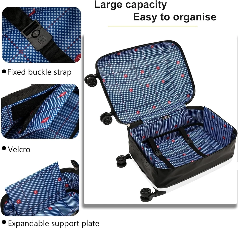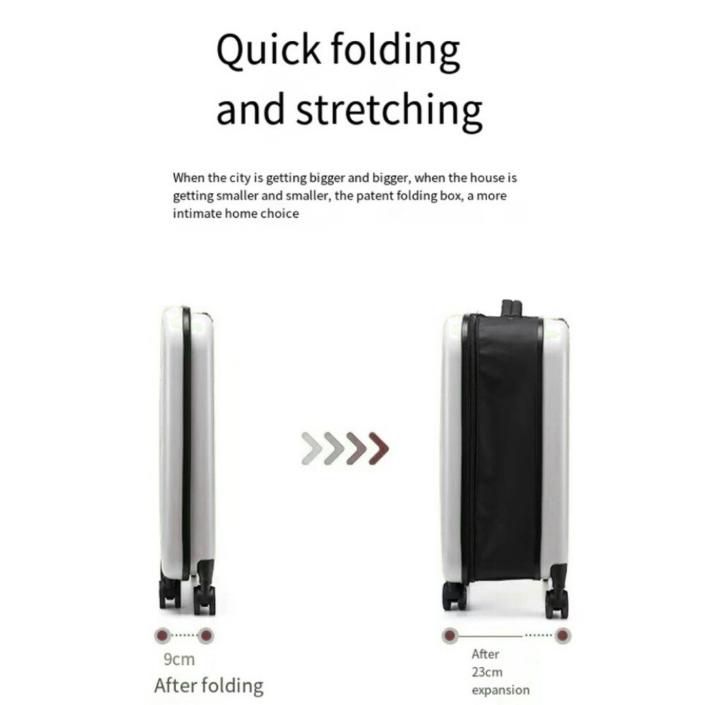 20inch Lightweight Luggage Foldable Suitcase Trolley Carry On Hard Case with Lock Specification: Item: 20inch trolley case Size: 34x23x58cm(13.3''x9''x22.8'') Material:ABS+PC Lining: Oxford cloth Trolley: aluminum alloy Capacity: 45L Color:white Lock:padlocks Closure: Zipper Load bearing: 80kg Foldable: Yes Expandable: Yes Package Size:23''x4''x15'' Gross Weight: 6lbs Rollers: Universal Load bearing: 80kg Telescopic tie rod: 2 sections Material: The outer shell of this case is made of PC material. It is soft, thin, tough, lightweight and drop-resistant. It can quickly return to its original shape under strong pressure. The box body is not easy to deform under pressure and is dust-proof and waterproof. The sides of the case are made of waterproof Oxford fabric, which is sturdy and durable. Size: with a capacity of 45 liters and dimensions of 58 x 34 x 23 cm including wheels, it is still extremely light at 2.75 kg. Features: The adjustable telescopic handle system with push button provides effortless movement while driving. The fully lined interior and multi-purpose organiser pockets make packing clothes easier. 4 wheel design for full 360 degree maneuverability. Appropriate folding method, more comfortable. When folded, the thickness is only 9cm. It can be folded and stowed away to save space. The lock keeps your valuables safe and convenient to pass the security check. Please don't hesitate to contact us if any question!