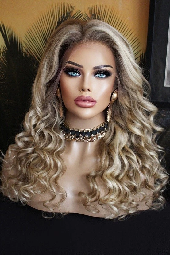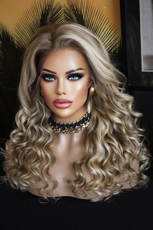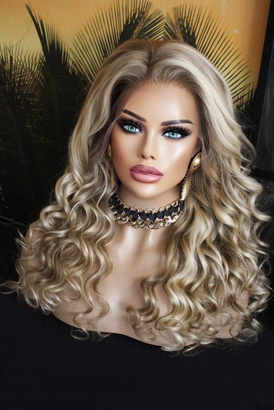 $ 61.6624 Inch HighlightBlonde Wave 100% Human Hair Wig 13x4 Lace Front Wigs