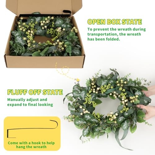 Menu 1. We require immediate payment. 2. We currently accept payment via eBay managed payments only. 3. Once payment is cleared, we will dispatch your shipment within 1-3 business days. Please refer to the "Shipping" tab for more information regarding shipping speed to your destination. 20 Inch Spring Summer Wreath Artificial Eucalyptus Leaves Berries Wreaths for Front Door Farmhouse Door Decorations for Spring Summer Decorations, Party Supplies, Wall, Window, Gifts Product description Package Include: You will receive a box which include a summer eucalyptus wreath and a hook to hang it on the door. With an outer diameter of 20 inches, inner diameter of 11 inches, the wreath may be extruded during transportation, please expand the branches and adjust flower into best shape before you hang it. Quality Material: 100% handmade! Natural grapevine base, this summer wreath uses different berries and eucalyptus leaves as the main points and add the vivid green leaves to match it. Realistic appearance and vibrant colors can fill your home with breath of summer. Summer Atmosp: Summer is coming! Just use this wreath to highlight the holiday atmosp, and it will surely provide your home a feeling of natural and vitality. This wreath is suitable not only for greeting every visitor at the front door but also for creating a strong festive atmosp. Widely Use: This summer wreath is very suitable for party decorations. You can hang it on the front door, wall, indoors, outdoors, window, fireplace, farmhouse, living room, porch or anyw you want. It's also an ideal choice as a gift for your family and friends. [Note] In order to prolong the use, please avoid rain and long time sunlight if used outdoors. Customer Service: Please contact us if you have any dissatisfaction about our product. We will reply within 24 hours! PLEASE MESSAGE US IF YOU HAVE ANY OTHER QUESTIONS, AND MANY THANKS FOR READING ALL OF THIS. Copyright ©#. All Rights Reserved.