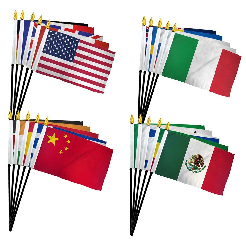 Type:FlagPersonalized:NoCountry/State:United StatesMaterial:100% PolyesterItem Weight:1 lbCare Instructions:Do Not Tumble Dry, Machine Wash, cool iron, Clean with Dampen Cloth, Do Not IronSubject:National FlagStyle:TraditionalColor:MulticolorFeatures:20 pc Set of 4''x6'' Stick Flags, 1 Flag StandBrand:UnbrandedTeam:InternationalTheme:WorldOccasion:Festivals, Parades, Schools, Home Yard DecorCustomized:NoSize:4x6inCountry of Origin:China
