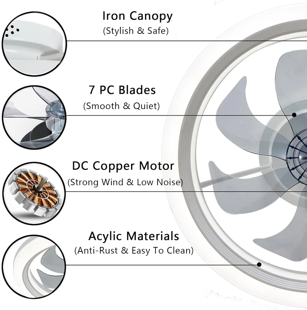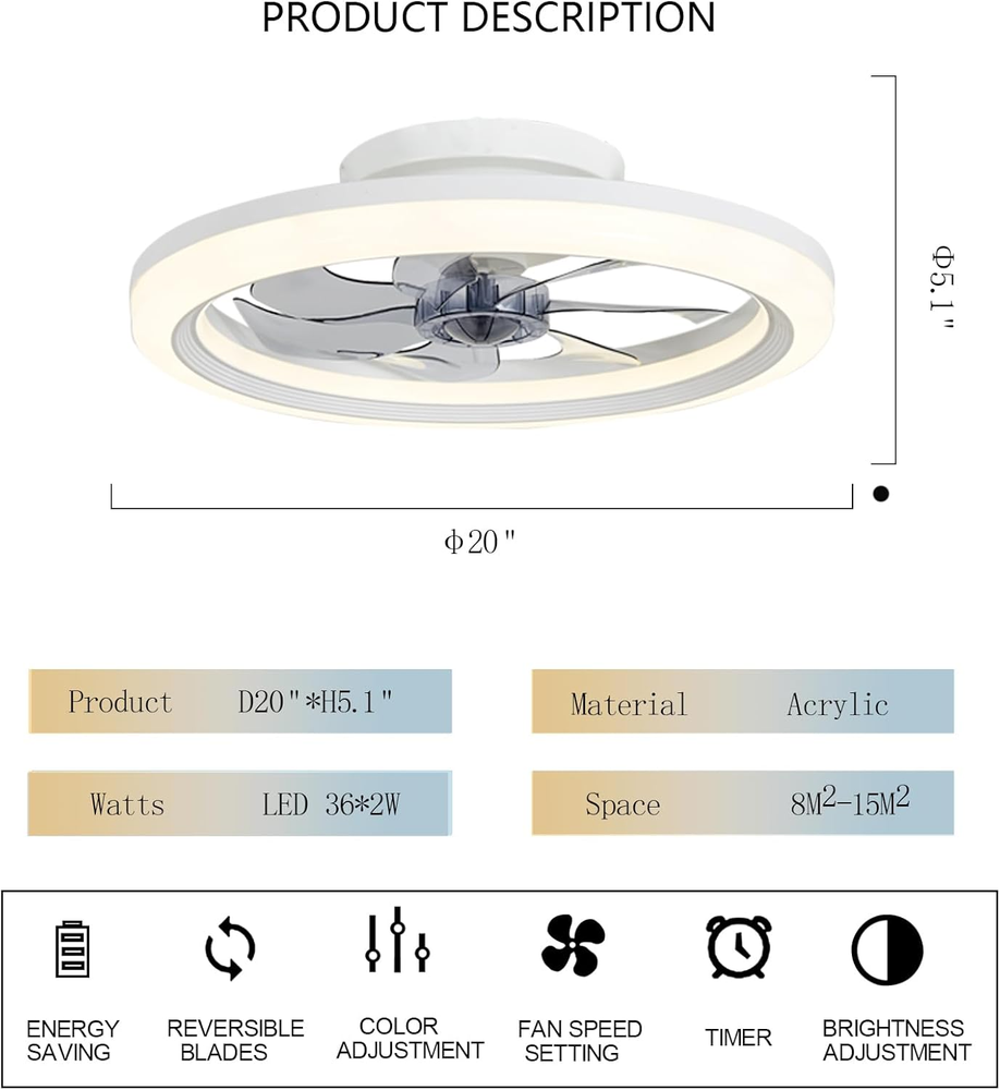 Store New Arrivals Add to Favorite View Feedback Contact 20" Modern Ceiling Fan with Light, 6 Speeds & Dimmable, White Flush Mount for Home Description Item model number 1068 Style Modern Assembly required No Noise Level 35 dB Control Method Remote Theme Modern Specification Met FCC Main Power Connector Type Type A (US Standard) Number of Power Levels 6 Power Source ac_dc Batteries required No Product Dimensions 20"D x 20"W x 5.1"H Efficiency High Efficiency Model Name 1068 Collection Name Indoor Finish Type Painted Mounting Type Ceiling Mount Controller Type App Control Included Components Remote Indoor/Outdoor Usage Indoor Light Type LED Country of Origin China Room Type Home Office Item Weight 6 pounds Blade Length 14 Inches Special Feature Timer Material Iron Number of Speeds 6 Electric fan design Ceiling Fan Color white+grey Form Factor Low profile, flush mount ceiling fan Wattage 72 watts Is Cordless? No Voltage 110 Volts Recommended Uses For Product Air Circulation Blade Material Polycarbonate (PC) Finish types Painted Number of Blades 7 Size 20 inch 2-in-1 Smart Ceiling Fan Design: This flush mount ceiling fan combines adjustable LED light ring with a modern ceiling fan, adding a stylish and creative touch to your indoor space while providing low noise cooling. Multiple Functions: With our low profile ceiling fan, you will enjoy multiple functions. 6 wind speeds + timer function + reversible airflow + memory function + dimmable LED light + app and remote control. Noiseless DC Motor: With high-quality copper motor+7 PC blades, this flush mount ceiling fan with light reduce more energy cost and run more smoothly. Giving you a quiet night while providing strong airflow.It's an ideal dining room,kitchen,kid's room,living room, bedroom ceiling fan selection. Easy Installation: The white flush mount ceiling fan with light comes pre-assembled and securely fastened with screws, making installation easier. The smart ceiling fan also comes with easy-to-understand instructions and installation accessories, making the process hassle-free. Easy to Clean: The small ceiling fan with invisible blades can direct the air to all corners of the room making the air better circulate, and easy to clean. Product Description ABOUT US We offer the best prices around on high quality products. Our E-store includes media such as books, movies, music and games while offering electronics, toys, sporting apparel, clothing, tools, general home, garden items and more. SHIPPING We are always working hard to ensure your package arrives as soon as possible. Please understand that some factors like weather, high postal traffic, and the performance of shipping companies are outside of our control. We offer free shipping to the lower 48 states and ship within 2 business days of payment, usually sooner. We do not accept P.O. Boxes. Please provide a physical address. For shipping outside of the continental USA, we only use eBay's Global Shipping Program.The item is shipped to KY and then sent to the rest of the world. International customers are responsible for all duties and taxes. Continue to check out in order to calculate costs for shipping the item to your country. Messages regarding eBay's Global Shipping Program MUST be directed at eBay EXCLUSIVELY. RETURNS We offer a 30-Day Return Policy on items which you are not completely satisfied with. You have the option for a full-refund or an exchange of the item. No returns are available on items shipped outside of the USA. PAYMENT We accept PayPal. CONTACT US This page content is yet to come Please ad us to your favorite seller and visit again later Thank You CUSTOMER SATISFACTION We try our very best to make sure every customer is completely satisfied. If there's a problem, message us! We're happy to help. WE ACCEPT Copyright © 2021 AutoDS. | All Rights Reserved