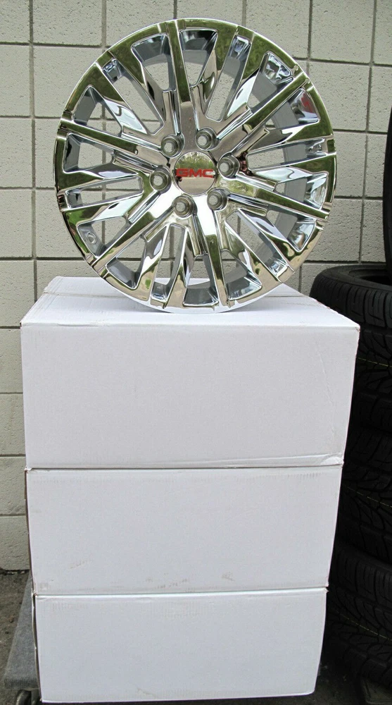 Shipping cost to some of the destinations in the USA may be different due to extra charges by shipping companies, for example city of NY, West coast like California, Washington State and others in that area, some rural delivery areas like the Mountains, Islands, Gated communities. If Extra charges are required, we will contact buyers after we receive orders or Buyers can sent us request for estimated shipping cost. EZBuy Wholesale Customer service available to answer all your questions. Per Ebay Policy our phone number will be available only to buyers after placing order. For any questions please use Ask a question link on the bottom of this page in Questions and answers about this item section. Compatibility provided by Ebay is not properly working and may provide wrong information. See our description for fitment or contact us You are bidding on set of four Brand New GMC Factory Style 20x9, 6 lug Chrome GMC Yukon, Denali, Sierra, Chevrolet Avalanche, Silverado, Suburban, Tahoe wheels rims. These are brand new wheels, never been used. GMC or Chevy center caps included. Decals may ship separately. All chrome GMC and Chevy caps available for $15 ea. TPMS sensors available for $40 ea. Chrome lug nuts available for $55 per 24 lugs. These wheels will fit most Chevy and GMC full size trucks with 6 lug models from 1992 to 2024 years. stk#198C, 20".chrome.896 TO ALL OUR CUSTOMERS: Please check our payment, shipping and return policy and place a bid if you accept it. Send your payment or contact us regarding your payment with in 24 hrs after winning the bid. If payment or information regarding your payment is not received, this item will be relisted or offered to another bidder. All international shipping quote including shipping and insurance. International recipients are responsible for any duty, tax, brokerage fee or any extra charge(s), regarding receiving the item in the recipient's country. We will be glad to assist you with any questions, please contact us on ebay site. For fitment questions and technical support customer service contact via ebay messages EZBUY247 is working for You 7 days a week. Our over 20 years of experience in wheel and tire business will help to meet Your satisfaction, we stand behind our products. BID WITH CONFIDENCE Customer service Problems with an order? If something is wrong with an order, we certainly do want to help you. Please read the following for more information on how to proceed. Shipping Problems: Please inspect your package immediately prior to accepting delivery. Damages and evidence of tampering on the outer packaging must be noted on the delivery receipt of the driver. Shipping Damage: Damages must be reported and filed with carrier immediately. Orders lost in transit must be reported to us immediately. We are not liable for carrier damages. A claim must be filed with Carrier Company to facilitate an exchange. If you received a damaged product, please report it to us within 48 hours from date of receipt. No exceptions. Wrong Items: If you received a wrong item, this should be reported within 2 business days from date of receipt. We shall provide you with a mailing label to ship back the wrong part. The replacement will only be sent once the wrong item has been received and confirmed by us. On Jul-31-06 at 05:16:37 PDT, seller added the following information: After purchasing, pay instantly with your credit card through PayPal! Shipping Instructions Large items like wheels/tires sets shipped via Freight, lift gate service is not included to a shipping cost. Items can be unloaded from the truck individually or lift gate service can be ordered per customer expense.
