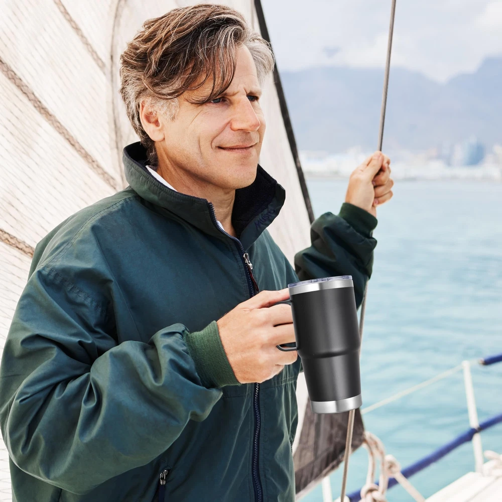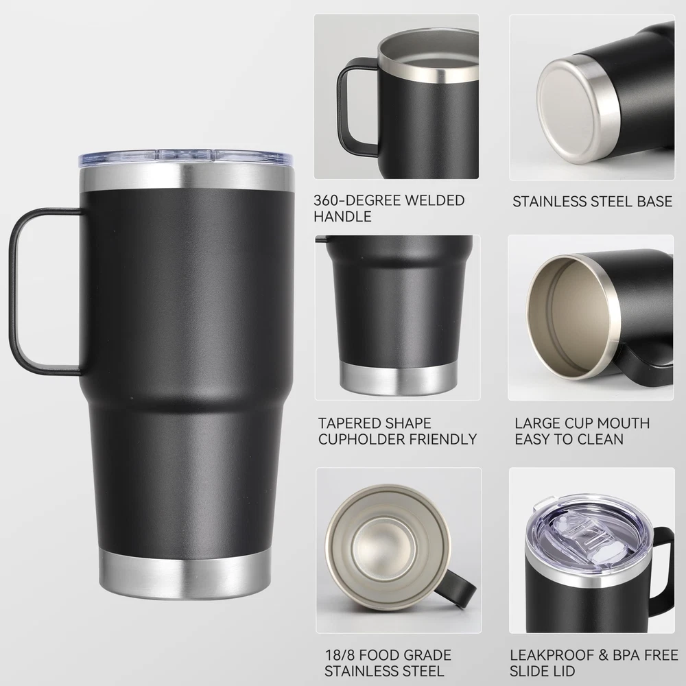 High Quality And Easy To Hold: The 20 oz travel coffee mug is made of thickened 304 18/8 stainless steel. Electro polished inside make you every sip of water pure and sweet. Matte powder coating outside is sweatproof. Equipped with a sturdy 360°welded handle let you easy to hold the coffee travel tumbler Hot And Cold Insulated Tumbler: 20oz stainless steel tumbler is double walled and vacuum insulated. It's cool to touch when filling with hot water also keeps your favorite beverage hot for 6 hours and cold for 12 hours. 20oz Capacity is just fine for daily use Multiple Color Options: The 20 oz tumbler with handle is crafted with stylish color powder coating, gives you multiple color options. Also make the tumbler advanced matte texture, delicate and sweat proof. Let you have a good mood when you use the water cup every time Cupholder Friendly: The travel coffee tumbler 20oz is designed with a tapered shape which fits most car cup holders, Diameter 3.38" large cup mouth makes it easier for you to clean the coffee mug Best Gift Idea: Each 20oz coffee travel mug comes with 1 * slide lid and 1 * reusable plastic straw. We also provide tumblers bulk option. The classic coffee tumbler is a stylish and practical gift for your friends, families, colleagues on Christmas, birthday, Valentine's Day, Mother's Day, Father's Day
