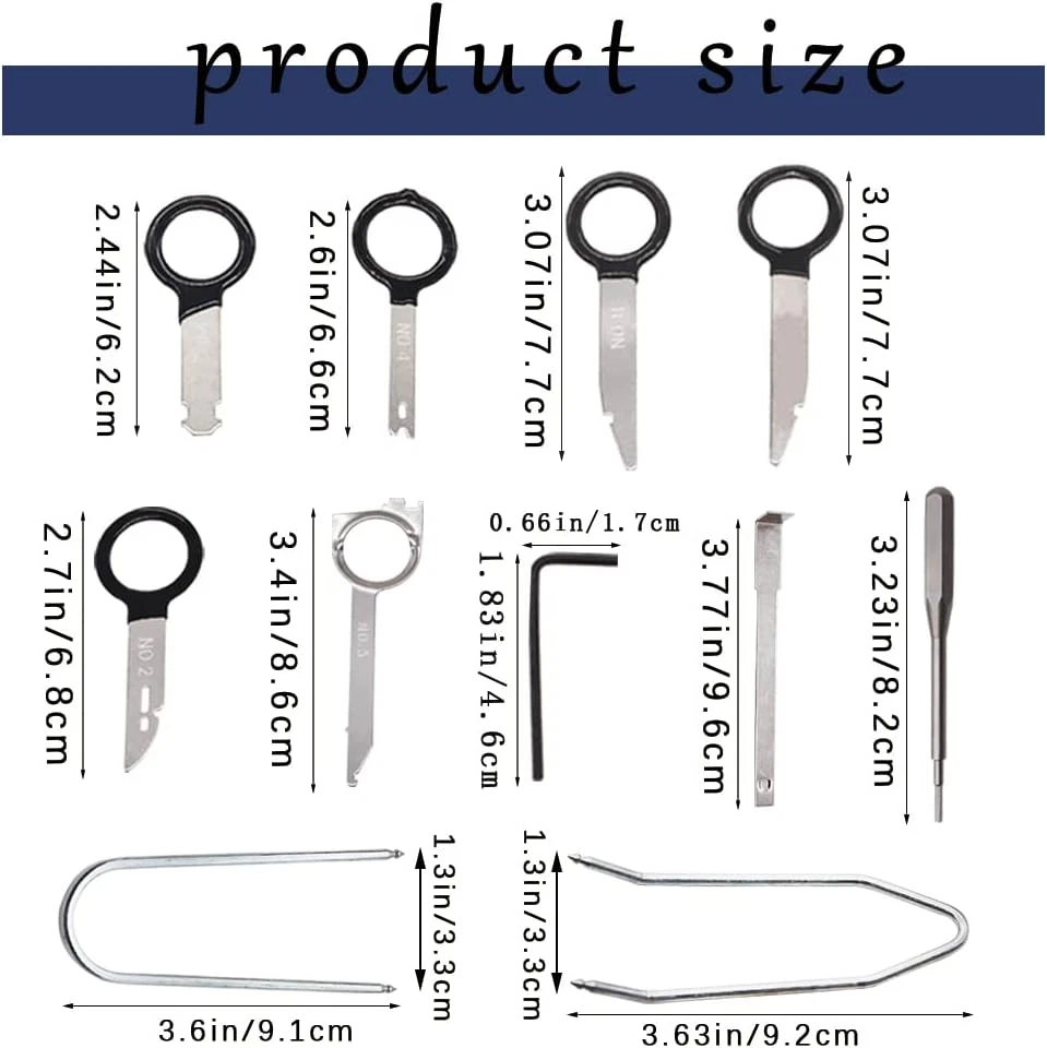 Store New Arrivals Add to Favorite View Feedback Contact 20 PCS Blue Radio Remover Key Kit for Car Radio Stereo CD Player Remover Description Item model number P-003-B Color Blue-20pcs Manufacturer Part Number P-003-B Item Weight 9.1 ounces Package Information Can Vehicle Service Type Car Package Dimensions 13.03 x 4.37 x 0.55 inches Material: Made of stainless steel, it is very durable, corrosion-resistant, and will not bend or break Uses: Professional disassembly tools and equipment, which can greatly reduce the damage to instruments, and is very suitable for home and business, widely used in audio shops, car maintenance,etc. 20PCS have storage cloth bag, very convenient and easy to carry, tools can be put into the storage bag and put into the car after use. The radio disassembling tool key kit is designed for disassembling the audio and CD player, which will not damage the instrument panel and will be very stable and safe when disassembling. The quality of our products is very high. If you have any problems with our products, please in time and we will deal with them at the first time. Product Description Professional Disassembly Tools The radio disassembling tool key kit is designed for disassembling the audio and CD player, which will not damage the instrument panel and will be very stable and safe when disassembling. Uses: Professional disassembly tools and equipment, which can greatly reduce the damage to instruments, and is very suitable for home and business, widely used in audio shops, car maintenance,etc. ABOUT US We offer the best prices around on high quality products. Our E-store includes media such as books, movies, music and games while offering electronics, toys, sporting apparel, clothing, tools, general home, garden items and more. SHIPPING We are always working hard to ensure your package arrives as soon as possible. Please understand that some factors like weather, high postal traffic, and the performance of shipping companies are outside of our control. We offer free shipping to the lower 48 states and ship within 2 business days of payment, usually sooner. We do not accept P.O. Boxes. Please provide a physical address. For shipping outside of the continental USA, we only use eBay's Global Shipping Program.The item is shipped to KY and then sent to the rest of the world. International customers are responsible for all duties and taxes. Continue to check out in order to calculate costs for shipping the item to your country. Messages regarding eBay's Global Shipping Program MUST be directed at eBay EXCLUSIVELY. RETURNS We offer a 30-Day Return Policy on items which you are not completely satisfied with. You have the option for a full-refund or an exchange of the item. No returns are available on items shipped outside of the USA. PAYMENT We accept PayPal. CONTACT US This page content is yet to come Please ad us to your favorite seller and visit again later Thank You CUSTOMER SATISFACTION We try our very best to make sure every customer is completely satisfied. If there's a problem, message us! We're happy to help. WE ACCEPT Copyright © 2021 AutoDS. | All Rights Reserved