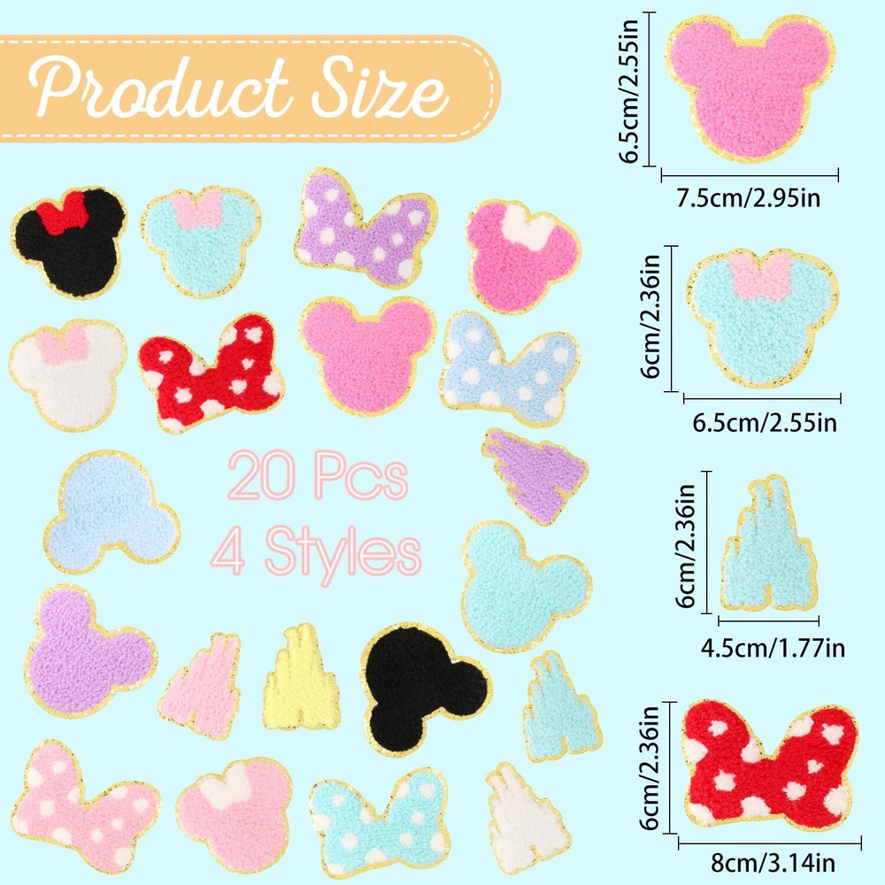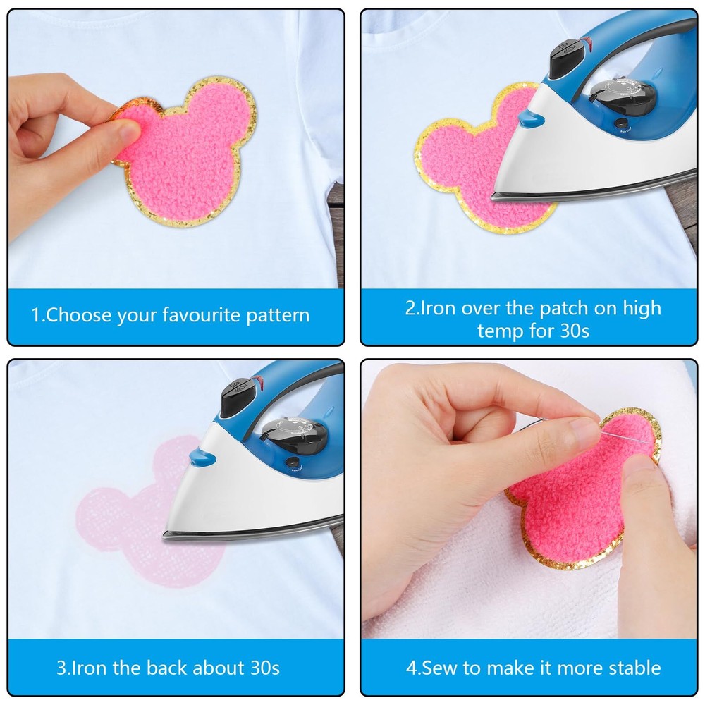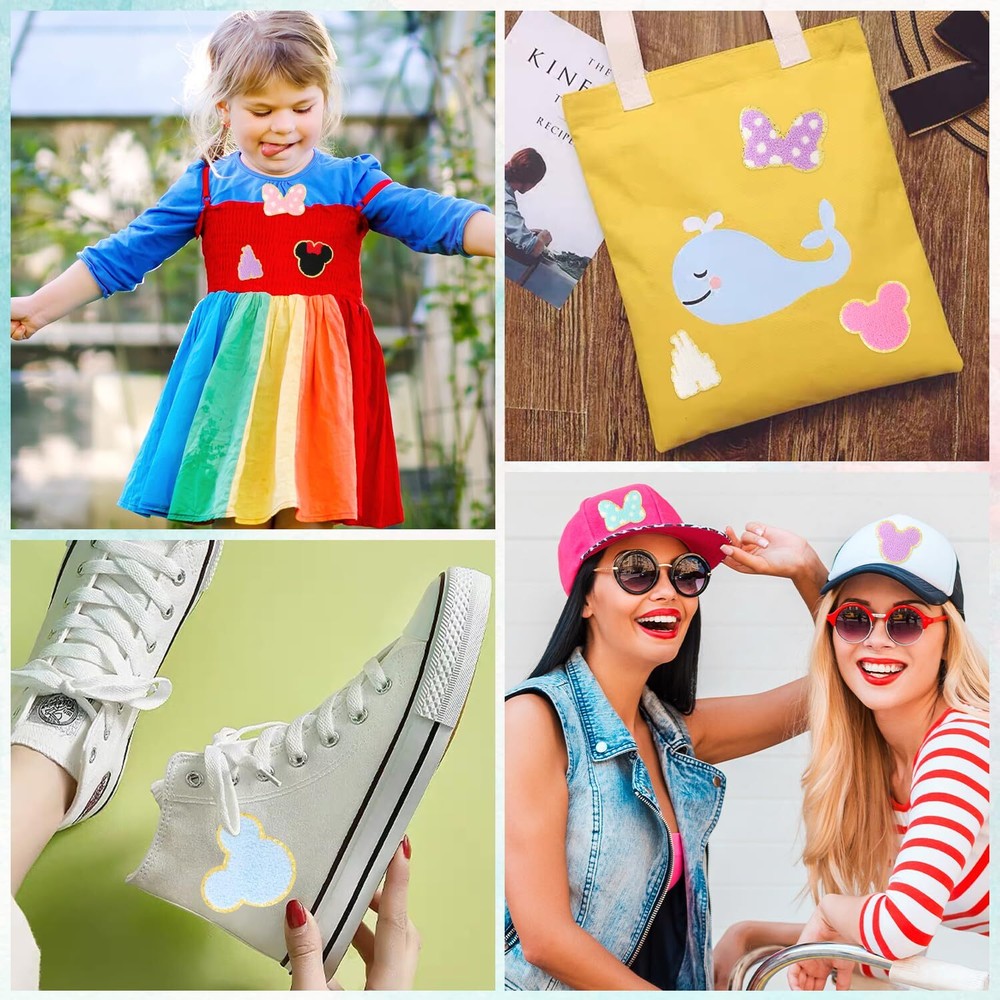 Package Include : 20 pcs color chenille iron on patches comes with 4 designs.Adds a super cute and ever appealing old school vibes to any clothing that seems to be too plain on its own. Lovely for both and adults! Quality Material : The embroidered head patch of chenille fabric is made of chenille material, with Hot-melt adhesive on the back, which is soft and durable, easy to sew, not easy to tear, not easy to fade, suitable for a variety of fabrics. All soldering iron patch sizes are 2.3 × 2.6 inches, with a bow size of 2.3 × 3.2 inches. Classic Design : 10 pcs patches with 5 color + 5 pcs bowknot emroidered patches with 5 color + 5 pcs castle emroidered patches with 5 color. Easy to Apply : Adjust the temperature of the iron to the cotton and linen position, and press the patches vigorously from the front for 10-20 seconds to fix it in place. Then turn the clothes upside down and iron them from the back for about 30 seconds, pressing them vigorously to ensure that the adhesive melts. Fun Projects : easy, suitable for anyone familiar with household irons, and can also use a hot press. Sufficient quantity in case you need some practice. You can experience the fun of DIY.