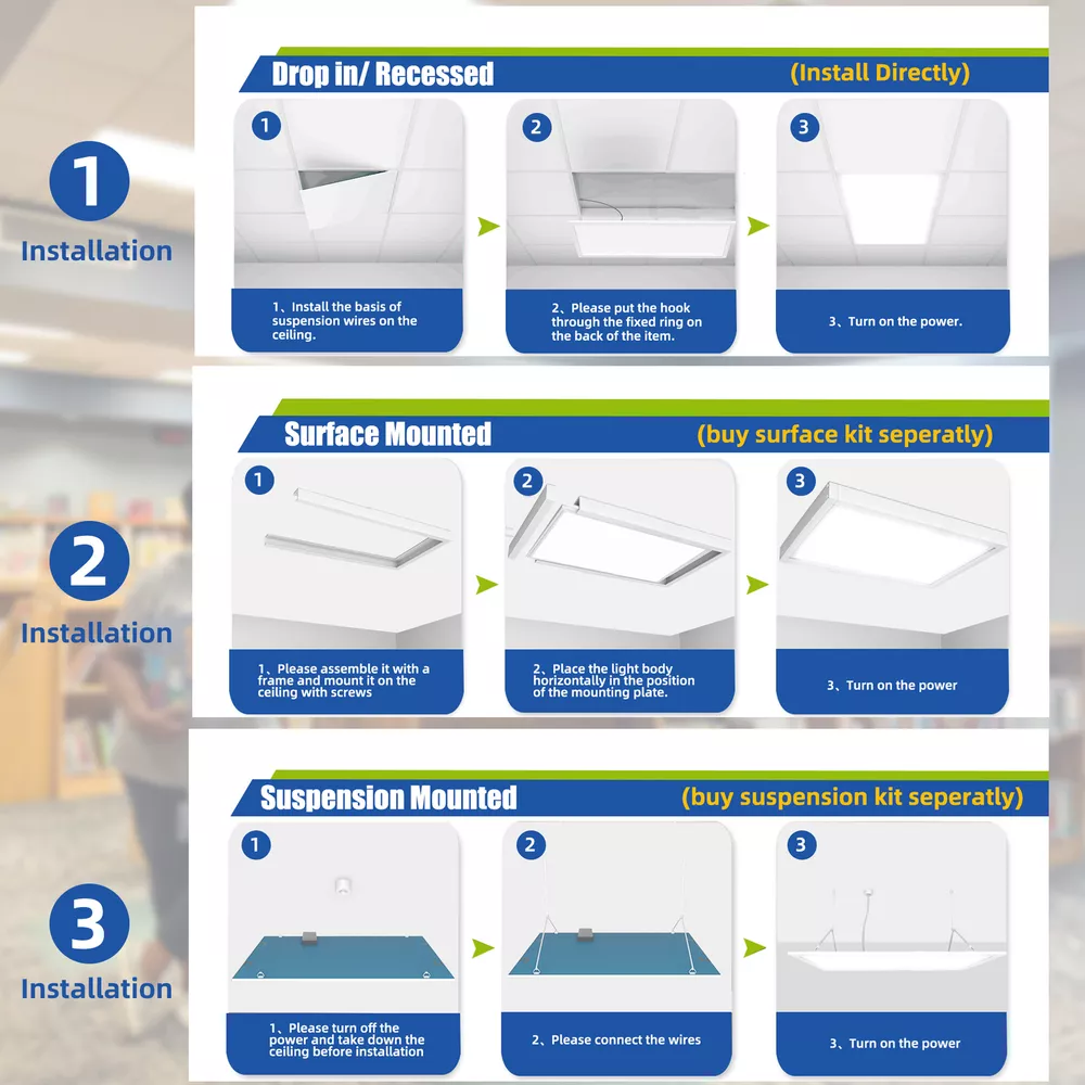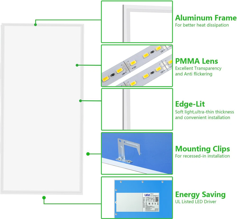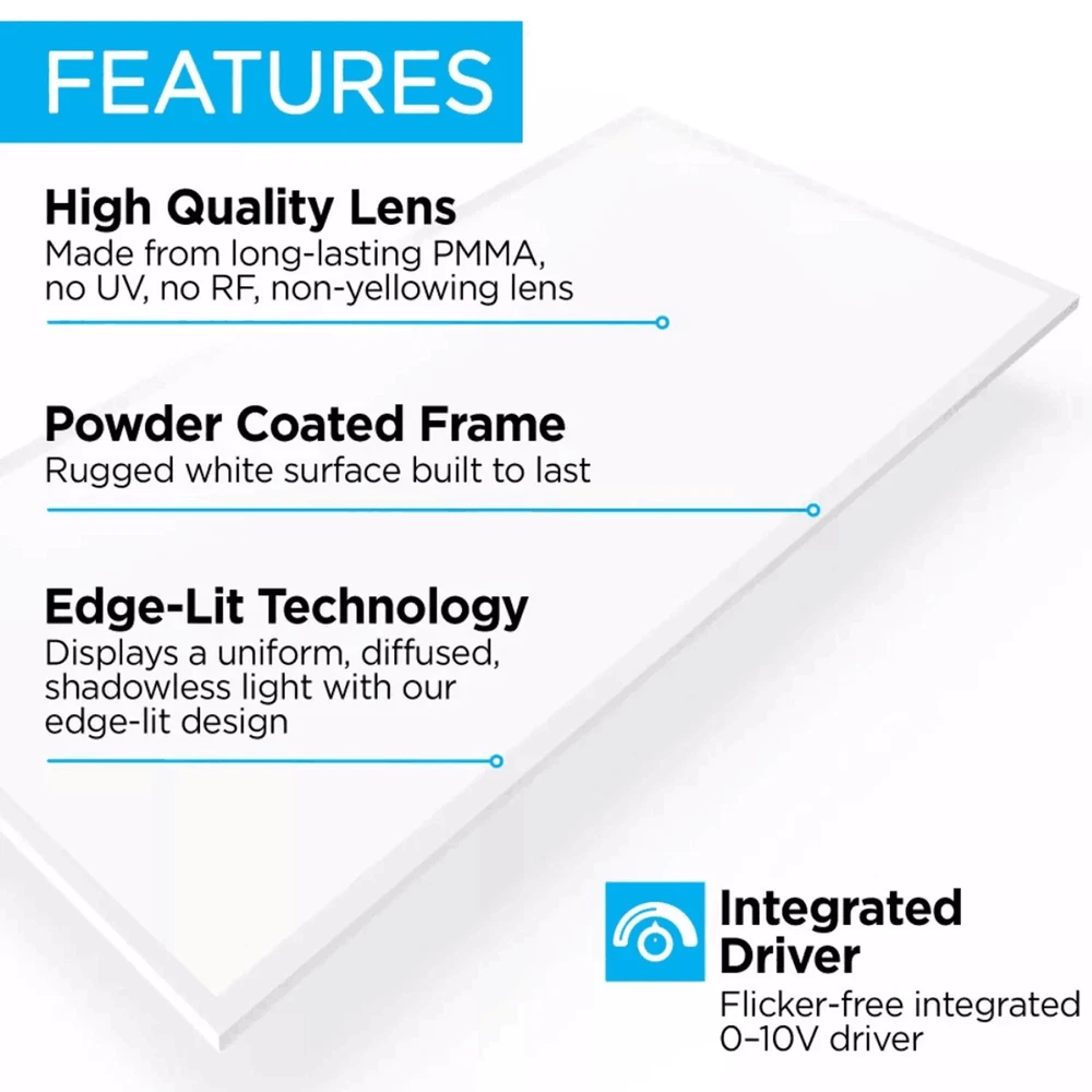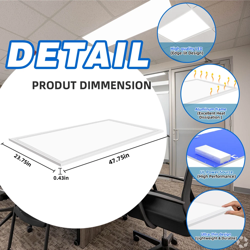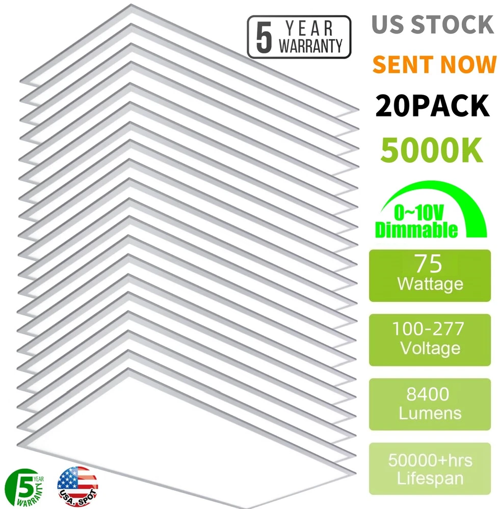 20 Pack 2x4 FT 75W LED Flat Panel Troffer Light,5000K Drop Ceiling Office Lights 20 Pack 2x4 FT 75W LED Flat Panel Troffer Light,5000K Drop Ceiling Office Lights Same day send from GA/CA/TX warehouse. More than 5000pcs stock in local warheouse,welcome to inquire best price for bulks. Factory Price!!! Specifications: • Input Voltage: 110-277V AC 50/60Hz • Power Consumption: 75W • Light Colour: COOL White 5000K White Trim • Brightness: 8400 LUMENS • Rated Lifespan: 50000 Hours • Power Factor: >0.9 • Material: PMMA And Aluminium Alloy • Beam Angle: 120º • Certification: CE, RoHS • Operating Temperature: -10ºC - +40ºC • 5 Years Manufacturer Warranty • LED PANEL DRIVER IS INCLUDED Product Features of 2x4 Troffer Light Fixture ETL listed The ETL listed ensures that the product has been tested for safety and performance ,ensuring that it meets safety and quality standards for use in commercial and residential settings. High Brightness LED Chips Ensuring bright and clear illumination. High-brightness LED panel that provides an even, bright, soft, natural light. NO Flicker and Eye Protection . CRI 80+ CRI 80 provides a higher level of color accuracy and vibrancy compared to lower CRI ratings. This means that colors appear more vivid and true to life , making it ideal for applications where color accuracy is critical. Aluminum Frame Aluminum housing is made of high-quality aluminum material that is durable, lightweight. Additionally, it helps to dissipate heat generated by the panel light. Good Quality&ETL Listed --- With a color temperature of 5000K and a lumen of 8400 lumens, powerful and efficient light-smoothing optics provide superior light and energy year after year.The panel illuminates immediately and there is no flicker,hum or black dot throughout the life of the luminaire.Our panel lights have ETL Listed certification.our size of 23.75''*47.75'' panel light features a recessed edge-lit design, ETL listed for safe and reliable operation. How Much Will You Save? Low Heat --- These edge-lit LED panel lights run cool,helping to keep the air conditioner low while providing 50% lumens compared to traditional fluorescent tubes. LED Drop Ceiling Light 0-10V Dimmable 2x4 Recessed Edge-Lit Troffer Fixture 0%-100% Smooth Dimming Multi-Light Control With the capability to control up to 10 lights simultaneously, this 2x4 LED flat panel light offers the convenience of centralized light control in multiple areas. Long Lifespan --- Designed for use at 110-277VAC,with a rugged aluminum frame and white finish,this LED panel light has a design life five times longer than a fluorescent panel. Great Replace Fluorescent Light in Drop Ceilings 2x4 LED Drop Ceiling Light Fixture Easy Installation: 2X4 LED troffer adopts an ultra-thin design, a thickness of 0.43 inches, you can quickly install it by yourself. Three mounting options -recessed in/surface mounted/suspended - to suit your different needs. (Suspension and surface mount kits need to be purchased separately). Work from 110-277V AC. Warranty&Service --- We offer a three-year warranty and good after-sales service except intentionally damaged.if you have any questions about our products,please contact us in time. Wide Application Payment Delivery details Return About us Feedback Payment Paypal only accepted Payment Instructions - You will be notified with an email about your purchase with the payment information. For Buy It Now item, an - immediate paymentis required (best offer items excluded). For Auction items, Please pay within 7 days, or eBay will open unpaid case for it. For order cancellation, please inform us within 7 days. Delivery details US warehouse,3-5 working days delivery. Germany warehouse,2-3 working days delivery. Australia warehouse,3-5 working days delivery. Should be ship from our factory in China if order from other country.4-5 working days delivery of effective shipping way with UPS,Fedex,DHL and USPS ect We do not accept P.O. BOXES - PLEASE PROVIDE A PHYSICAL ADDRESS Return 30-days return policy. Please contact us if have any question with your order , we accept 30days return and 24/7 customer service. About us High quality products,Excellent after sale service, Fast shipping and Save more. All product based on high power.We never stop doing improvement on our products and testing the functions. Safety Matters--High quality materials, Heatproof Tube, NO risk to catch fire. Adopting isolated power supply, Safe & easy to maintain and keeps long life span,good quality with affordable price Warranty & Customer Service-One year warranty, 30 days return. US/UK/DE warehouse and repair center are available. warranty is guaranteed. I am sure you will happy with our high quality and reasonable price products! Feedback 1.We reply on our reputation and customer satisfaction to succeed. Therefore,your feedback is extremely important to us.Please leave good feedback to us if you are satisfied with our goods and service. 2.We care about valued customers,and will always do our best to help you. 3.Please give us an opportunity to reserve any problem.We understand the concerns and frustrations you may have,and will do our best to solve the issues. 4.Please email us before leaving any negative feedback or opening any dispute on the site.We will help you solve the problem.