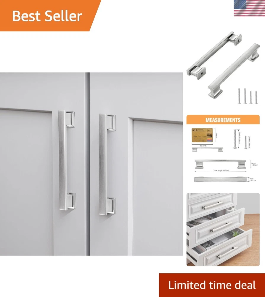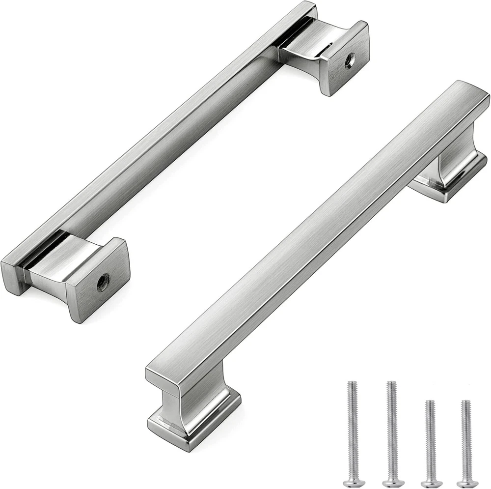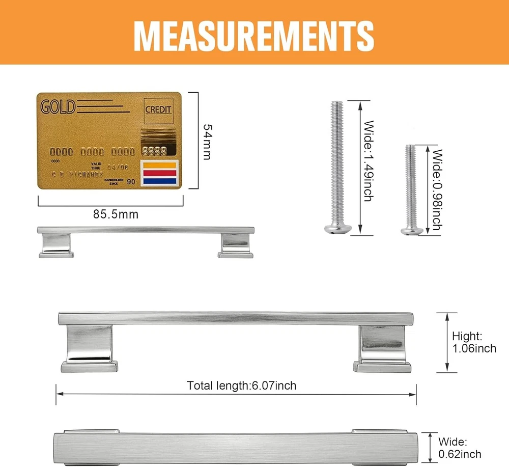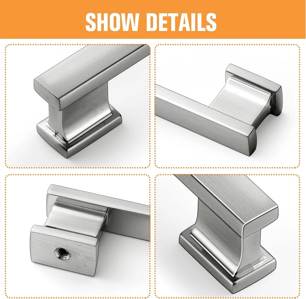 20 Pack Brushed Nickel Cabinet Pulls,5 Inch128mm Kitchen Cabinet Handles, Drawer Pulls Handles for Kitchen Cabinets Hardware Cupboard Closet Bathroom Dresser, Solid Zinc Alloy 【High Quality Kitchen Cabinet Handles】Made of solid zinc alloy, durable, delicate touch, no fingerprints, the square cabinet pulls make cabinet hardware a part of your home decoration. 【Simple Appearance】Simple rectangular style, brushed nickel cabinet handles are widely compatible with different styles of cabinet hardware, closets, drawer pulls, dressers, making your furniture look product new. 【Cabinet Handle Measurement】Hole Center: 5Inch (128mm); Overall Length: 6Inch (154mm); Width (13mm); Height: (28mm);Individually packaged can effectively prevent bumps and scratches. 【Package Includes】20 x Brushed Nickel Cabinet Pulls,20 x (4*25mm)Screws, 20 x (4*38mm)Strews,which range for kinds of door thicknes. 【 After-Sale Service】 focus on quality and after-sales service, if you have any questions, please feel free to contact me, we promise to solve it until you are satisfied.