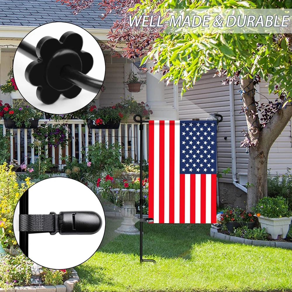 ★Professional Garden Flag Clips Design:The Tiger Clips and Rubber Stoppers for garden flags are specially set for the garden flag holders, garden flags clip stand stoppers can be adjusted in size, adapted to different sizes of garden flag stand. This set could Effectively prevent garden flags from being blown away.Effectively prevent the garden flags from blowing off and work properly in different weather. ★Durable And Easy To Install Garden Flag Rubber Stoppers:The black flower shaped rubber Stopper is about 1.26 Inch diameter, and inner hole diameter of black flower shaped rubber Stopper is about 0.24 Inch with good elasticity to snug fit for 0.2 - 0.28 inch diameter standard garden flag stand,around of inner hole is thickened to 0.24 inches, Durable solid and stretchable stoppers,Fit for most garden flag pole. ★Tiger Clips For Small Flags:The Tiger Clips are great to hold flag in place so it doesn't roll up around the top of the flag pole when it is windy out too.Garden flag clips keeps your flag in place so you can enjoy seeing it and not always having to adjust it. ★Package:This set Rubber Stoppers and tiger clips for garden flag holder include 10 Tiger Clips and 10 Rubber Stoppers. Guaranteed to last for a long time!Great idea to keep flags from flying off the stand in different weather conditions.Perfect flag retainers! ★ Enjoy Our Service: When you buy Garden Flag Stand's Accessories in , if you have any further questions,please don't hesitate conta ct us by "Ask a question",we will follow up with you as soon as possible!