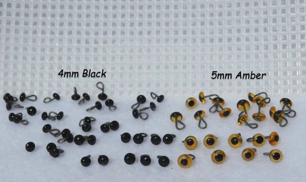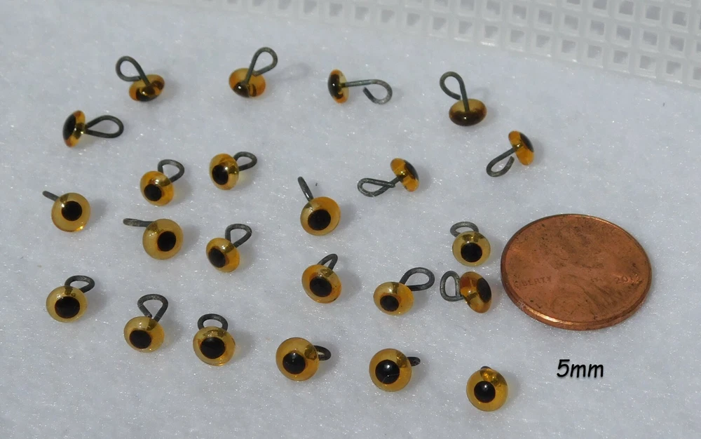 20 Pair Glass Eyes On Wire BENT INTO LOOPS 3mm or 4mm or 5mm For Sculpture, Carving, Polymer Clay, Needle felting, Arts & Crafts ON SALE because the loop is not embedded on both ends. One wire is embedded in the glass and bent with needle nose pliars into a loop. ON SALE while they last. See multiple photos of the eyes and the wire that has been bent into a loop. This Sale is for: 20 PAIRS of Glass Eyes On Wire BENT INTO A LOOP Choose Size 3mm or 4mm or 5mm in available Colors. Dimensions of Glass Eyes: 3mm (approx. 1/8 inch or 0.118 inch) Diameter 4mm (approx. 3/16 inch or 0.158 inch) Diameter 5mm (approx. 3/16 inch or 0.197 inch) Diameter Many Sizes, Colors AND Styles of Glass and Plastic Eyes, Noses, and Joints are available in GlassEyesOnLine eBAY Store Click on Links Below to Find Exactly What You Need Plastic Safety Eyes Glass and Plastic Doll Eyes Fishing Lure Eyes Glass Eyes On Wire Glass Eyes with Wire Loops Insertion Tools and Accessories Joints Noses On Sale YES, we combine orders for cheaper shipping. Foreign Taxes and / or Custom Duties are Not Included in International Shipping. Thank You for viewing this listing. You are invited to visit my eBay Store often for a large selection of Eyes, Noses, and Joints available for all your arts & craft projects.