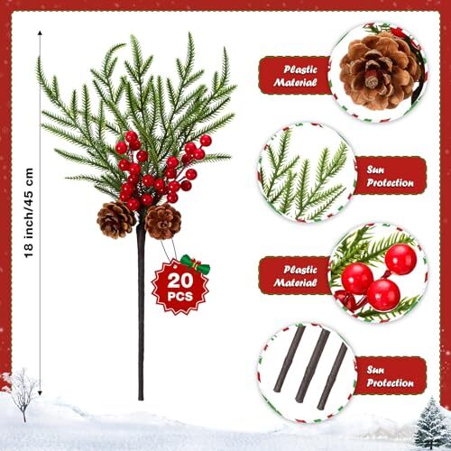 Return Policy Fast Delivery Trusted seller 20 Pcs Christmas Artificial Norfolk Pine with Cone and Berry, 17 Inches Artificial Greenery Norfolk Pine Stems Long Xmas Faux Pine Stem for Crafts Christmas Tree DIY Garland Holiday Wreath Product Description Complete Holiday Set: you will receive 20 pcs of norfolk pine branches with red berries and pine cones, each approximately 18 inches/45 cm long; The ample quantity is suitable for crafting delightful Christmas wreaths, charming garlands, and various DIY projects Crafted with Excellence: these Christmas norfolk pine branches are meticulously made of PE material, mimicking the natural green beauty of real pine branches; They are exceptionally realistic and visually appealing Waterproof and Durable: these artificial Christmas Norfolk Pine branches boast significant waterproof properties; Whether in a cozy living room or an outdoor patio, these resilient branches withstand rain and sunlight, ensuring durability and reusability for many Christmases to come Lifelike Festive Design: featuring a Norfolk Pine style, these artificial branches add a festive touch to your home with their realistic appearance; Suitable for Thanksgiving, Christmas, winter, New Year, parties, birthdays, family gatherings, and anniversaries, they fulfill your decorative aesthetic needs by enhancing the Christmas and winter ambiance Versatile Decoration: ideal for indoor and outdoor Christmas decor, these branches with red berries and pine cones complement bedroom decor, Christmas parties, Christmas village scenes, Christmas table settings, farmhouse decor, winter decorations, or Christmas crafts; They add a rich Christmas festive atmosp and are suitable for tables, desks, windows, living rooms, mantels, home decor, offices, cafes, and shops Shipping Returns Payment Shipping Shipping is FREE to all addresses other than APO/PO boxes in the lower 48 states. All our stock ships from US-based warehouses. Shipped via USPS or UPS (depending on location and package weight) Unless stated otherwise, all orders will ship within 24-72 hours of your payment being processed. Check our feedback to see the great reviews of FAST shipping we offer. Returns Seller does not accept returns Payment We currently accept payment via eBay managed payments only. Once payment is cleared, we will dispatch your shipment within 1-3 business days. Please refer to the "Shipping" tab for more information regarding shipping speed to your destination.