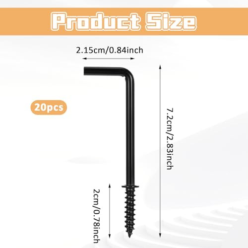 Return Policy Fast Delivery Trusted seller 20 Pcs 1 Shape Screw Hooks 2 Inch L Shape Hooks 7 Shape Right Angle Medal Hooks Wall Hooks L Hooks for Hanging Right Angle Hooks Metal Screw in Hooks for Indoor Outdoor Hanging (Black) Product Description 【Large Size】2-inch L-shaped hook, the hook length is relatively long, you can hang multiple items. 【Reliable Material】 The L-shaped hook is made of stainless steel, which is corrosion-resistant and rust-proof, smooth and burr-free, and will not scratch your hands or items. The stylish black appearance adds charm and perfectly blends into most home decoration styles. 【Easy to Install】The metal hook can be easily screwed into wood, walls, and ceilings. You can pre-drill a small guide hole first, and then tighten it by hand or use tools. 【Keep Tidy】The screw-in hook can keep small items or jewelry neat and organized, no longer worrying about tangled necklaces or looking for small items. 【Wide Application】The black screw-in hook is suitable for kitchens, living rooms, bathrooms, gardens, garages, cabinets, porches, fences, etc., to meet your daily hanging needs at home. Shipping Returns Payment Shipping Shipping is FREE to all addresses other than APO/PO boxes in the lower 48 states. All our stock ships from US-based warehouses. Shipped via USPS or UPS (depending on location and package weight) Unless stated otherwise, all orders will ship within 24-72 hours of your payment being processed. Check our feedback to see the great reviews of FAST shipping we offer. Returns Seller does not accept returns Payment We currently accept payment via eBay managed payments only. Once payment is cleared, we will dispatch your shipment within 1-3 business days. Please refer to the "Shipping" tab for more information regarding shipping speed to your destination.