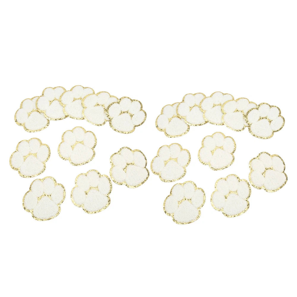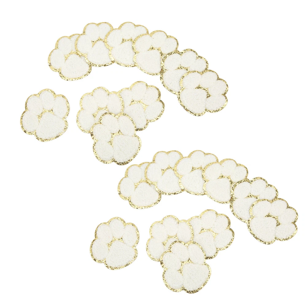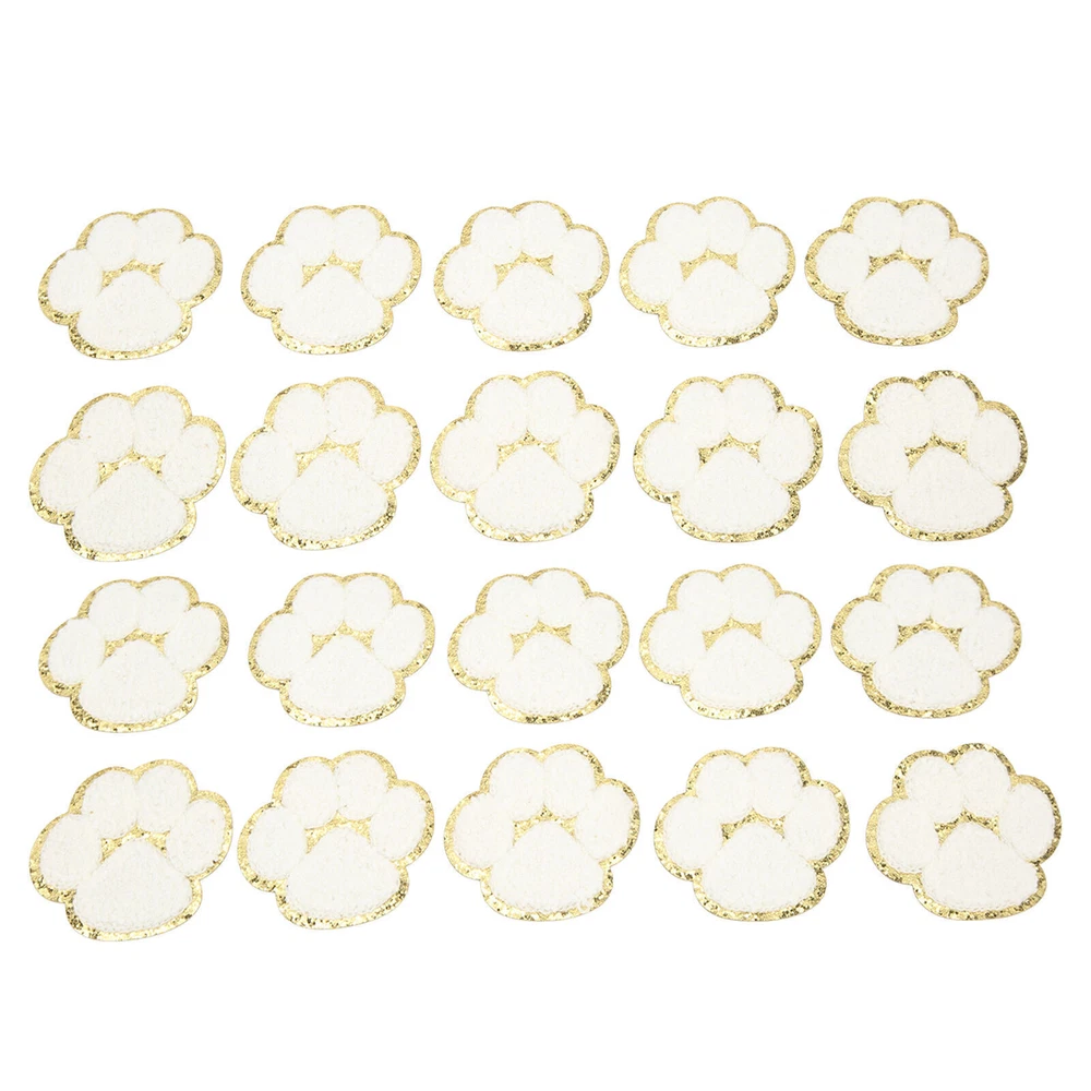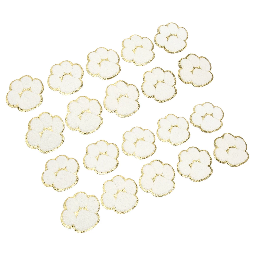 20 Pcs Cat Paw Iron On Patches Fashion White Cat Paws Sewing Embroidered Patches