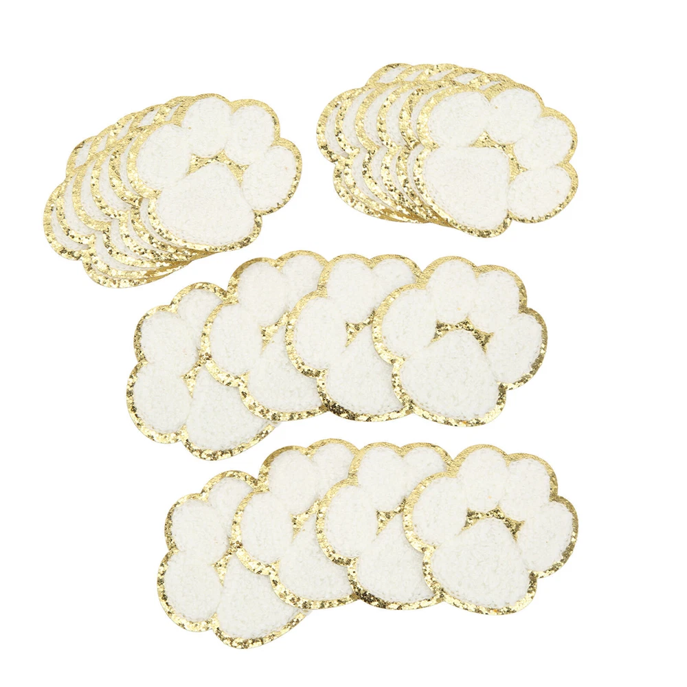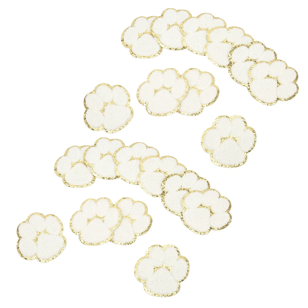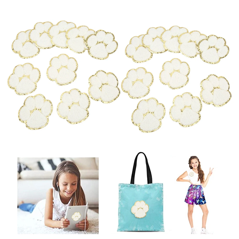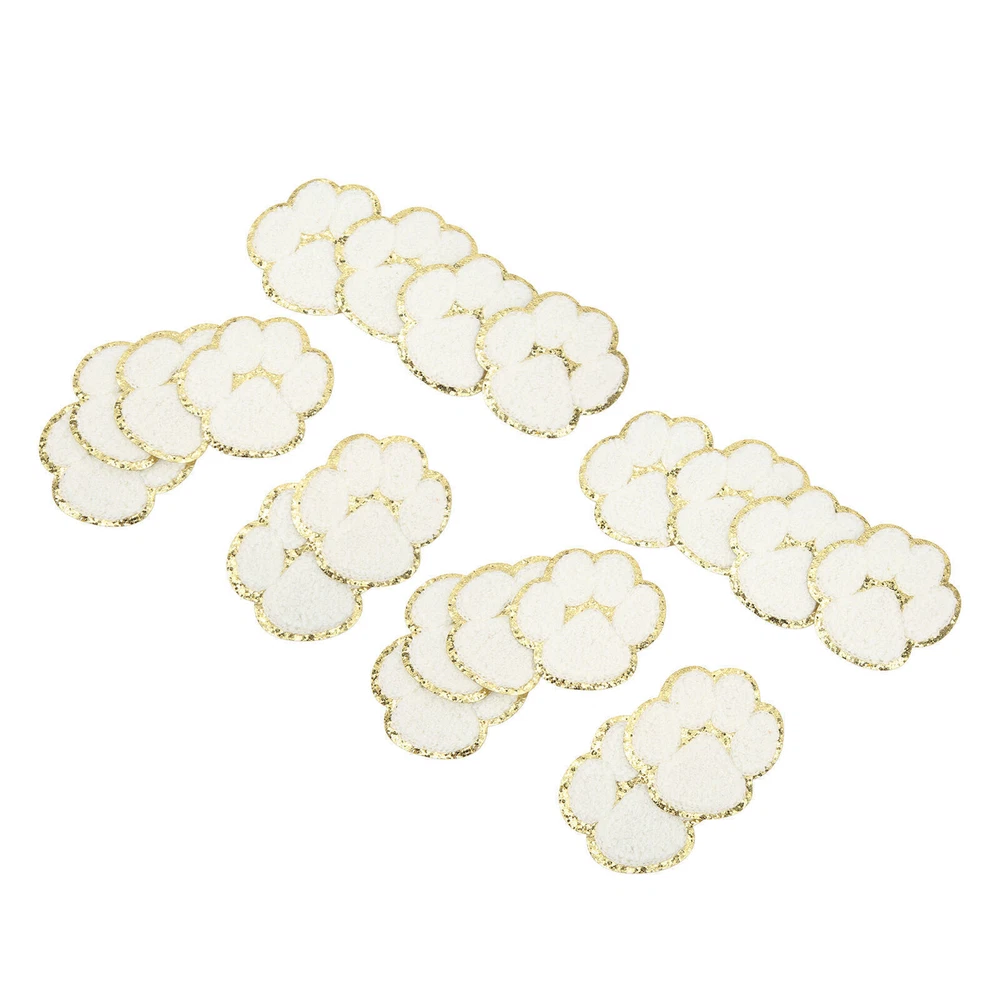 20 Pcs Cat Paw Iron On Patches Fashion White Cat Paws Sewing Embroidered Patches