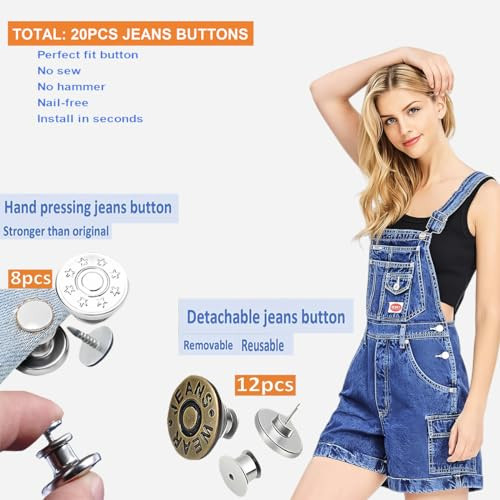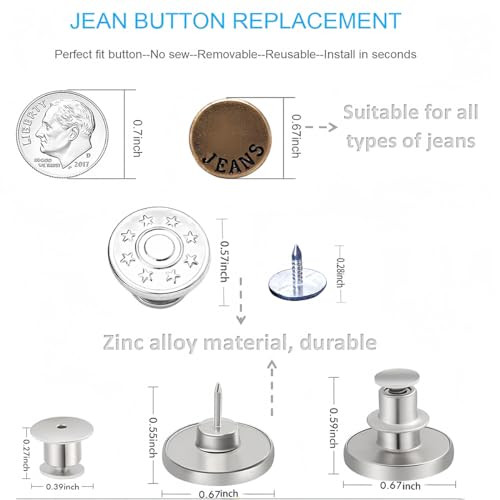 Return Policy Fast Delivery Trusted seller 20 Pcs Jean Buttons, Buttons for Jeans to Make Smaller, Replacement Button for Jeans, Jean Buttons No Sew Instant, Jean Button Replacement (8 Hand-Pinch Buttons, 12 Removable Jeans Buttons) Product Description ??????? ??? ????? ???????? ????-??????? ??????????? ??????? : Individuals seeking upgraded high-quality replacement buttons for their jeans. ?????? ??? ????? ?? ???? ??????? ????????? ??-??? ???????? : People with various clothing items such as jeans, shorts, backpacks, hats, suits, pants, jackets, shirts, sweaters, and belts, who want a no-sew solution for button replacement. ???? ??????? ?????????? ????? ???? ??? ?????????? ???????? : People looking for a versatile jeans button that can be used for adjusting the size of pant waists, as well as for decorations on various clothing items and accessories. ?????? ???? ??? ????? ?????????? ???????????? ??? ??????? : Those who desire an easy-to-use button for jeans that can be installed and removed quickly without any effort. ????? ?????? ????????? ???????? ??? ????????? ?????? : Individuals who prefer reusable and removable buttons, enabling them to replace buttons on their attire daily. ??????? ??? ????? ?????? ??? ??????? ???????? : Consumers in need of sturdy and durable replacement button for jeans made of high-quality materials like zinc alloy, which are resistant to erosion and bending. ??????? ??? ????? ?????? ???? ???? ?????? : Customers looking for a jean button replacement with a card slot design that ensures it stays securely in place for a long time. Shipping Returns Payment Shipping Shipping is FREE to all addresses other than APO/PO boxes in the lower 48 states. All our stock ships from US-based warehouses. Shipped via USPS or UPS (depending on location and package weight) Unless stated otherwise, all orders will ship within 24-72 hours of your payment being processed. Check our feedback to see the great reviews of FAST shipping we offer. Returns Seller does not accept returns Payment We currently accept payment via eBay managed payments only. Once payment is cleared, we will dispatch your shipment within 1-3 business days. Please refer to the "Shipping" tab for more information regarding shipping speed to your destination.