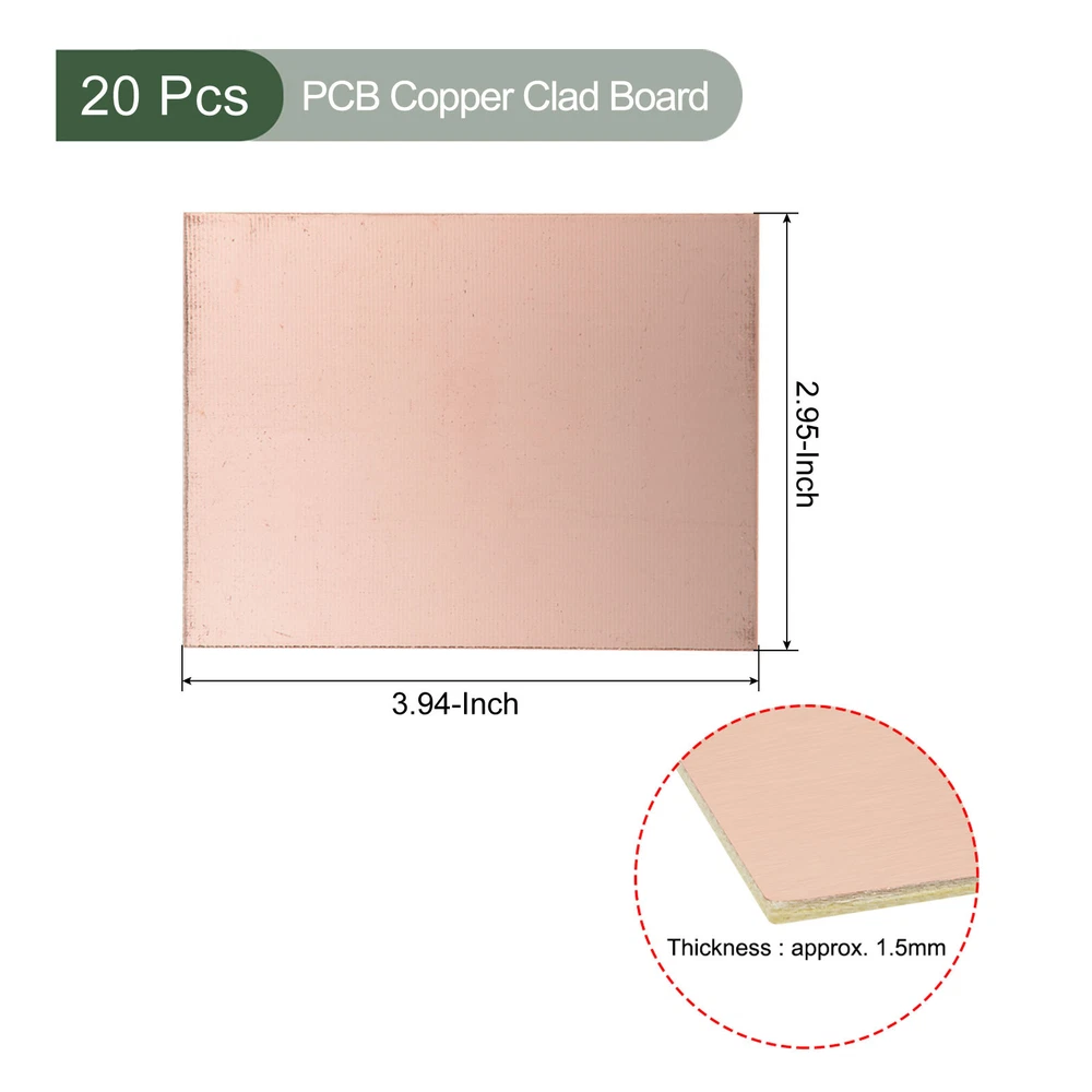 Document MULTIPURPOSE - Our blank circuit boards are great for your various electronic hobbies, such as etching, making models, testing, circuit projects, etc.WHAT YOU GET - The package comes with 20 Pcs copper clad board that measures 100mmx75mmx1.5mm(L*W*H).RELIABLE MATERIAL - The PCB board is made of FR4 glass fiber, copper-plated surface, durable and stable, with good adhesion of the copper to the fiberglass (no peeling or chipping).SPECIAL DESIGNED - The blank PCB is specially designed for making your own PCB circuit boards or making signs for your business.KINDLY NOTE - The boards may come with surface marks or scratches but don't affect performance. 20 Pcs PCB Copper Clad Board Double Sided Circuit Boards (100mmx75mmx1.5mm) MULTIPURPOSE - Our blank circuit boards are great for your various electronic hobbies, such as etching, making models, testing, circuit projects, etc. WHAT YOU GET - The package comes with 20 Pcs copper clad board that measures 100mmx75mmx1.5mm(L*W*H). RELIABLE MATERIAL - The PCB board is made of FR4 glass fiber, copper-plated surface, durable and stable, with good adhesion of the copper to the fiberglass (no peeling or chipping). SPECIAL DESIGNED - The blank PCB is specially designed for making your own PCB circuit boards or making signs for your business. KINDLY NOTE - The boards may come with surface marks or scratches but don't affect performance. Hot Item Payment 1.We accept eBay payment . 2.Payment must be received within 7 business days of auction closing. Shipping 1.We ship to your eBay or Paypal address. Please make sure your eBay and Paypal address is correct before you pay. 2.Items will be shipped within 1-3 business day when we received payment. 3.Delivery time depends on destination and other factors. Description Policy 20 Pcs PCB Copper Clad Board Double Sided Circuit Boards (100mmx75mmx1.5mm) MULTIPURPOSE - Our blank circuit boards are great for your various electronic hobbies, such as etching, making models, testing, circuit projects, etc. WHAT YOU GET - The package comes with 20 Pcs copper clad board that measures 100mmx75mmx1.5mm(L*W*H). RELIABLE MATERIAL - The PCB board is made of FR4 glass fiber, copper-plated surface, durable and stable, with good adhesion of the copper to the fiberglass (no peeling or chipping). SPECIAL DESIGNED - The blank PCB is specially designed for making your own PCB circuit boards or making signs for your business. KINDLY NOTE - The boards may come with surface marks or scratches but don't affect performance. Hot Item Payment 1.We accept eBay payment . 2.Payment must be received within 7 business days of auction closing. Shipping 1.We ship to your eBay or Paypal address. Please make sure your eBay and Paypal address is correct before you pay. 2.Items will be shipped within 1-3 business day when we received payment. 3.Delivery time depends on destination and other factors.