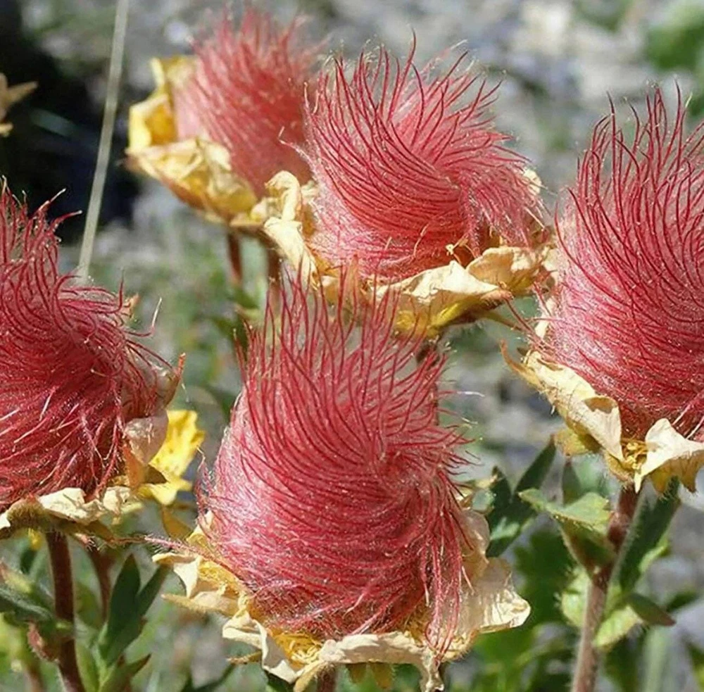20 Prairie Smoke Fire Seeds Plants Garden Planting Colorful Rare Bonsai Black Hybrid Organic Prairie smoke (Geum triflorum), known for its distinctive feathery seed heads and nodding pink flowers, is a charming, low-maintenance perennial native to North America. It thrives in full sun and well-drained soil, making it perfect for rock gardens, borders, and naturalized areas. Here’s how to plan and cultivate Prairie smoke in your garden: ### 1. Choose the Right Location - **Sunlight:** Select a site that receives full sun. Prairie smoke needs at least 6 hours of direct sunlight daily to flourish. - **Soil:** This plant prefers well-drained, sandy or loamy soil. Avoid areas where water tends to collect. ### 2. Soil Preparation - **Testing:** Consider testing the soil pH; Prairie smoke does well in neutral to slightly alkaline soils. - **Amendment:** If your soil is heavy clay, incorporate generous amounts of compost or sand to improve drainage. ### 3. Planting Time - **Season:** The best time to plant Prairie smoke is in the spring after the danger of frost has passed or in the early fall, allowing roots to establish before winter. ### 4. Planting Process - **Spacing:** Space plants or seeds about 12 to 18 inches apart to give each plant enough room to spread. - **Depth:** For seeds, lightly press into the surface of the soil as they need light to germinate. Do not cover them with soil. For plants, dig a hole as deep and twice as wide as the root ball. Set the plant in, fill the hole with soil, and press lightly. ### 5. Watering - **Initial Care:** Water the plants or seeds well after planting to settle the soil around the roots or seeds. - **Ongoing Care:** Prairie smoke is drought-tolerant once established, but keep it evenly moist during the first growing season to ensure good root development. ### 6. Mulching - Apply a thin layer of mulch around the plants to help retain soil moisture and suppress weeds. Avoid piling mulch against the plant stems to prevent rot. ### 7. Care and Maintenance - **Fertilization:** Prairie smoke generally does not require fertilization, especially if you've amended the soil at planting time. - **Pruning:** Deadheading is not necessary. The seed heads are one of the plant's most attractive features. However, you can cut back the foliage in late winter before new growth starts. - **Division:** Every 3-4 years, you may divide congested clumps in early spring to rejuvenate the plants and prevent overcrowding. ### 8. Watch for Pests and Diseases Prairie smoke is relatively disease and pest-free, especially when grown in conditions that suit its preferences. ### 9. Supporting Biodiversity - Consider planting Prairie smoke as part of a native plant garden to support local wildlife, including pollinators like bees and butterflies. ### 10. Patience with Germination - If starting from seed, be patient. Germination can be slow and may benefit from a period of cold stratification. You can mimic winter conditions by mixing seeds with moist sand and storing them in the refrigerator for 4-6 weeks before planting. Following these guidelines will help you successfully grow Prairie smoke, adding a unique and enchanting element to your garden with its early spring blooms and distinctive seed heads that resemble plumes of smoke.